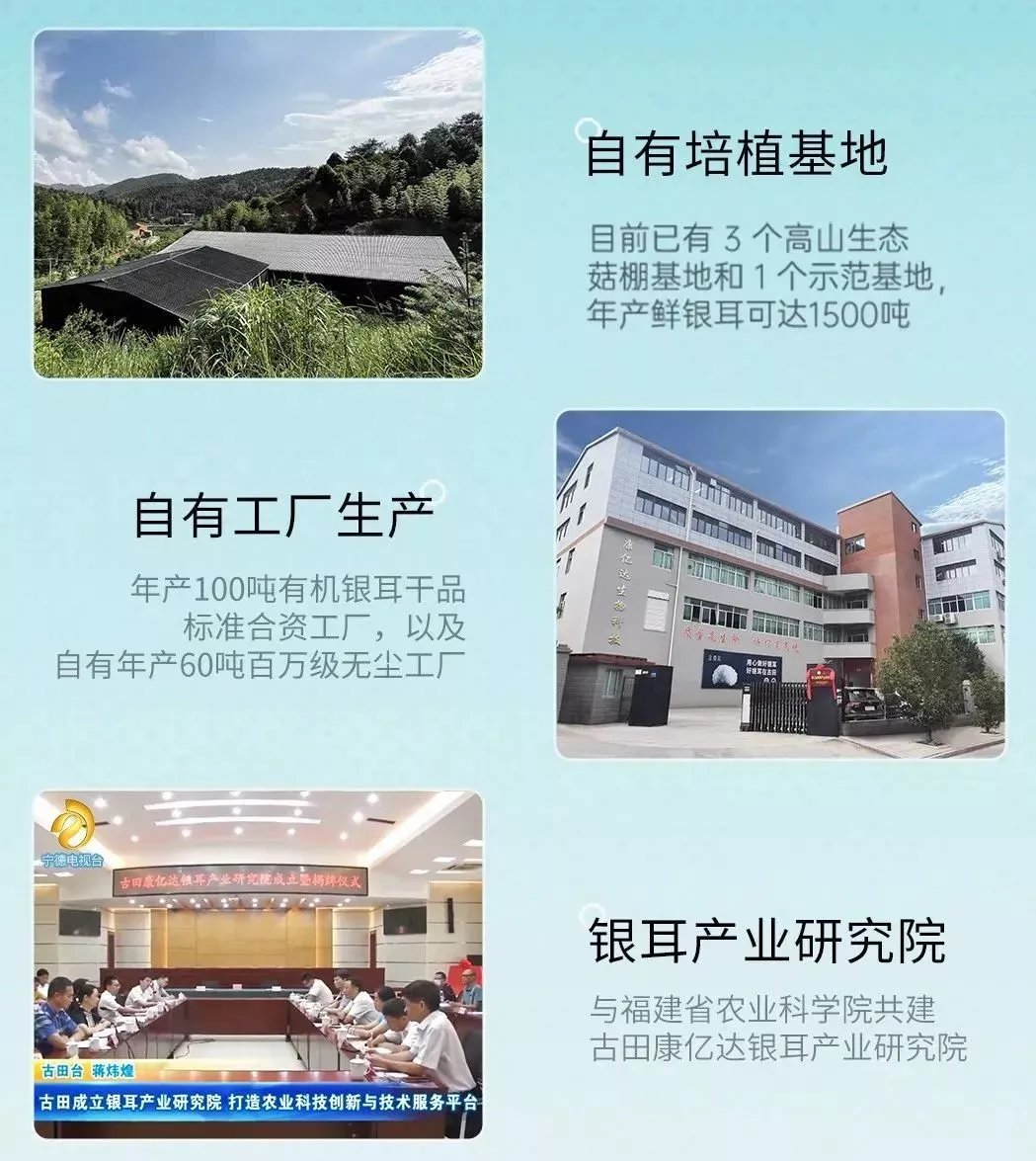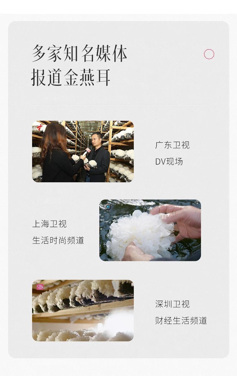 出于“让更多人吃到好银耳,拥有健康和美丽”的初心,金燕耳集培植、生产、加工全产业链于一体,还和福建农科院成立了银耳产业研究院,来保障高品质,且所有银耳皆可追溯源头。