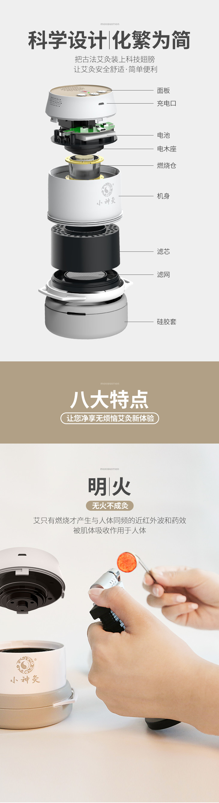 五个叶子 艾灸 家用仪器无烟小神灸罐宫寒妇科熏蒸仪艾灸盒去湿气
