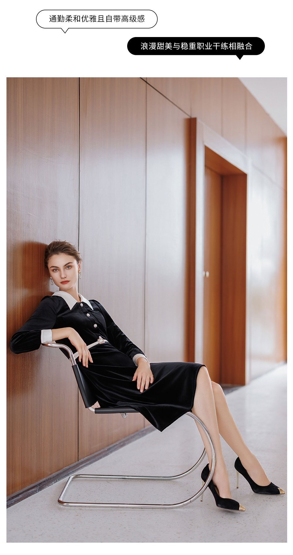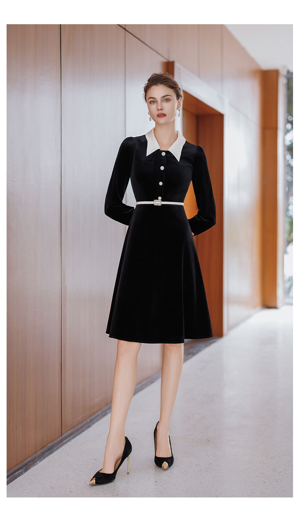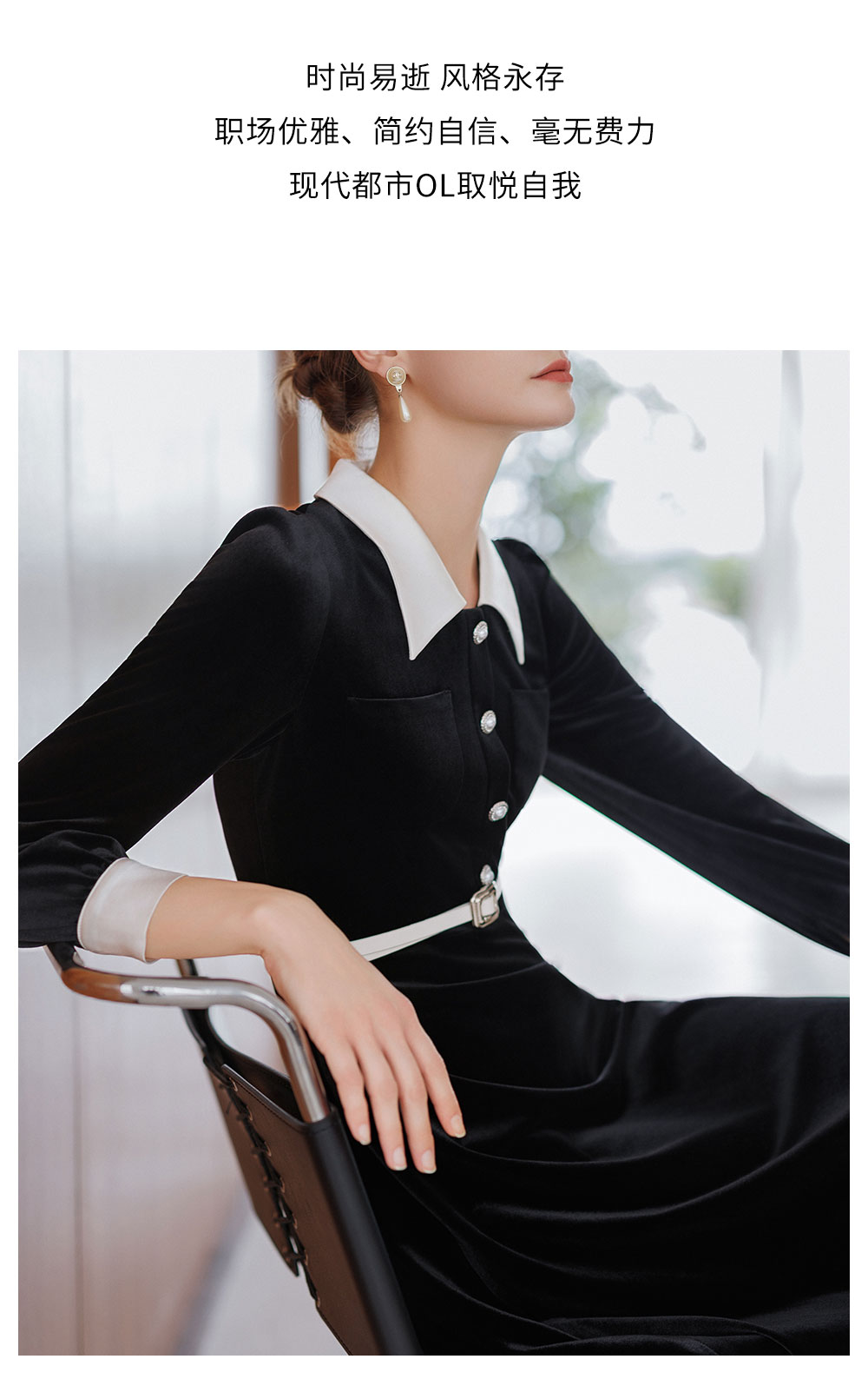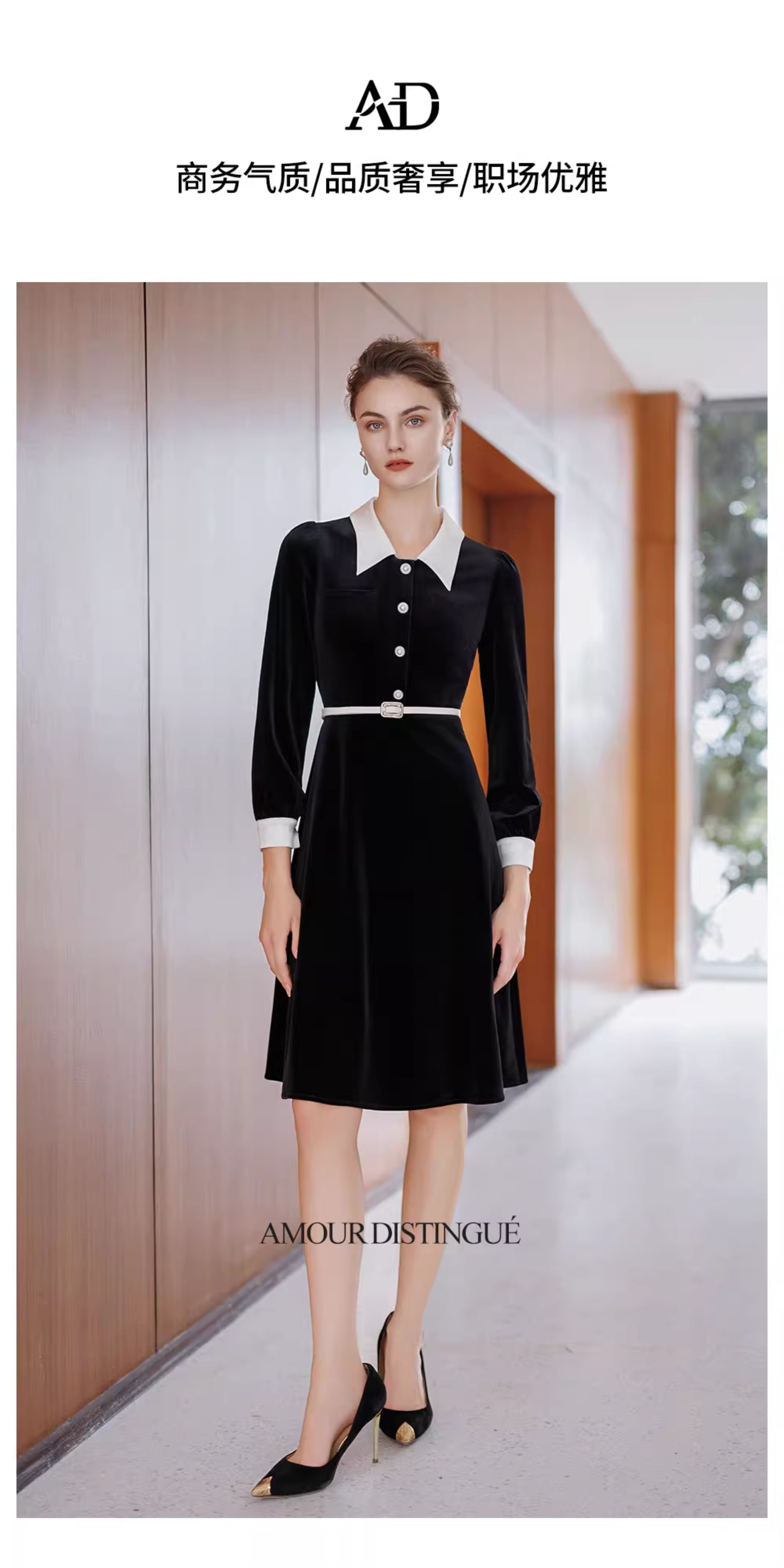 AD秋冬季收腰丝绒通勤连衣裙2025年秋冬季新款法式显瘦名媛小黑裙