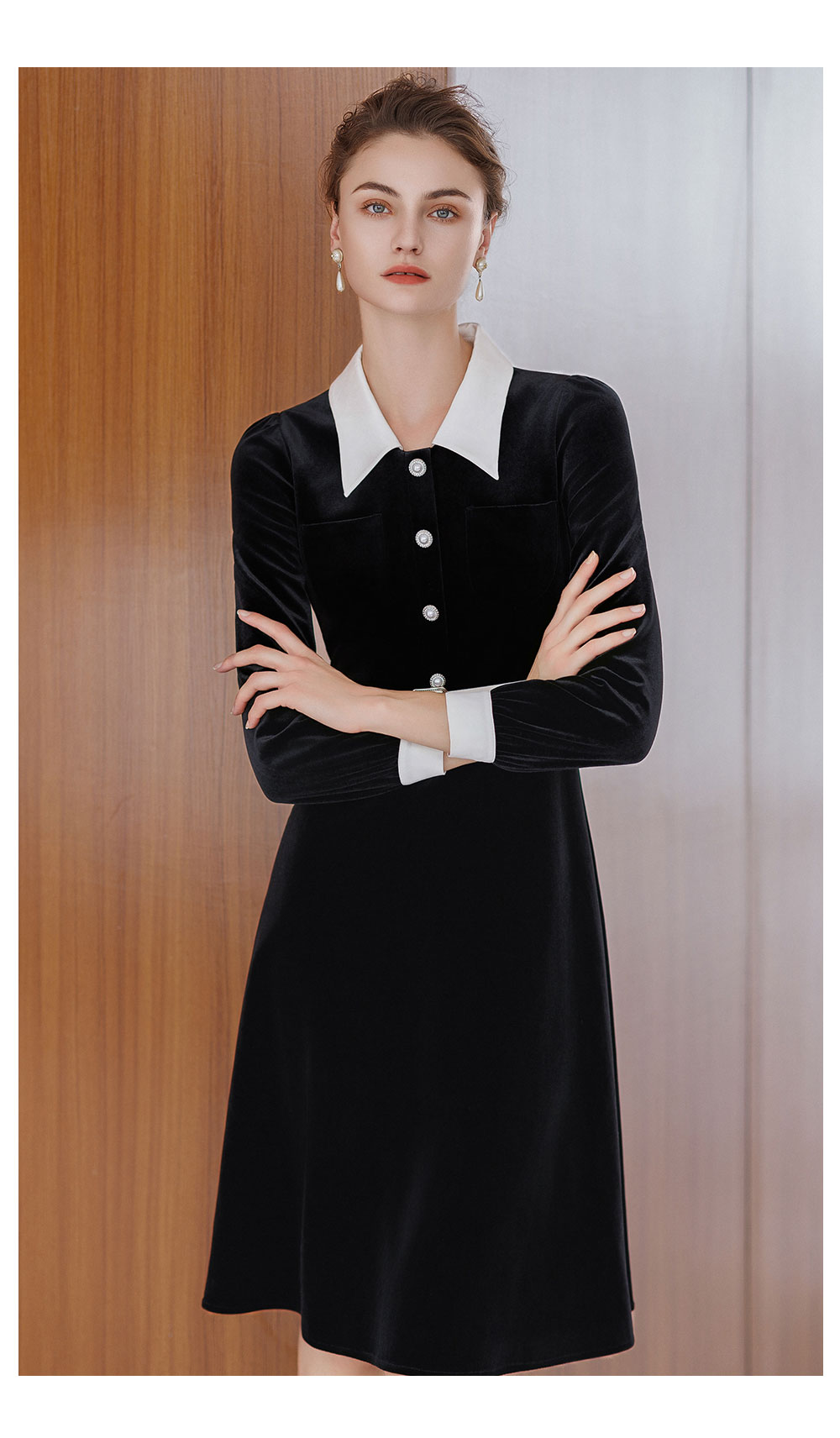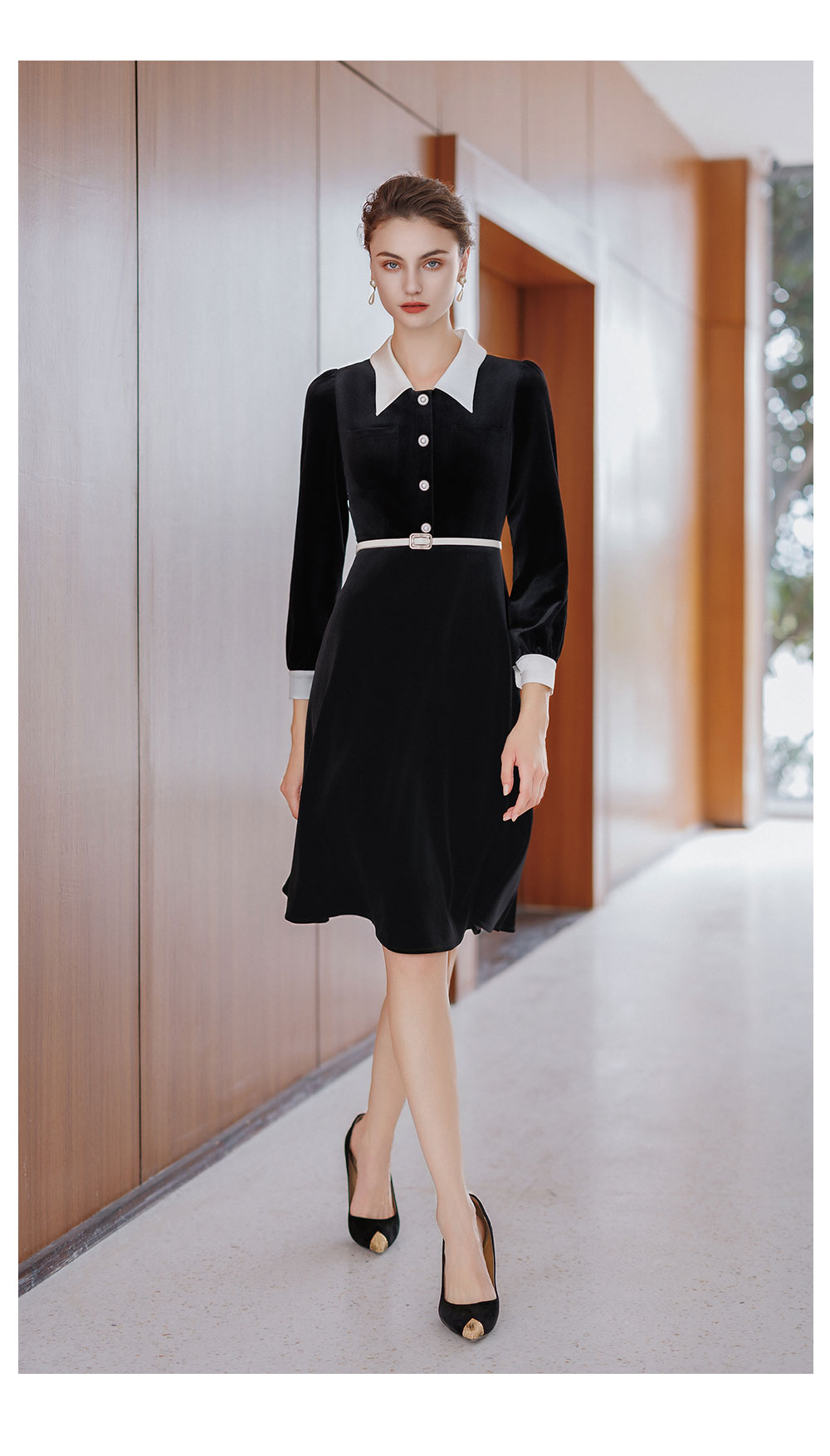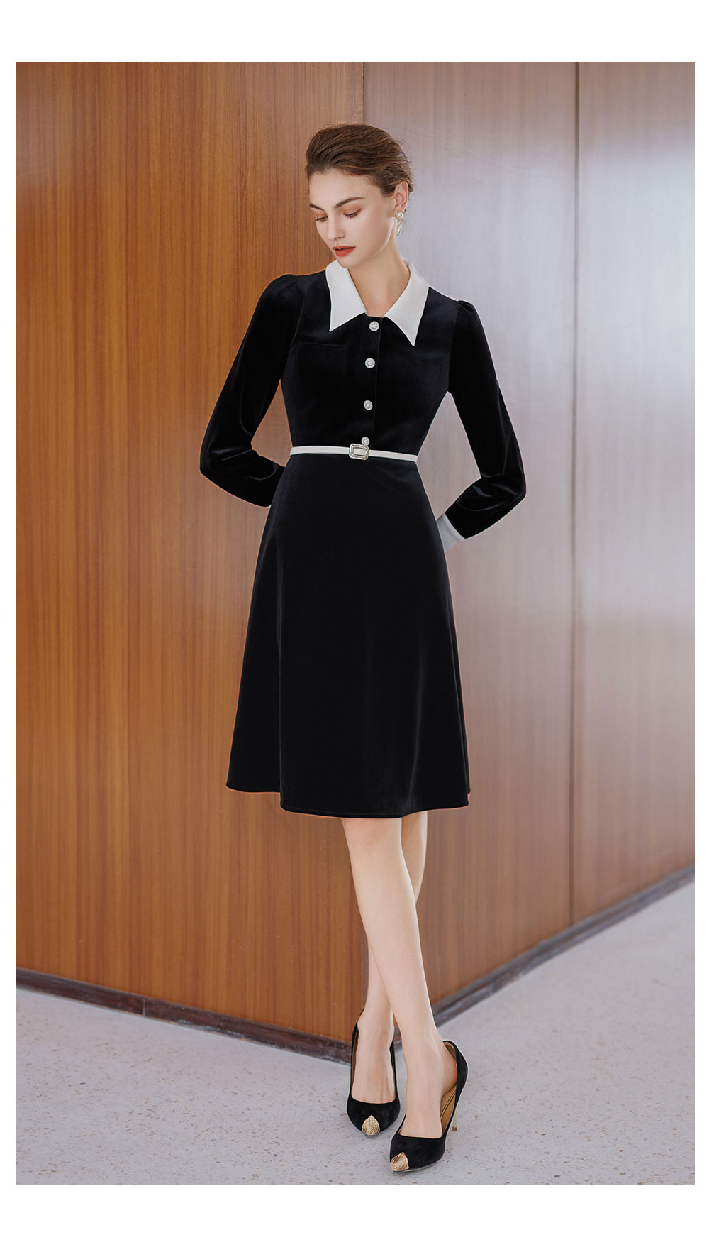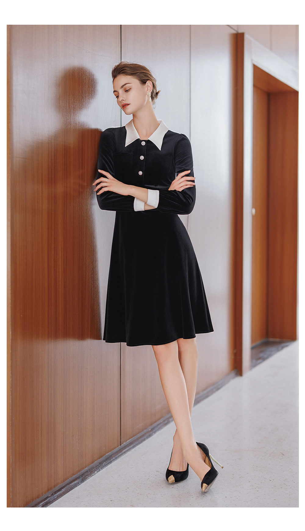 AD秋冬季收腰丝绒通勤连衣裙2025年秋冬季新款法式显瘦名媛小黑裙