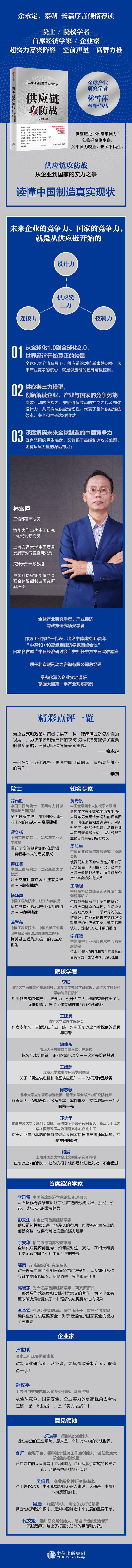 在逆全球化的时代,供应链掌控力逐渐成为全球工业国之间竞争的武器,中国制造业作为世界工厂的中枢,将迎来非常多的挑战。林雪萍老师的这本《供应链攻防战》高瞻远瞩,阐述了急剧变化的现状,拆解了供应链核心要素,也给出了打赢攻防战的手段和方案,拳拳之心,赤诚殷切,值得荐。