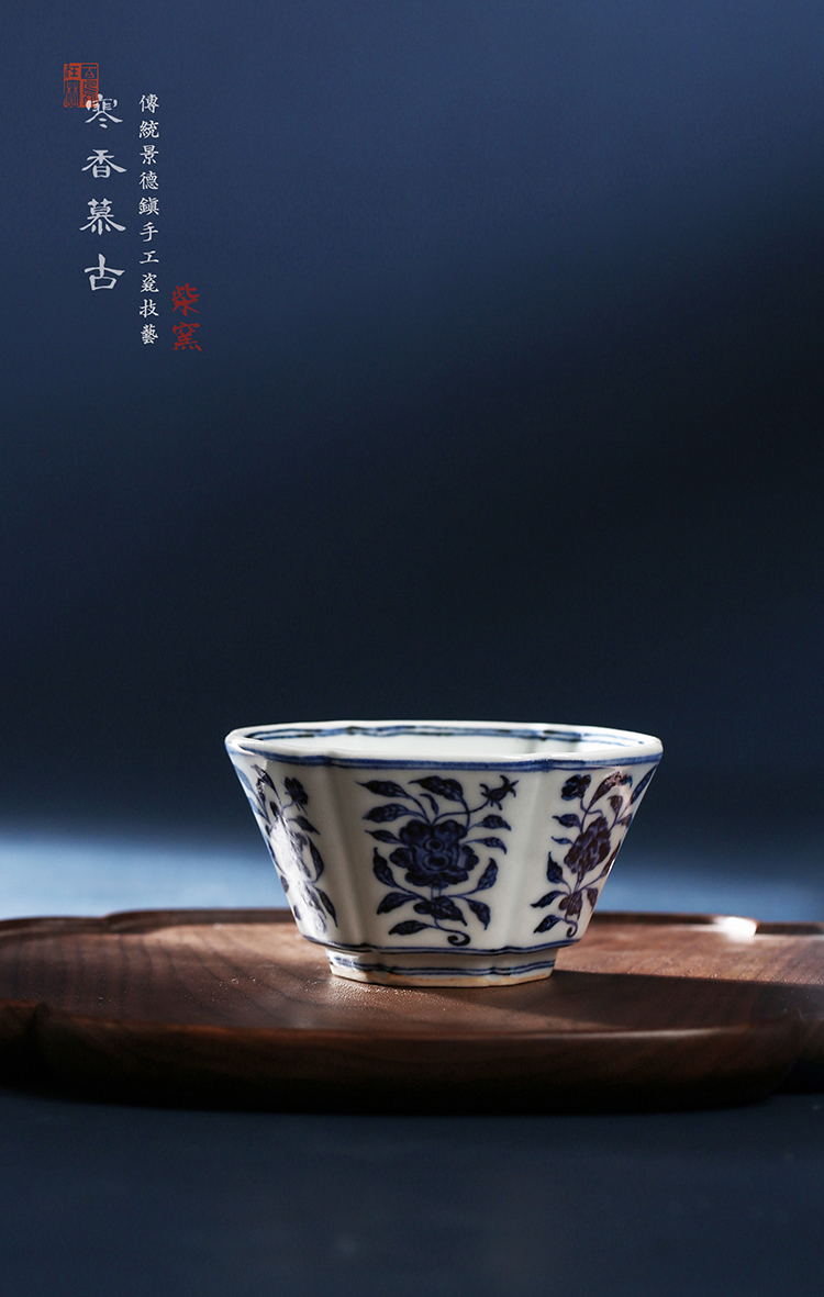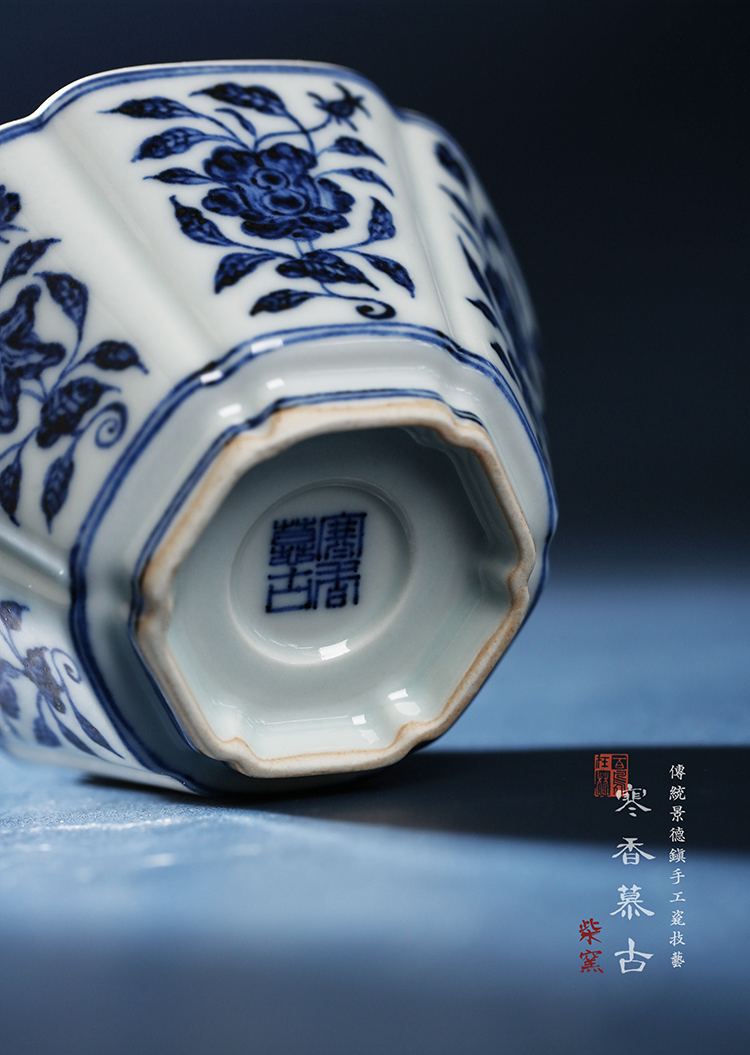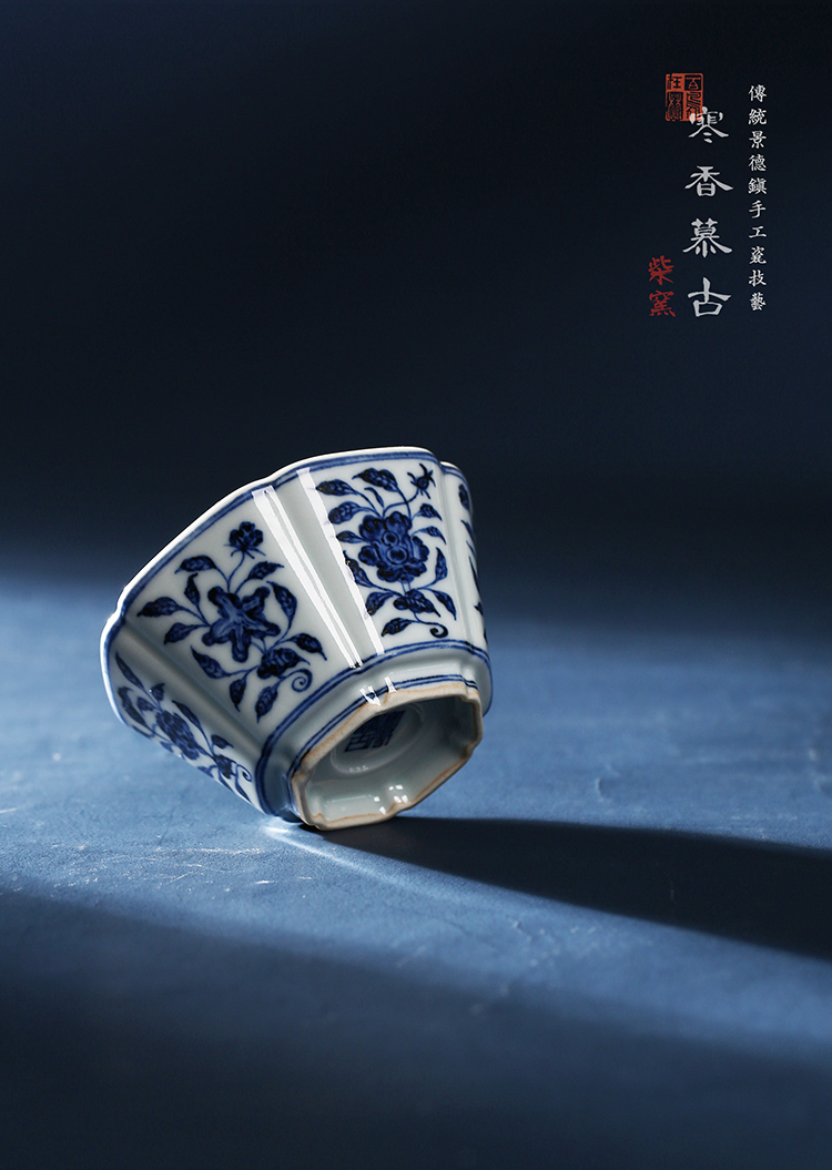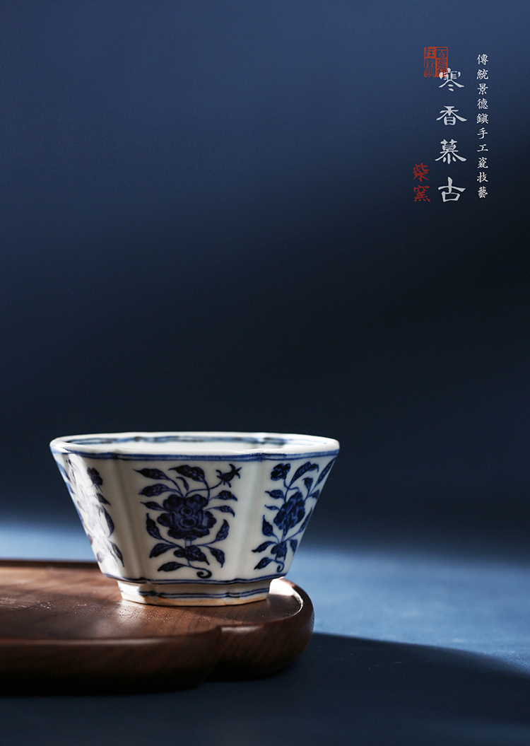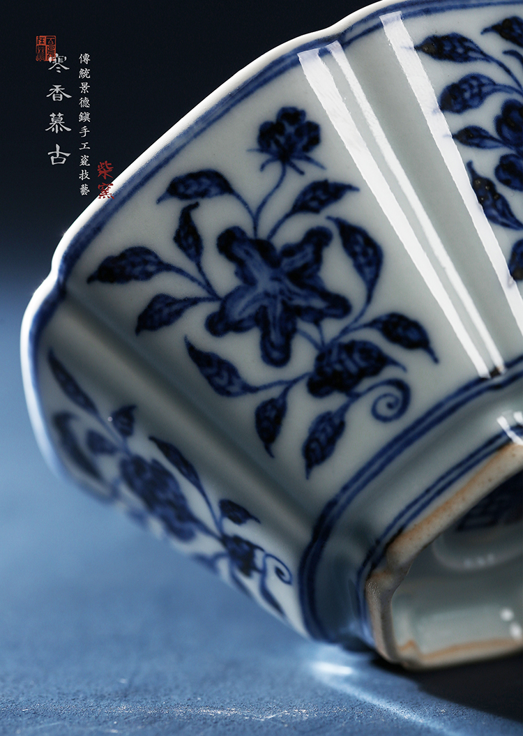 寒香慕古明青花六角瓜棱花卉杯(缺货)