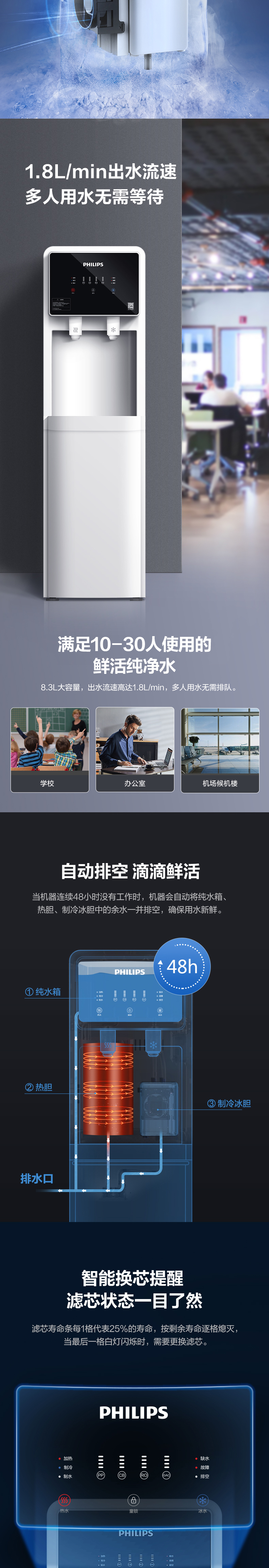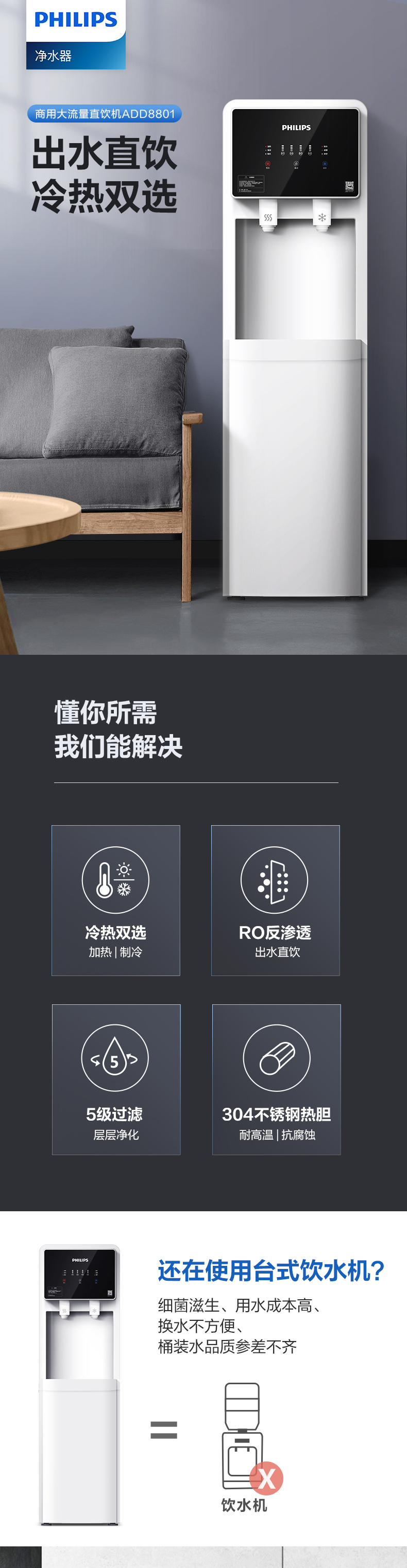 飞利浦(PHILIPS)台式净水器ADD8801商用反渗透直饮冷热两用 含滤芯ADD506、ADD507、ADD508、ADD561