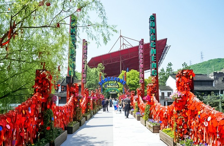 杭州宋城景区还原了宋代都市风貌。有怪街、仙山、市井街、宋城河、千年古樟等景点,打铁铺、榨油坊、酒坊等七十二行老作坊,清明上河图电影馆、聊斋惊魂鬼屋、步步惊心鬼屋等体验项目,上万平方米全室内空调空间,5D实景体验剧《大地震》、大型实景演出《丽江恋歌》、实景战争剧《映山红》等数个演艺秀。