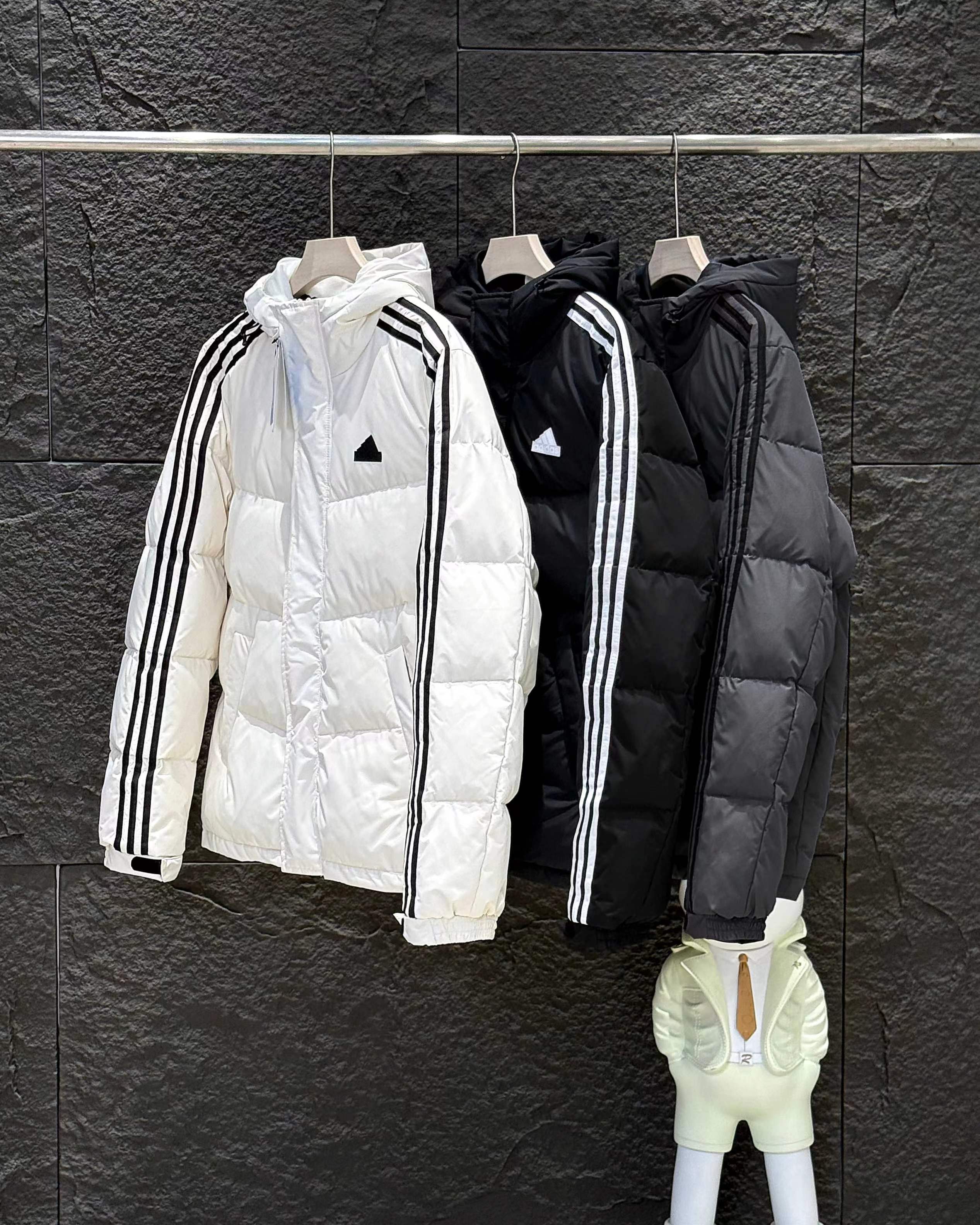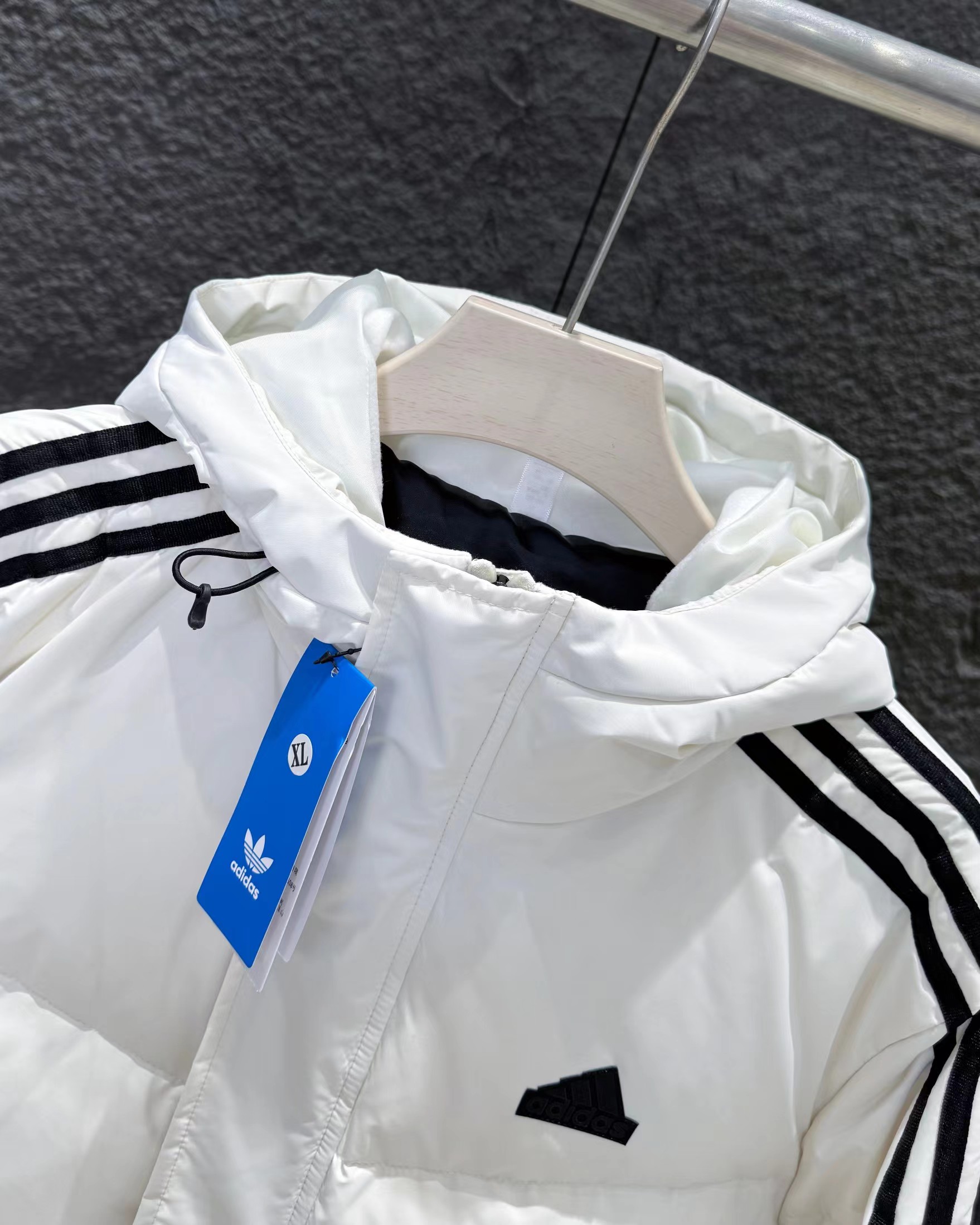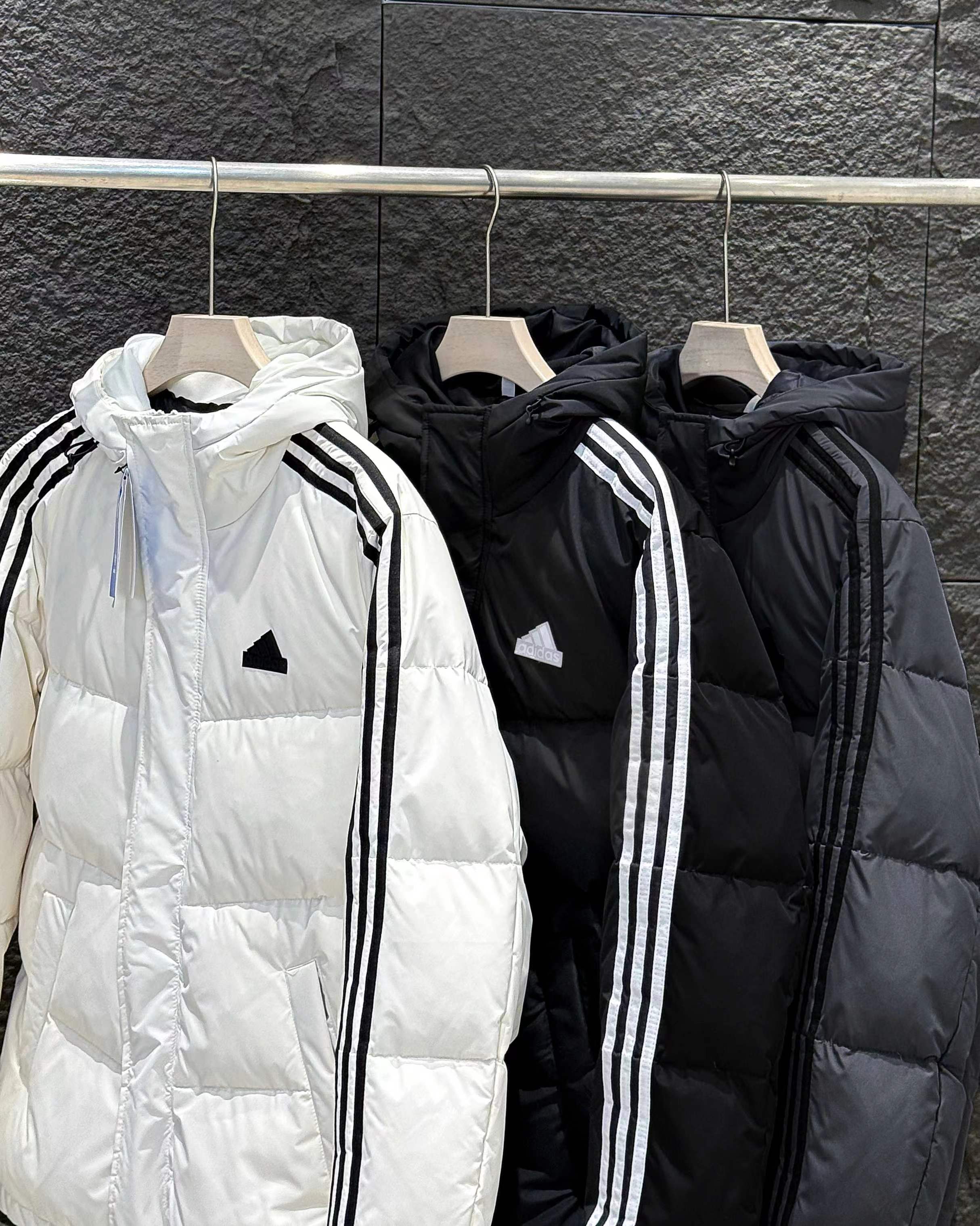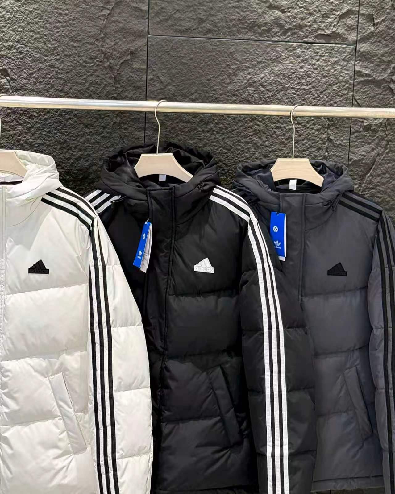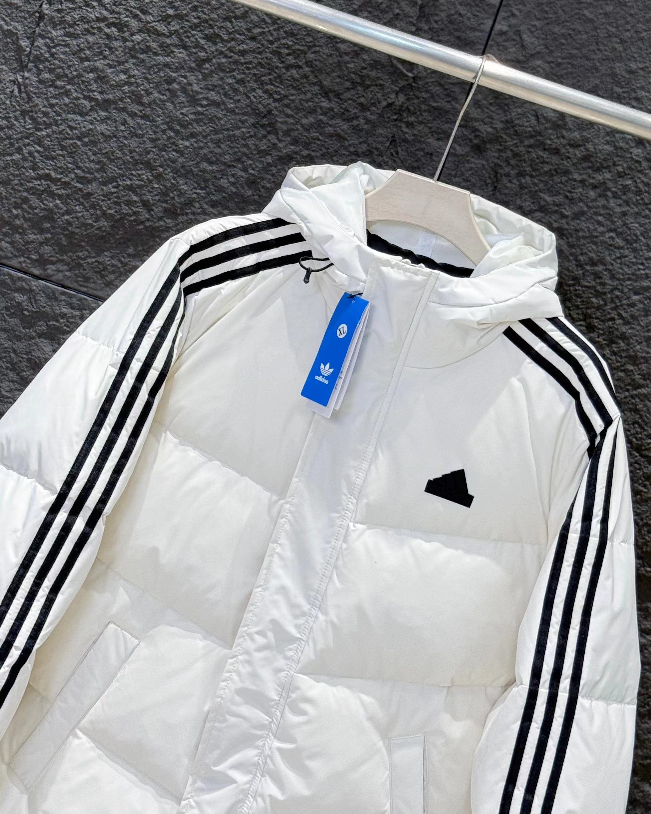 新款三条杠连帽保暖落肩款羽绒服小红书爆款!2025年冬季男女情侣款连帽羽绒服,超保暖效果贼好,今年冬天一定冷!充绒量足,让这个冬天不在冷了!上身效果非常好,整个身体都保暖了!80%白鸭绒,20%羽毛,锁绒效果好,不拽绒,门襟双道压线,品质看得见!男女同款!任何人都驾驭.衣服胸前小Logo经久不衰!厚实又保暖 冬天一件足够!,做工精细,内里车工走线非常工整,但是这款在保暖上不输给任何羽绒服!它能牢牢锁住温度!长款的造型 温暖到脚脖!女士醉爱这样的款式!舒适柔软的用料,贴身透气吸汗,喜欢长款的情侣一定不要错过这款羽绒服!自留款!难得一见!一直到年底都有货!