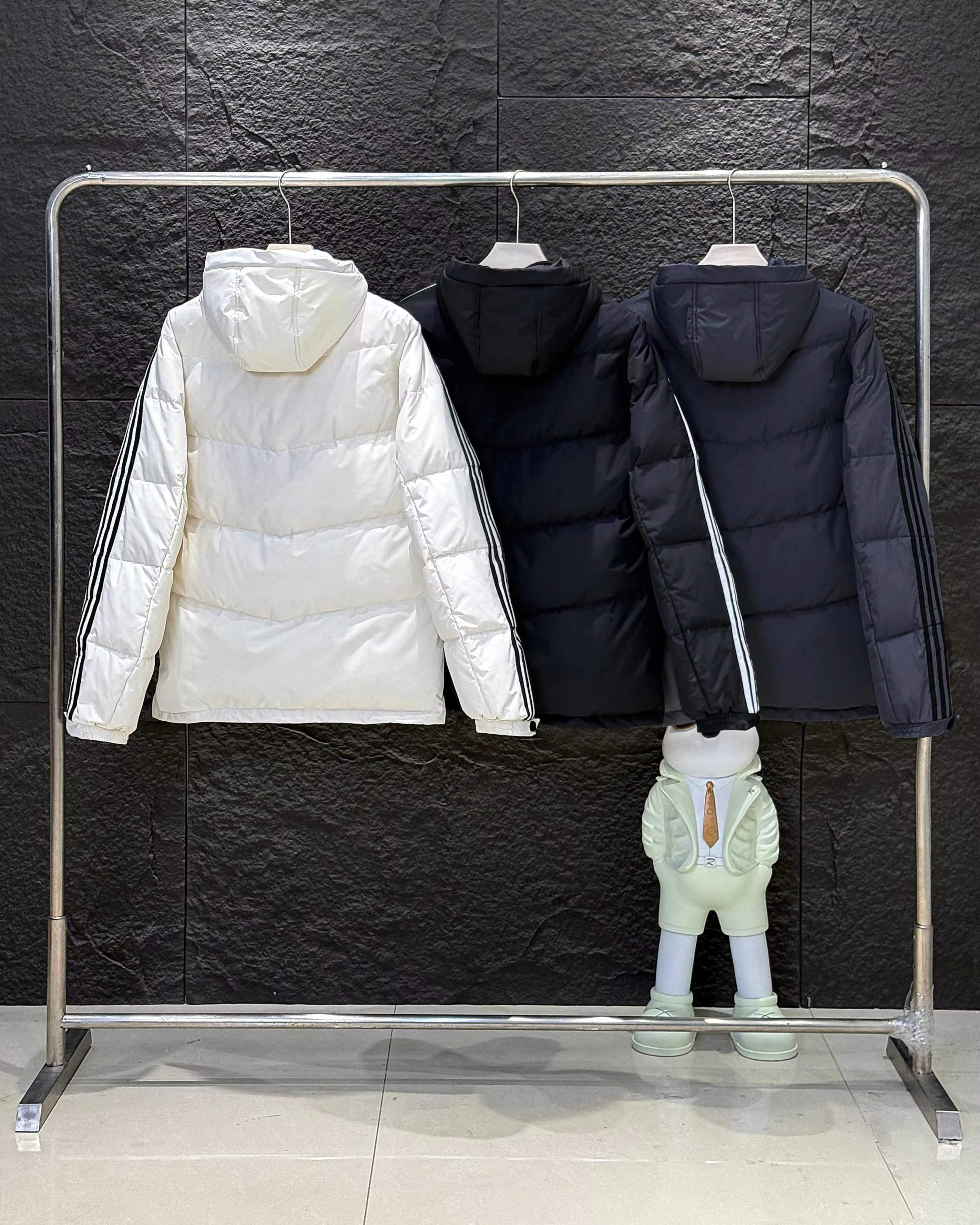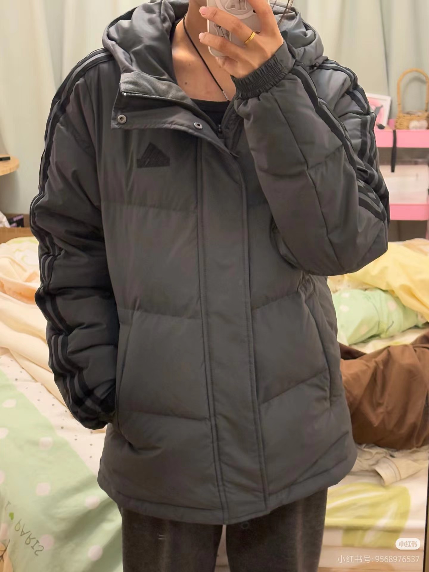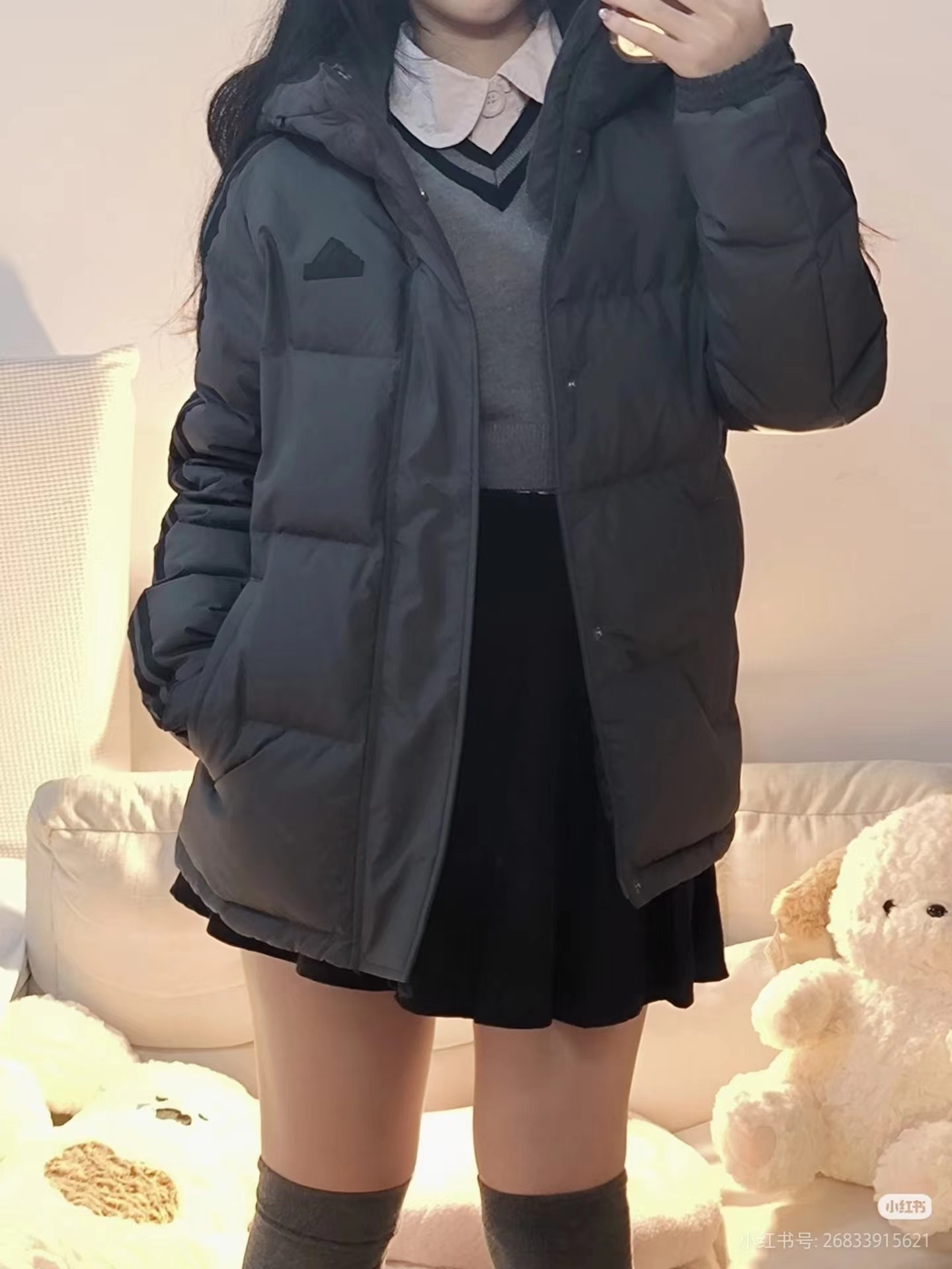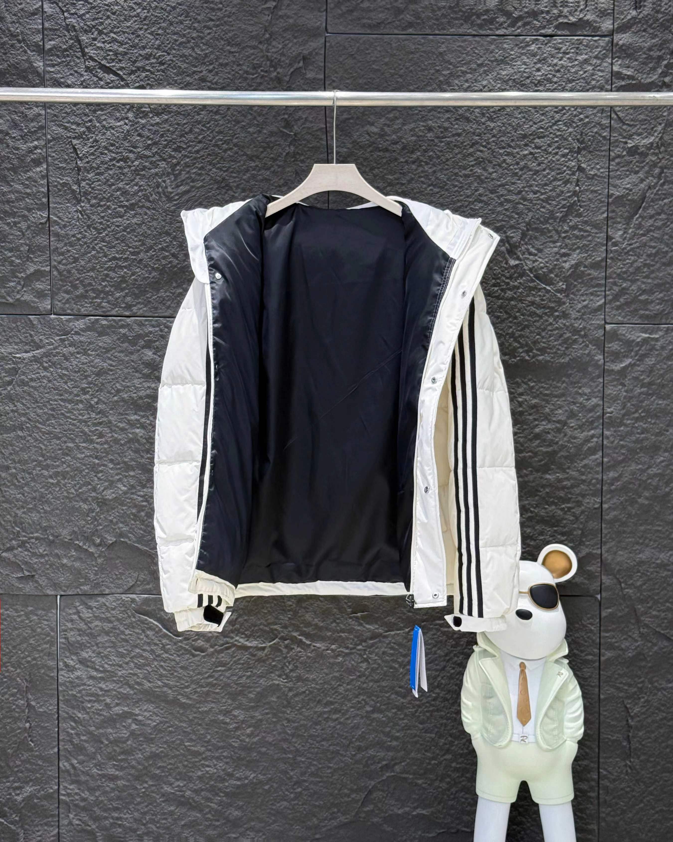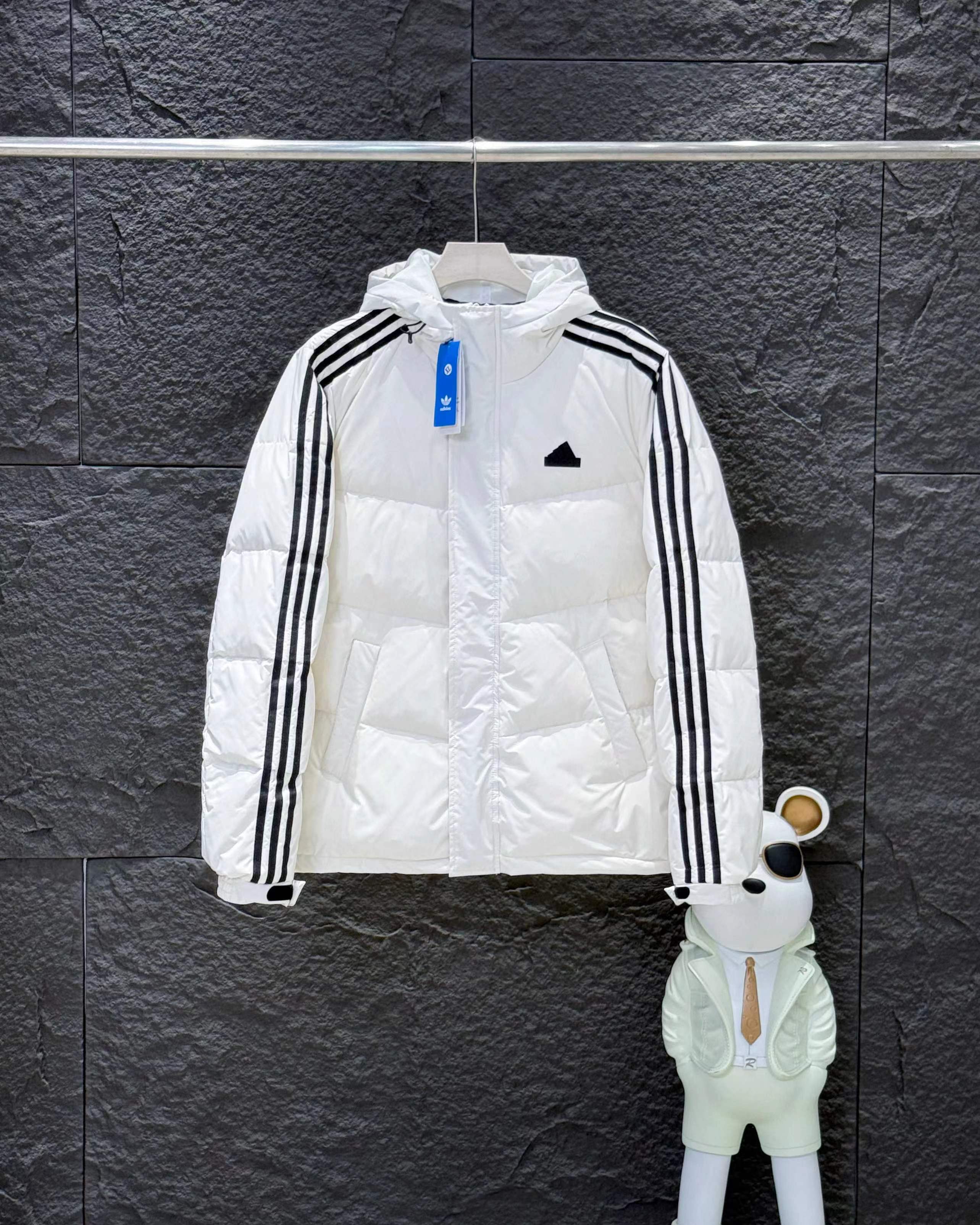 新款三条杠连帽保暖落肩款羽绒服小红书爆款!2025年冬季男女情侣款连帽羽绒服,超保暖效果贼好,今年冬天一定冷!充绒量足,让这个冬天不在冷了!上身效果非常好,整个身体都保暖了!80%白鸭绒,20%羽毛,锁绒效果好,不拽绒,门襟双道压线,品质看得见!男女同款!任何人都驾驭.衣服胸前小Logo经久不衰!厚实又保暖 冬天一件足够!,做工精细,内里车工走线非常工整,但是这款在保暖上不输给任何羽绒服!它能牢牢锁住温度!长款的造型 温暖到脚脖!女士醉爱这样的款式!舒适柔软的用料,贴身透气吸汗,喜欢长款的情侣一定不要错过这款羽绒服!自留款!难得一见!一直到年底都有货!