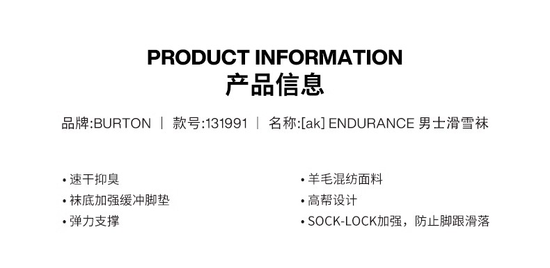 【AK六五折】BURTON/伯顿新款AK单板滑雪袜保暖速干透气男款雪袜131991