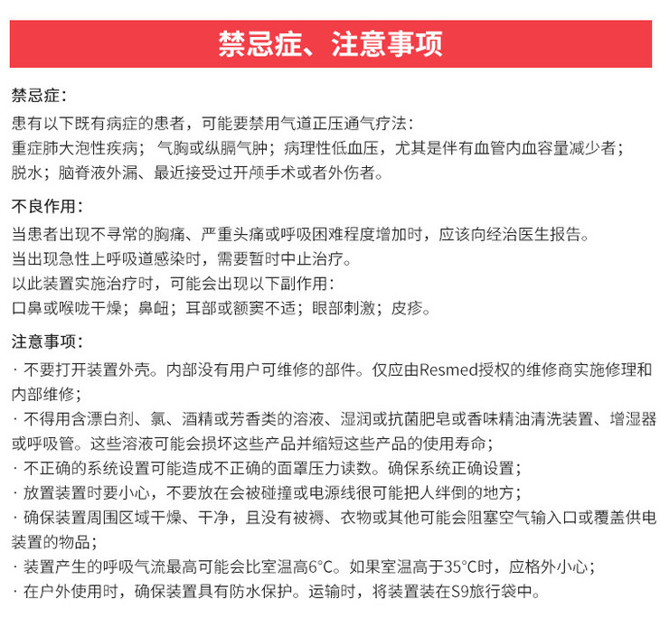 瑞思迈全自动家用呼吸机S10 AutoSet原装进口医用止鼾睡眠呼吸机