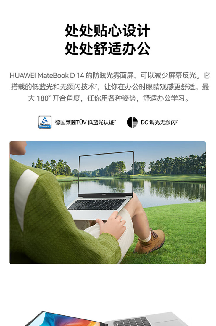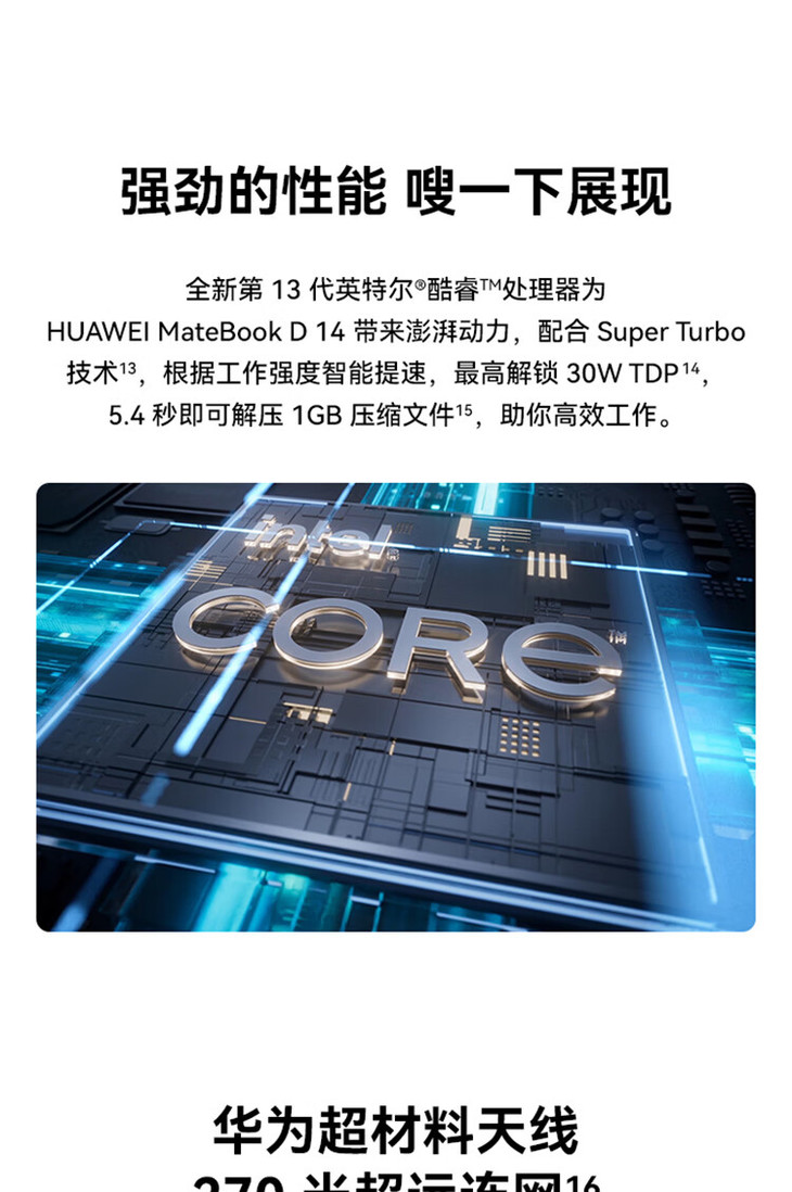2024款华为 MateBook D14 14英寸笔记本电脑 13代酷睿版 i5-13420H 16G 512G 45%色域 轻薄商务办公本