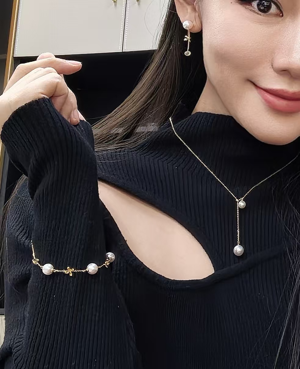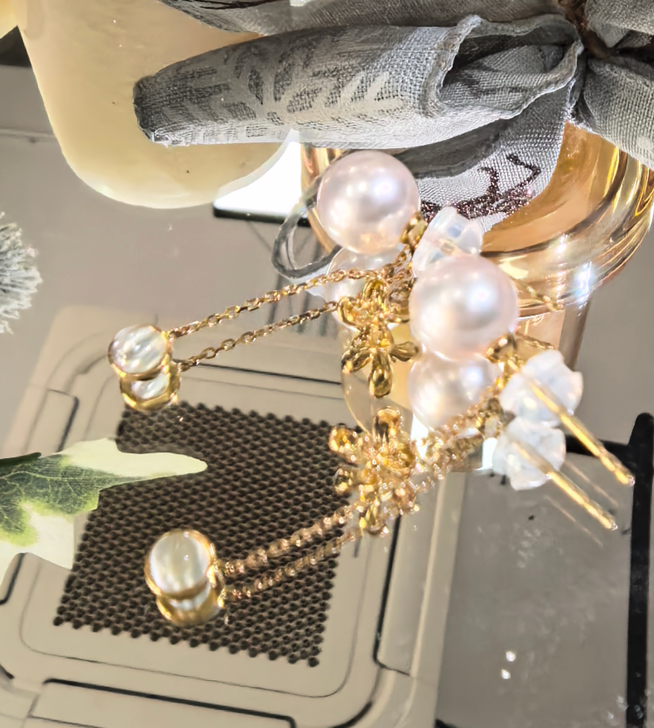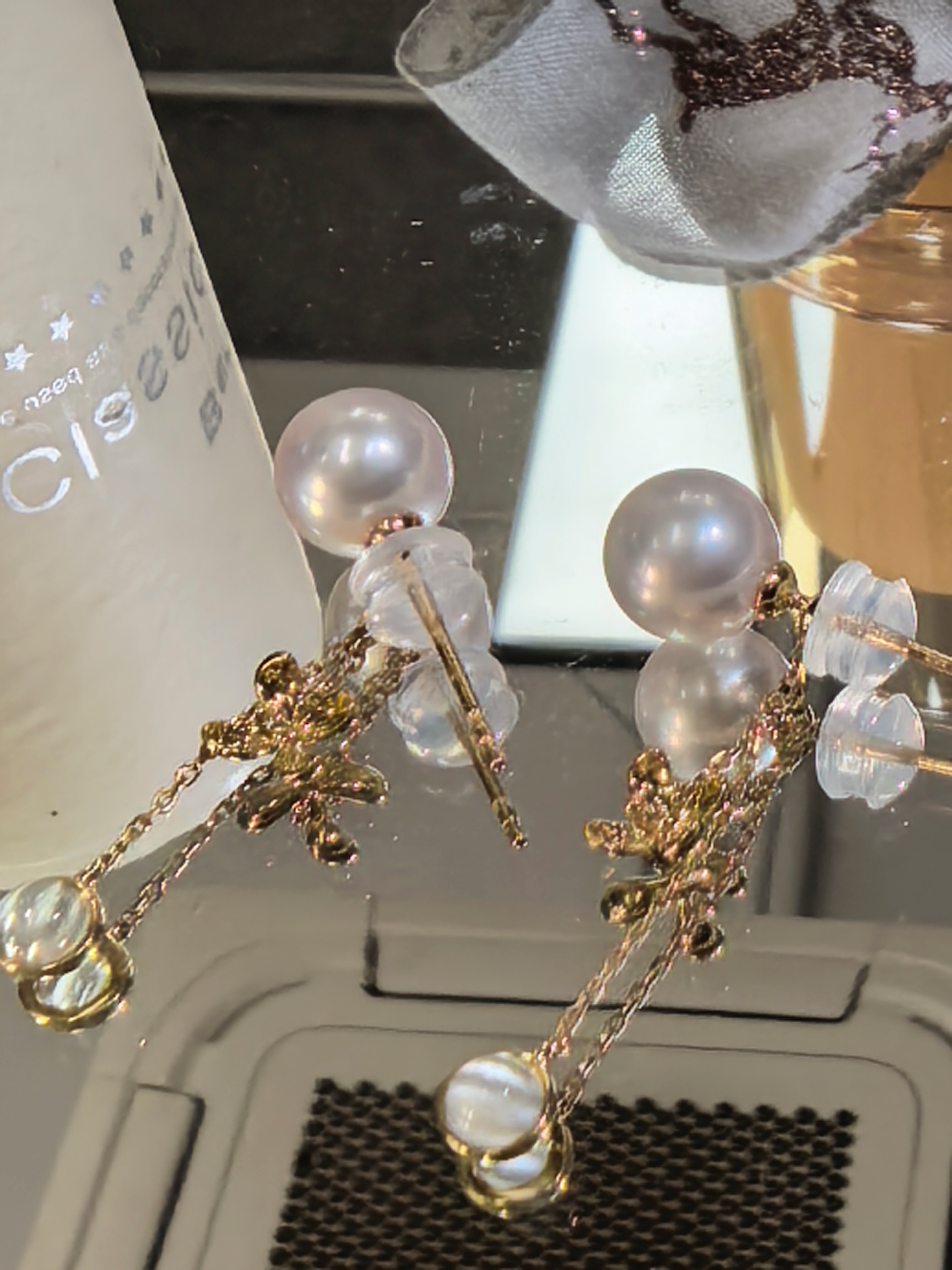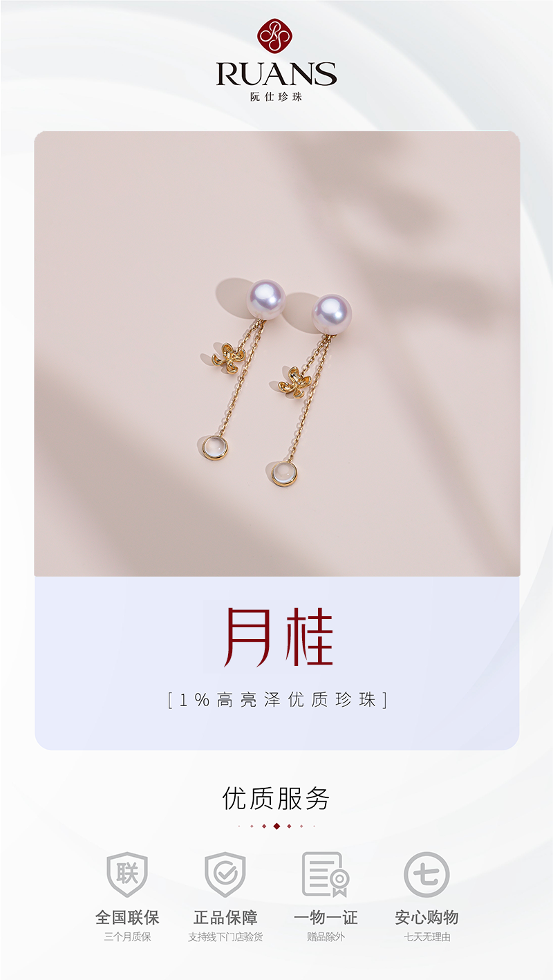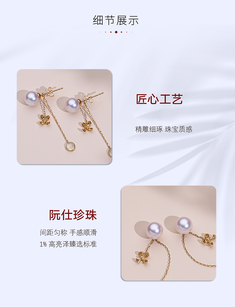 阮仕月桂系列 G18K金日本akoya珍珠耳饰 7.5-8mm EY03143YGA