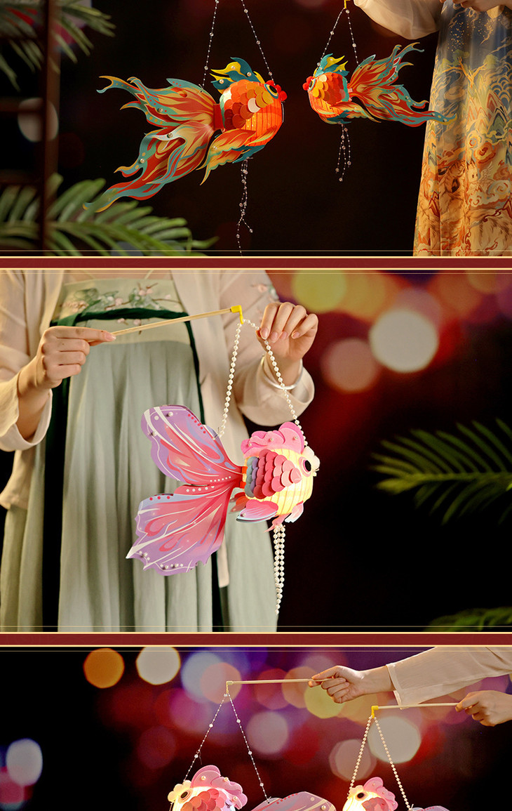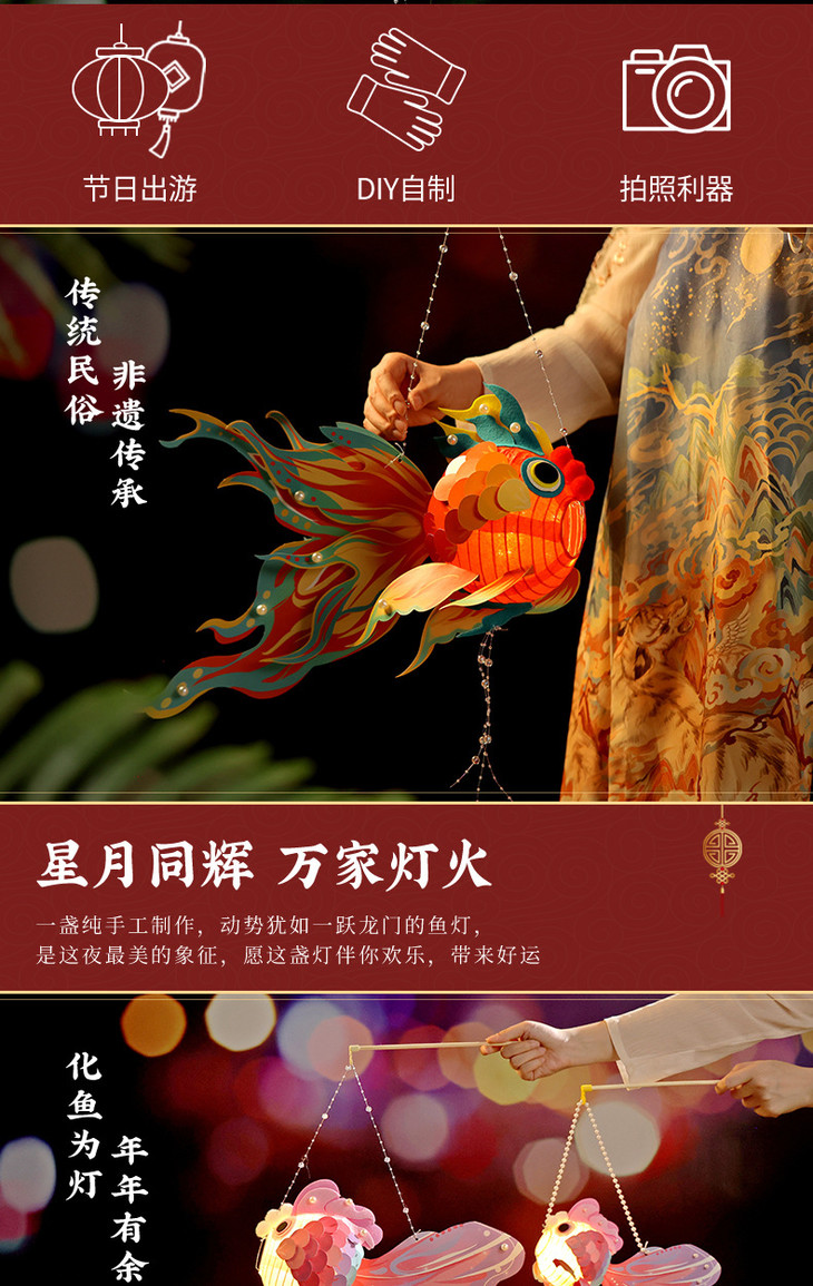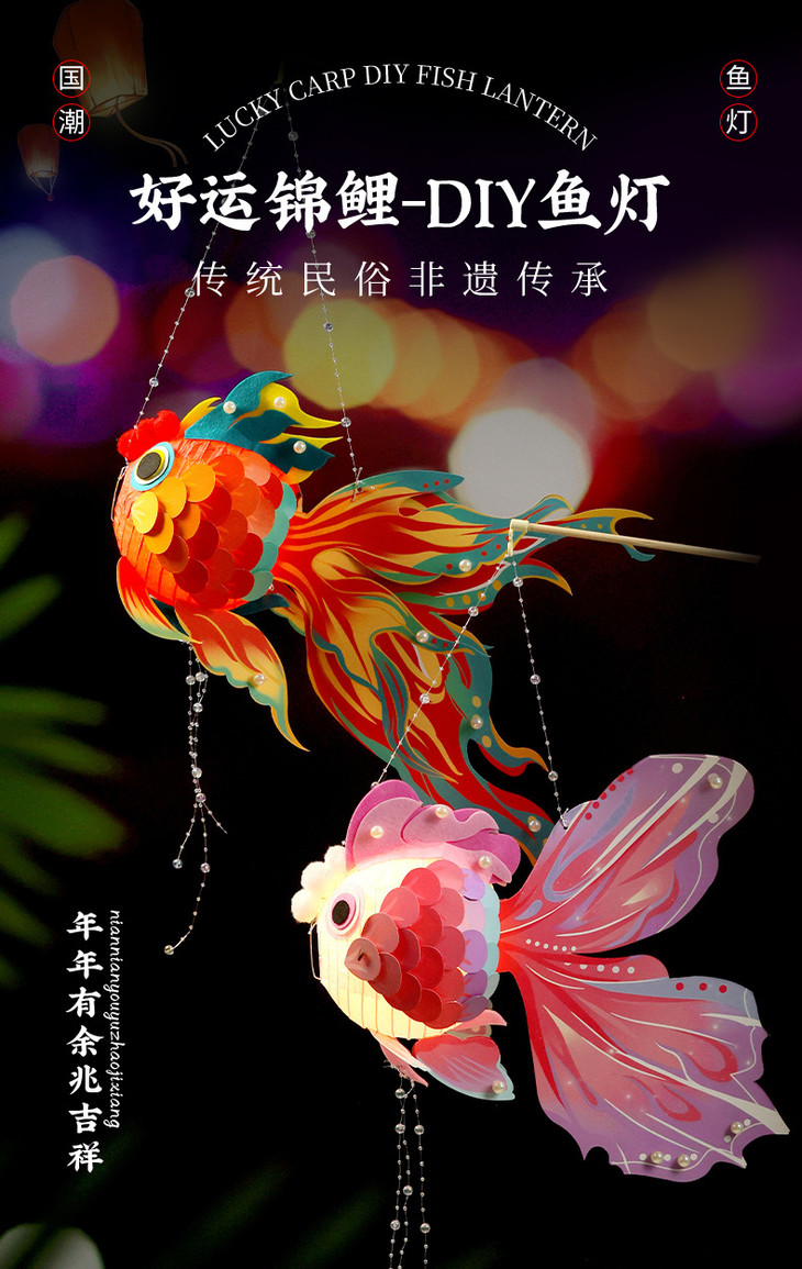 【新年龙年元宵!发光鱼灯笼】新年春节龙年元宵手工diy发光古风鱼灯笼儿童玩具手提花灯材料包,好运锦鲤 DIY鱼灯,点亮祥瑞龙年。ry