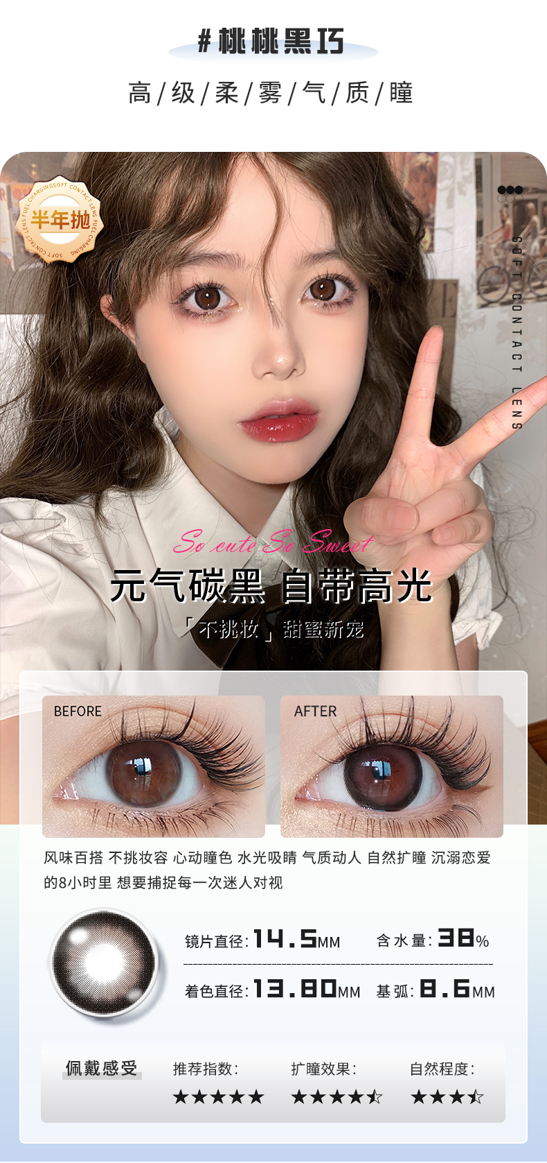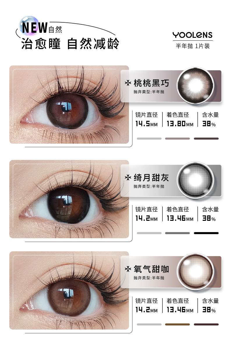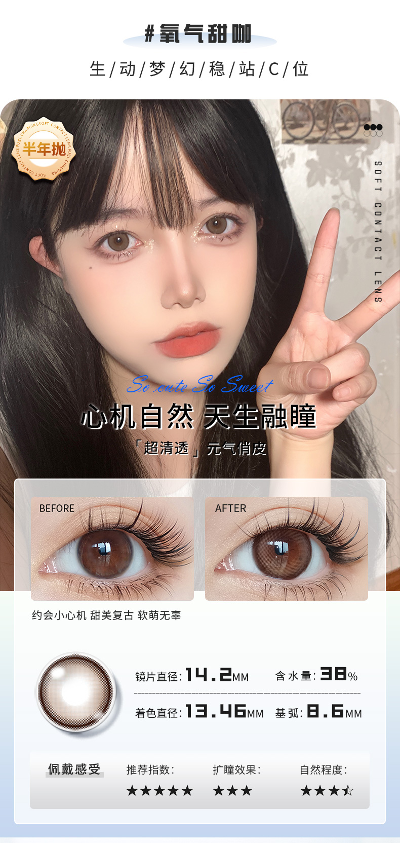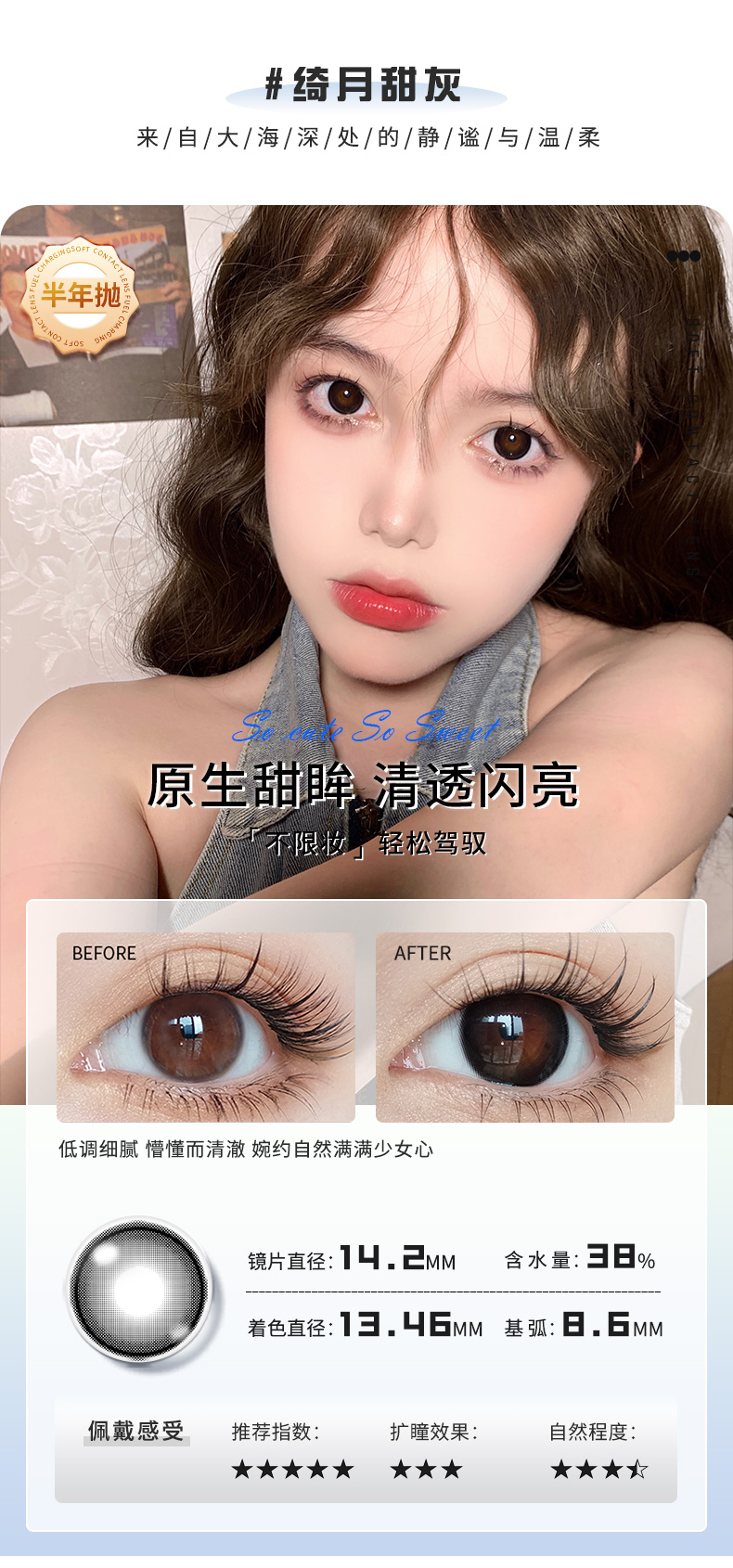 自然闪光少女14.2小直径半年抛美瞳一片装(1副拍2,YB04)
