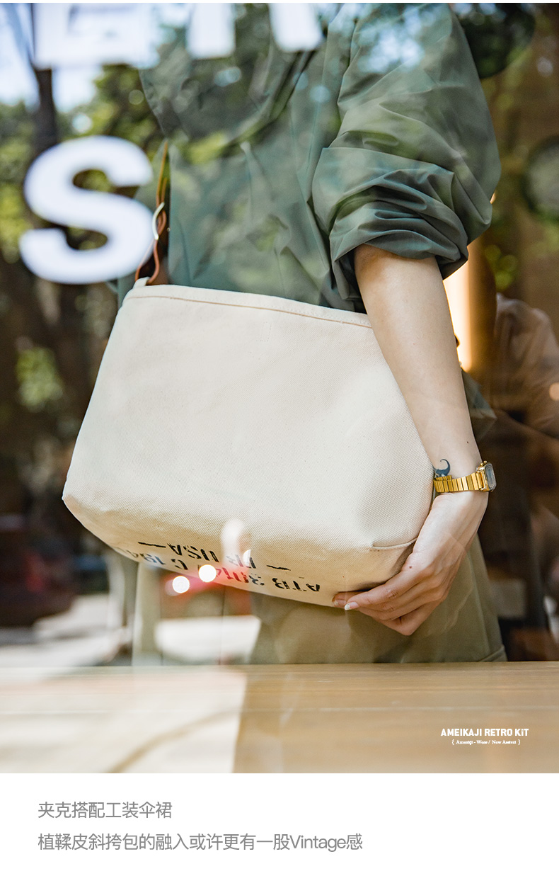 马登女装美式复古子母做旧印花工具单肩包阿美咔叽重磅简约斜挎包