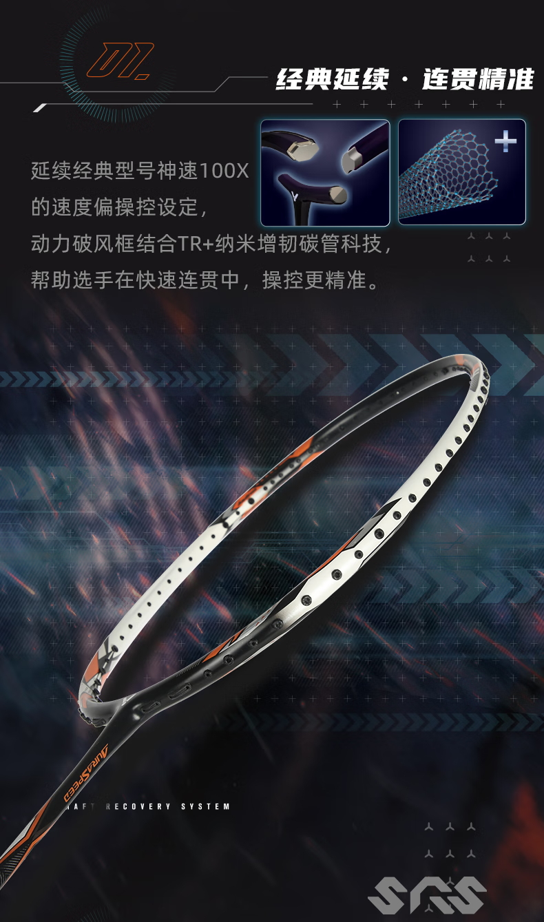 VICTOR威克多神速100羽毛球拍ARS-100X TD全碳素挥速灵活进攻羽毛球拍