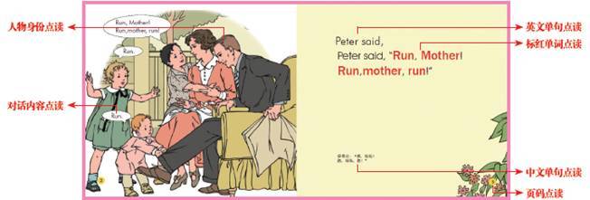 右页内容正常朗读,左页的对话分角色配音,语感更鲜明生动,像看动画片一样有趣。
