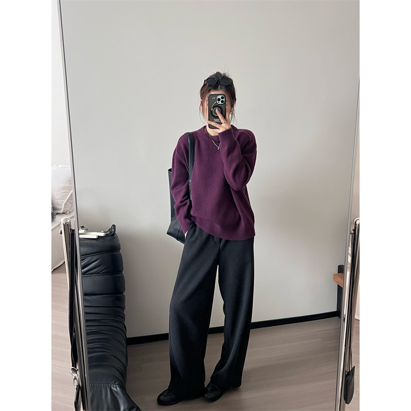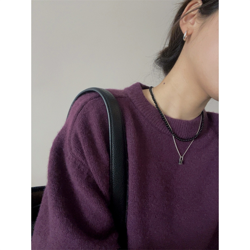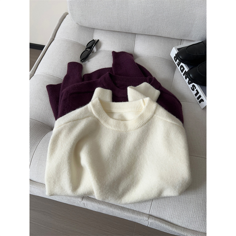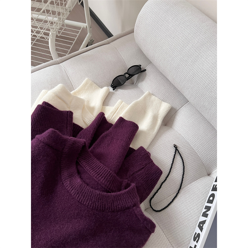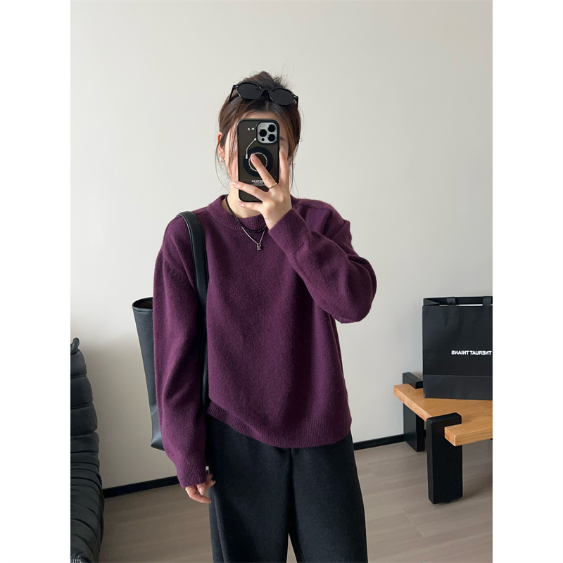 慵懒氛围感韩系毛衣!2025秋冬季保暖穿搭时尚紫色针织衫女上衣!