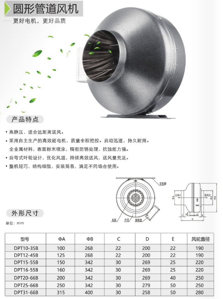 DPT15-55B南洋有为圆形管道换气扇 商品代码82052