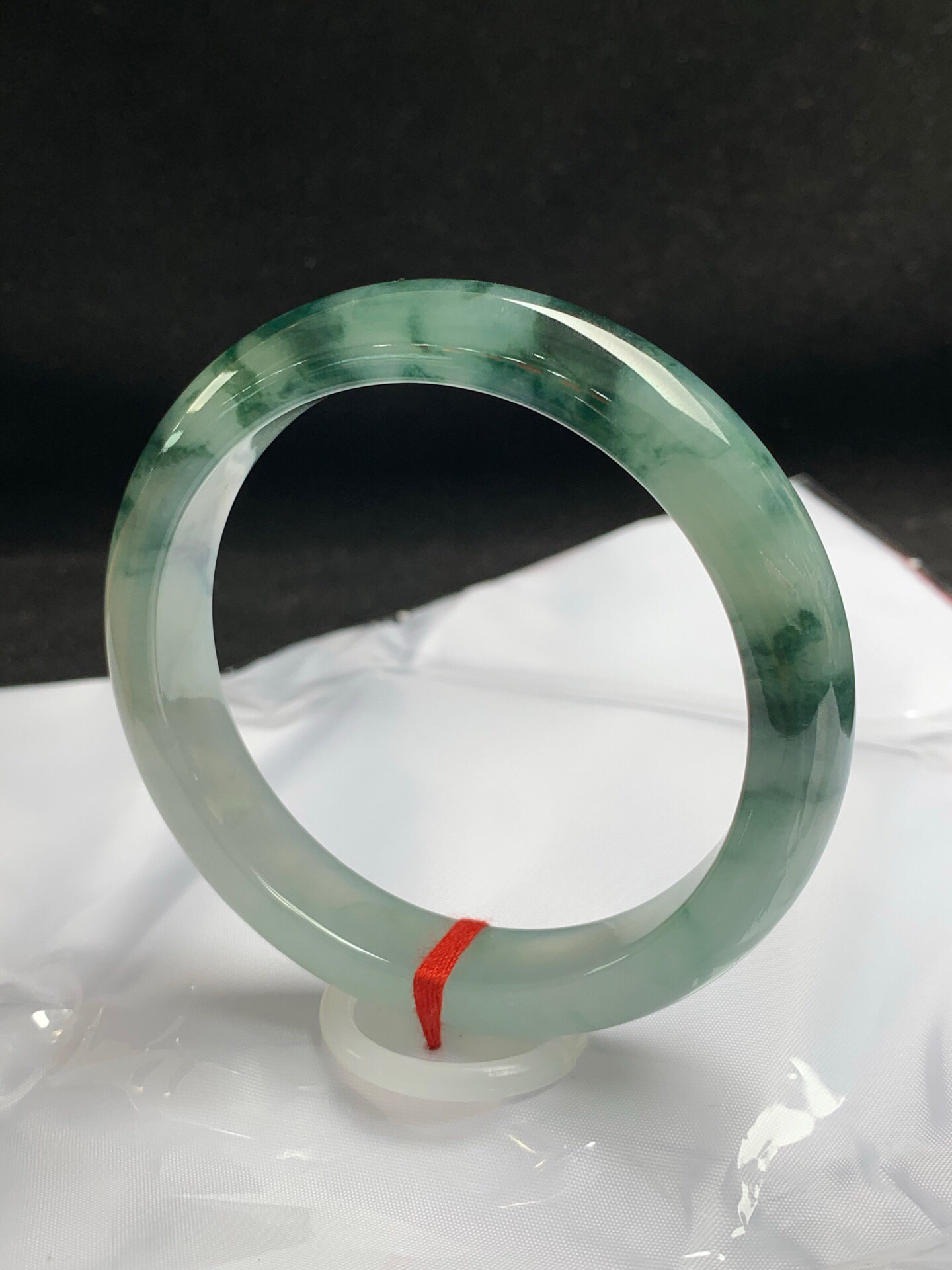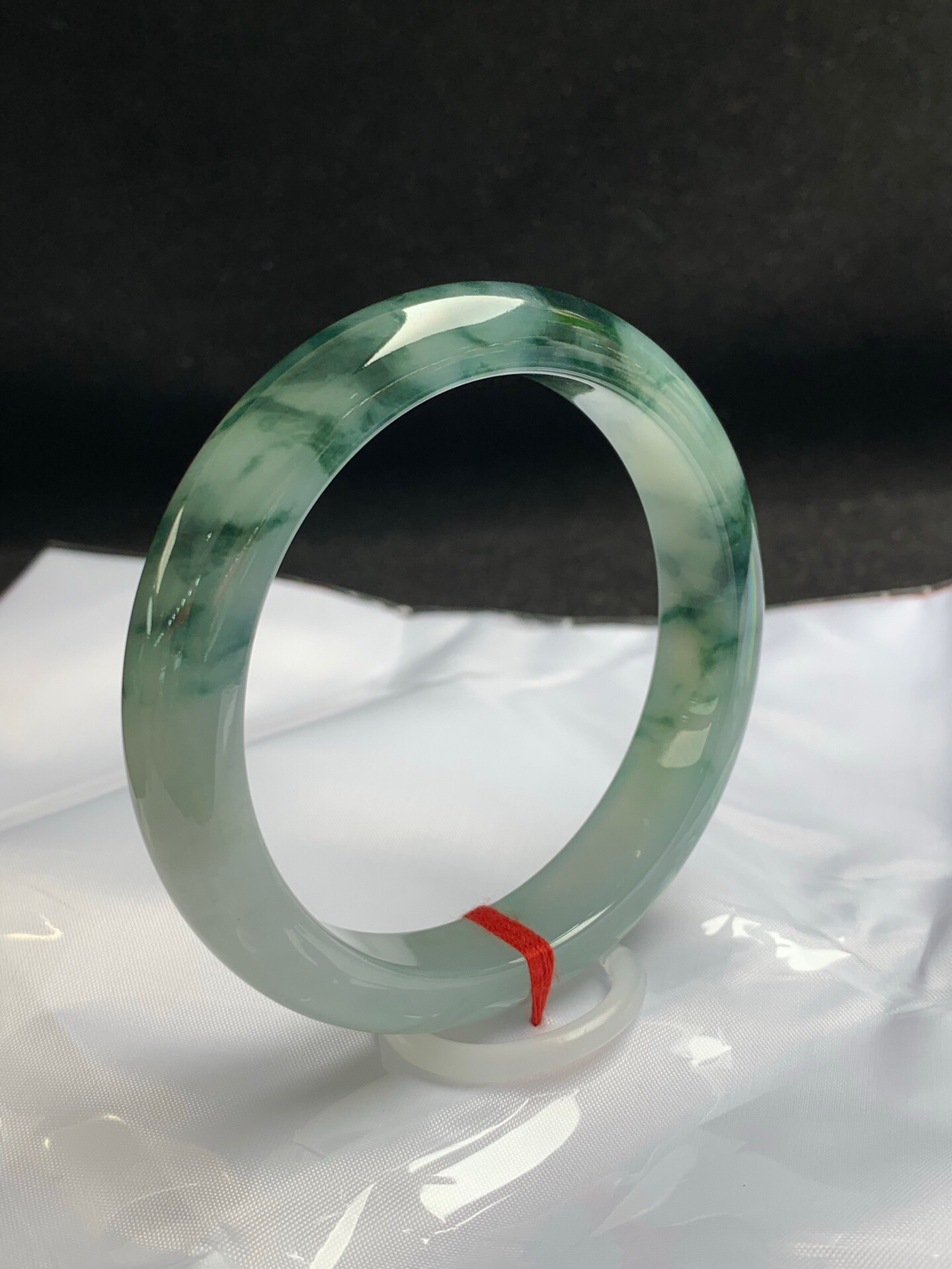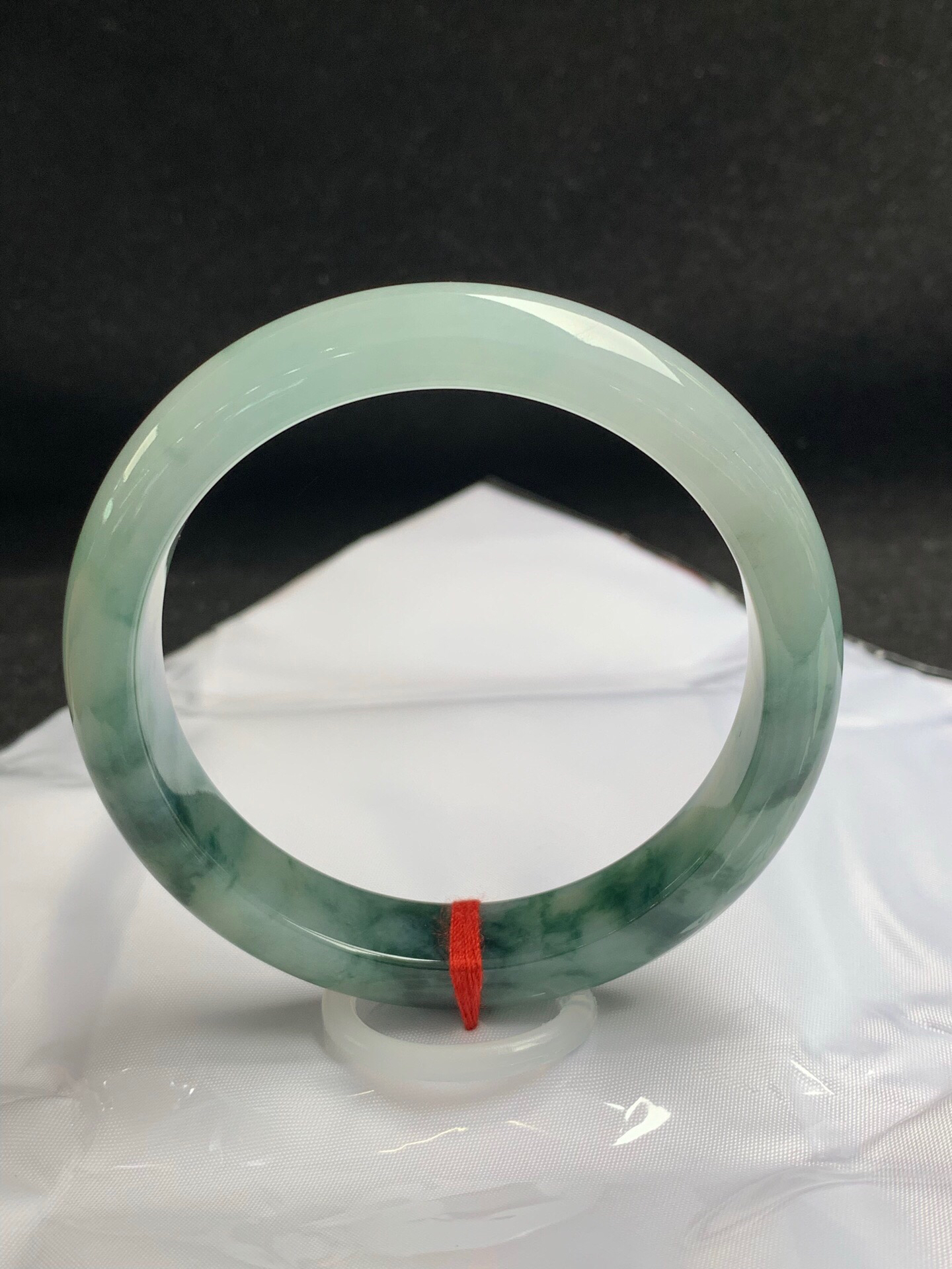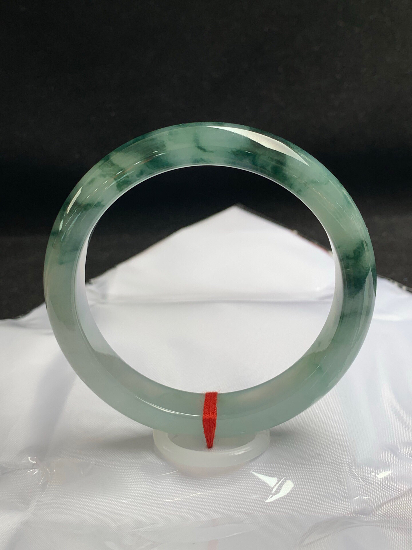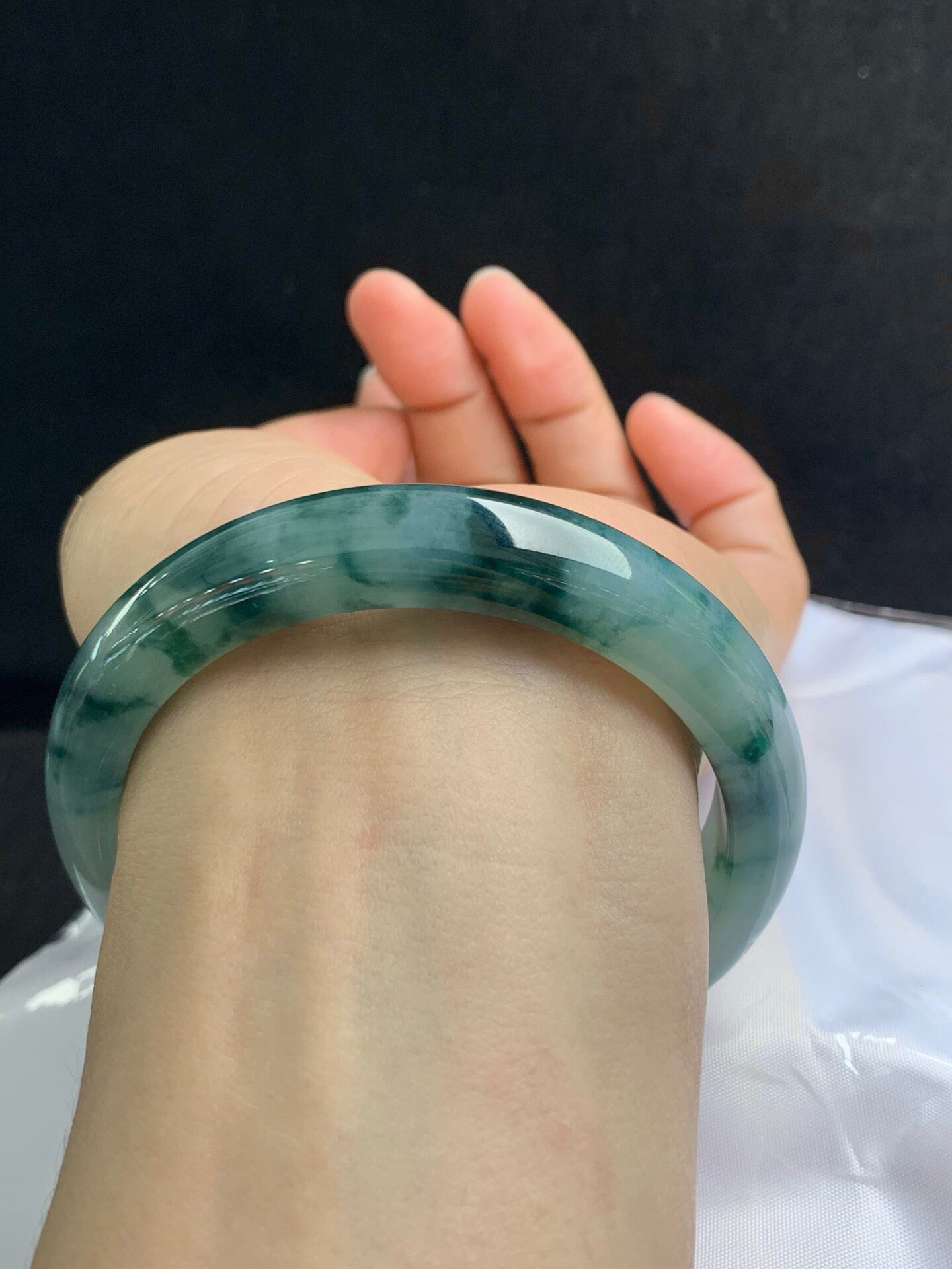 612952,60.5圈口,冰飘花正圈平安镯,冰晴底飘深蓝花,底子冰胶有光感,完美无裂,尺寸:60.5-12.6-8.7,超值价💰38500 #优石客珠宝#香玉荟萃