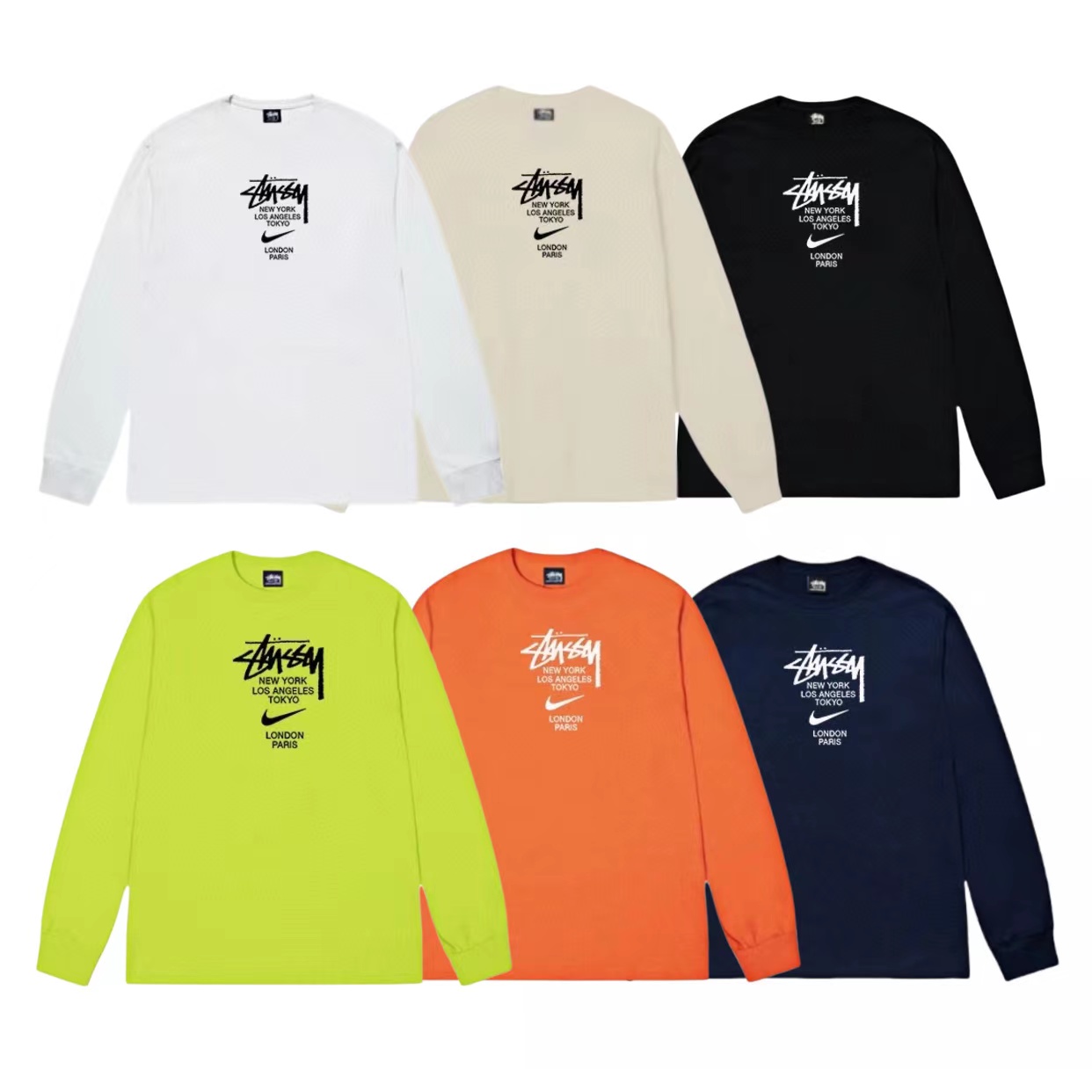 联名款字母logo印花情侣圆领长袖T恤 定制纯棉圆筒布面料 单件克重高达 260g 手感柔软舒适