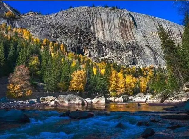 【可可托海国家地质公园】沿途欣赏富龟石、白桦林、夫妻树、石门等景点,还会途经中国最大的有蹄类自然保护区---卡拉麦里,如果运气好的话,可远看到野驴、野骆驼、黄羊,以及更为珍贵的野马等国家级野生保护动物;然后经过火烧山,这里是我国最大露天煤矿基地,一路感受新疆之大,不一样的西域风情。抵达后入住五江温泉酒店休息(可凭房卡泡温泉,洗去一身疲惫)。
