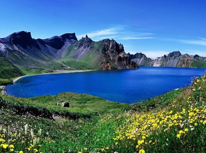 【天山天池】海拨1980米,湖面呈半月型,是世界著名的高山湖泊,古称“瑶池”,据说神话中西王母宴群仙的蟠桃盛会便设在此处。