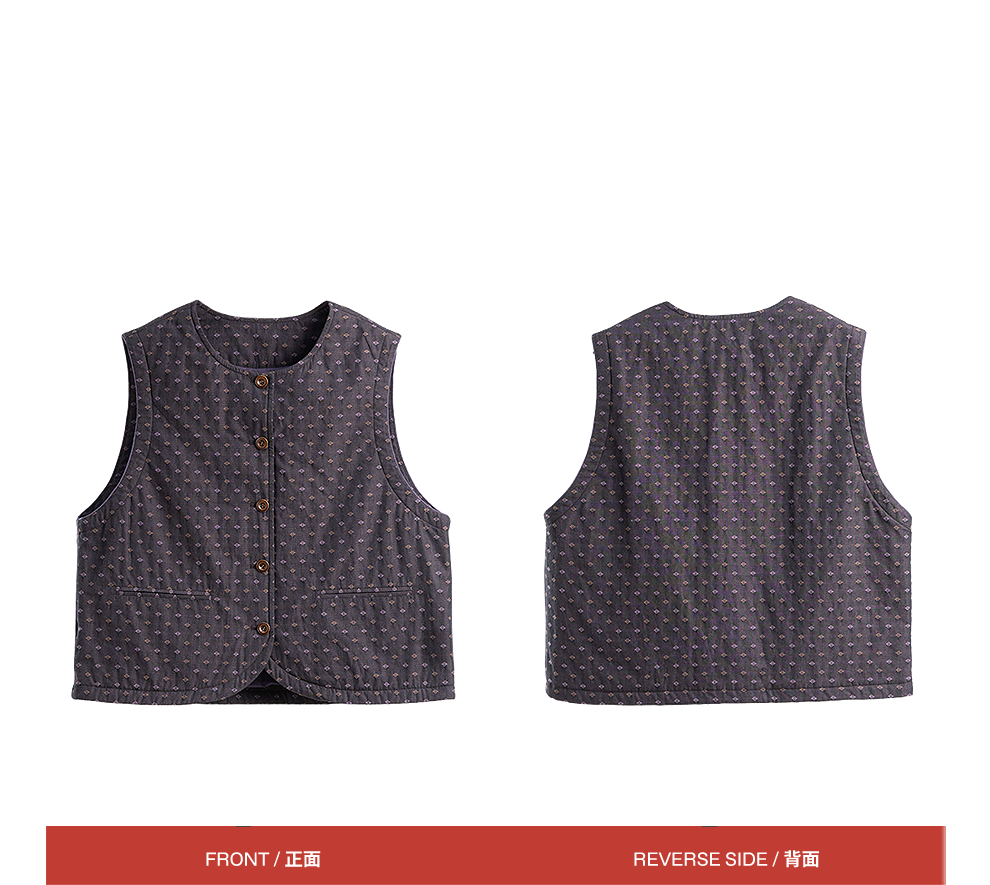 绽放722朵/棉色织提花夹棉短款马甲百搭保暖背心女2025冬新款上衣