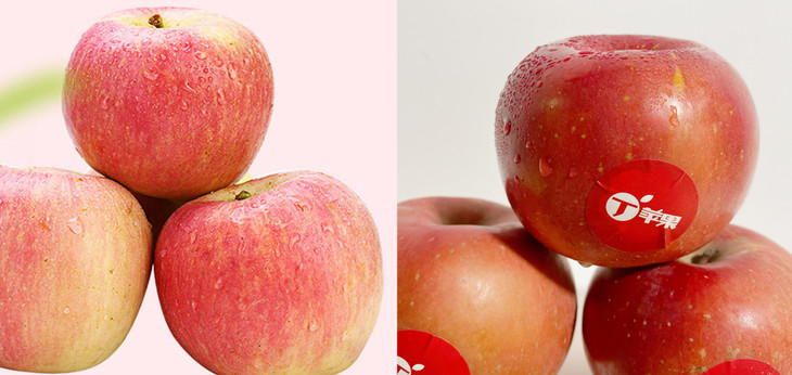 普通苹果(左图):长期套袋见光少,颜色较浅,略显干,打农药,会打蜡,有害健康;