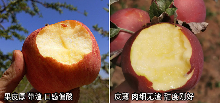 普通苹果(左图):口感粗糙,有渣偏酸;