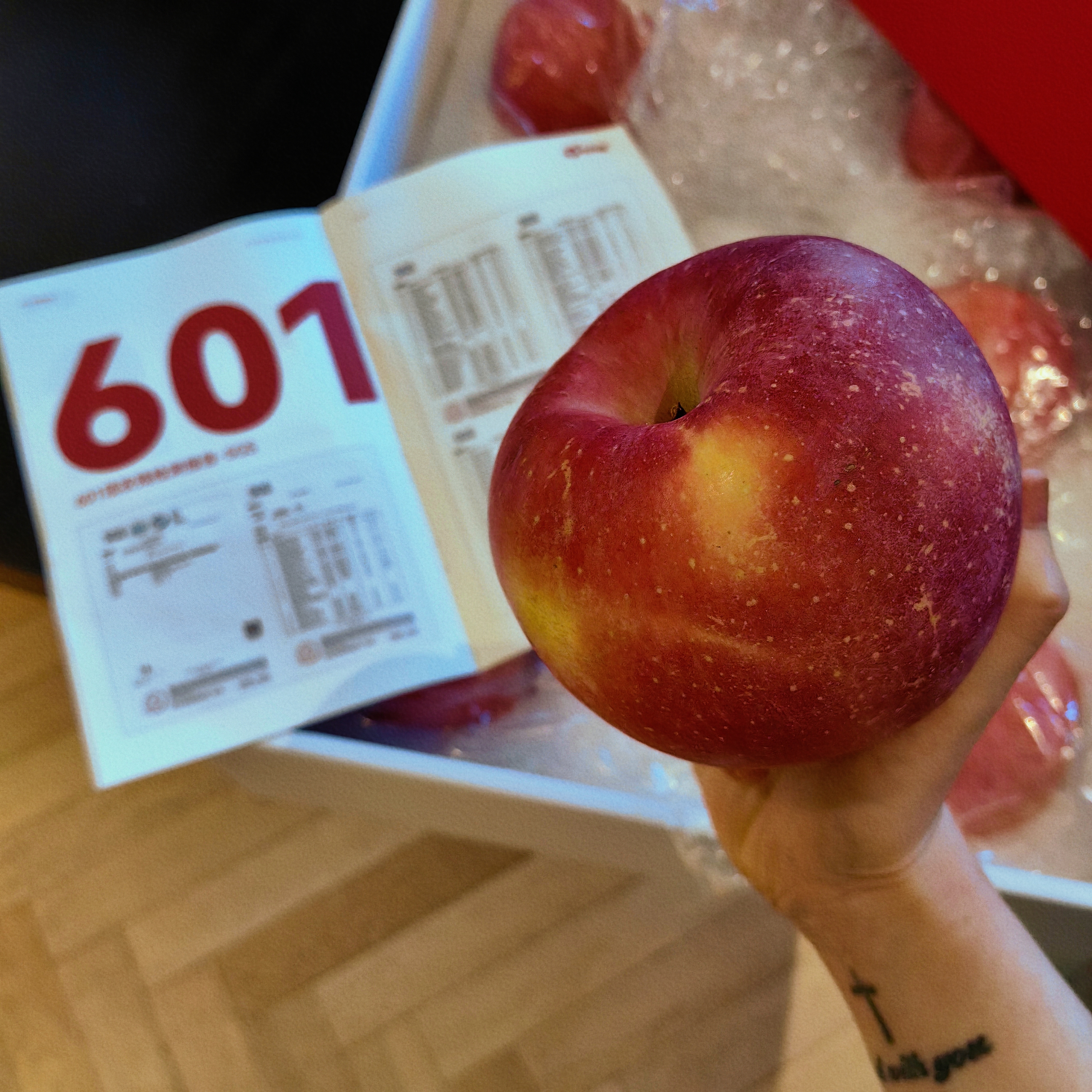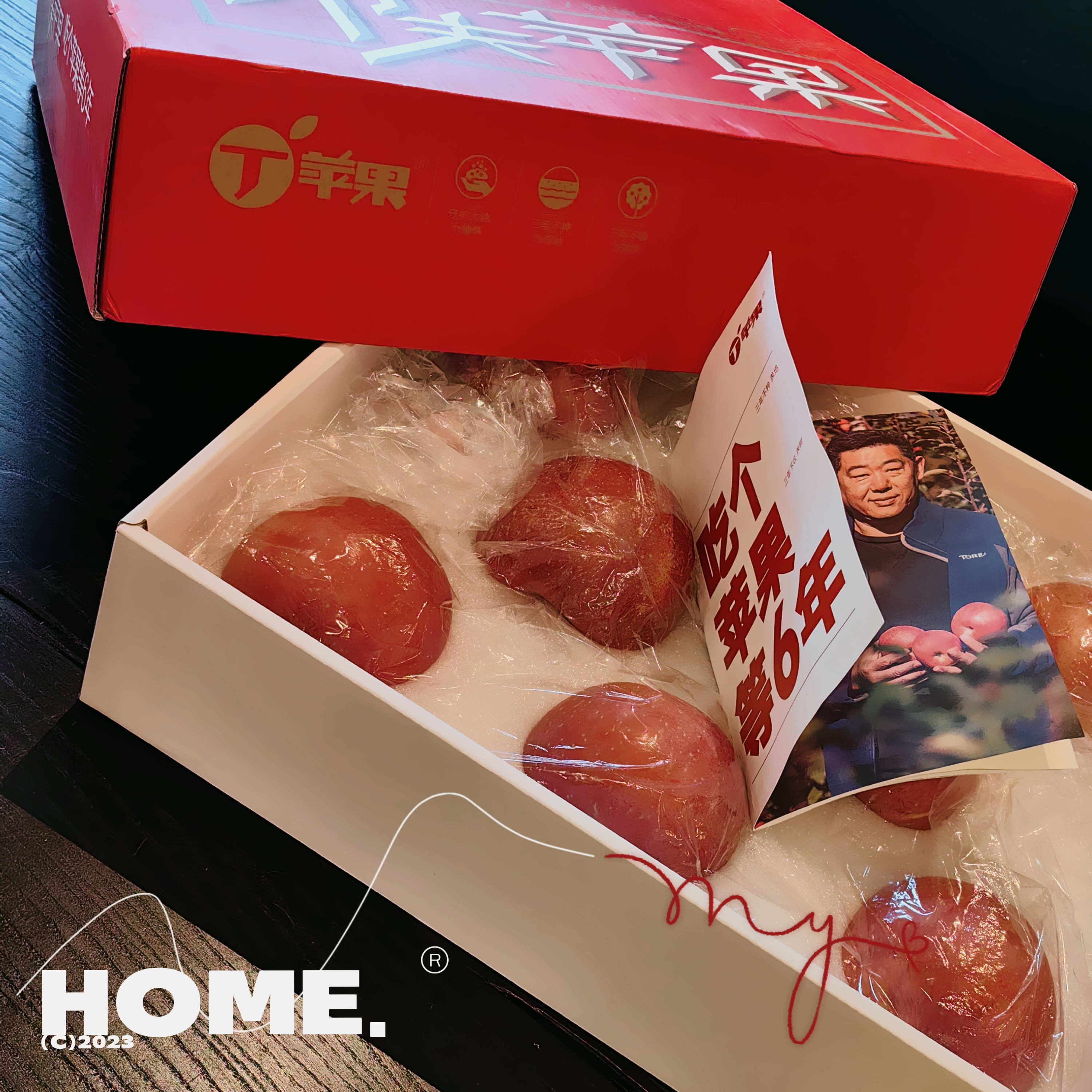 我买的是最大最贵的,打开盒子就有浓烈的果香,咬一口是苹果的脆,伴随着肉嫩脆爽尝到的的甘甜,连皮都可以吃!从此其它苹果都是路人!因为普通苹果长期套袋见光少,颜色较浅,略显干,甚至会打农药打蜡,有害健康;丁苹果是自然生长的,有机无农药,颜色鲜红,形状饱满。普通苹果口感粗糙,有渣偏酸;丁苹果香甜,汁多,可以带皮吃。一定要试试,非常惊艳!我戒糖,所以就吃了两口,剩下的陆老师三下五除二了,还让我不要送人,这款苹果他要自己吃。但包装真的太好,当礼物也太有面子了,巨大一盒!