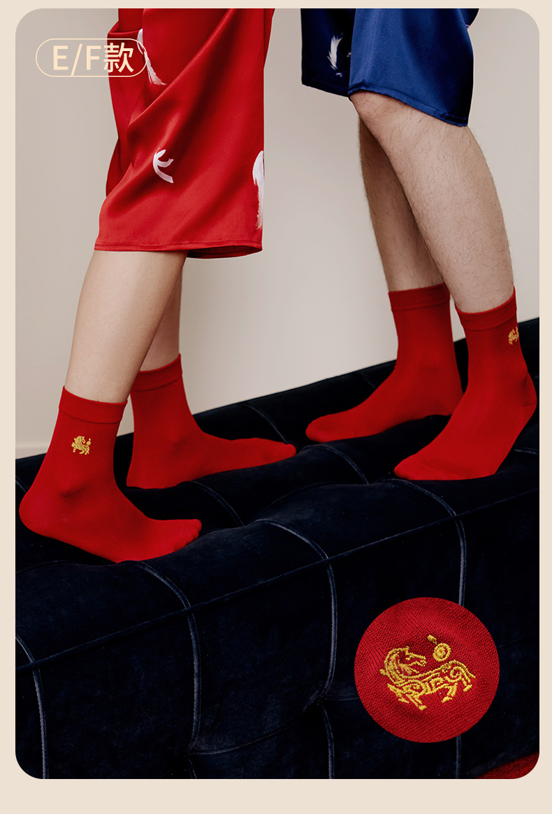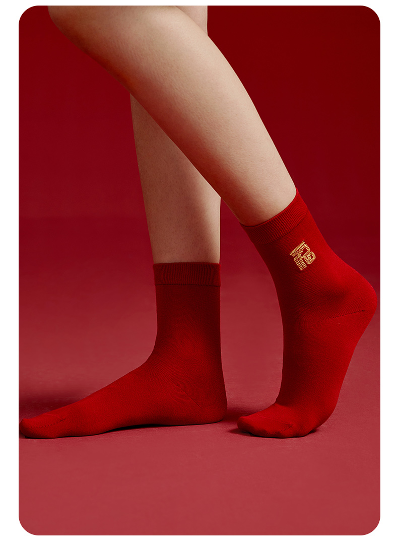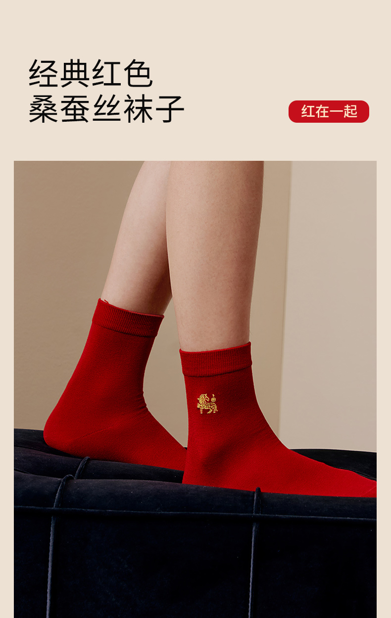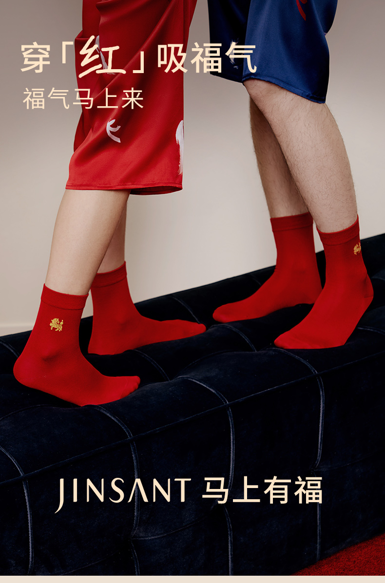 一起红】金三塔本命年红袜子男女情侣桑蚕丝结婚喜庆年中筒袜礼盒 JXQ314+JXQ315