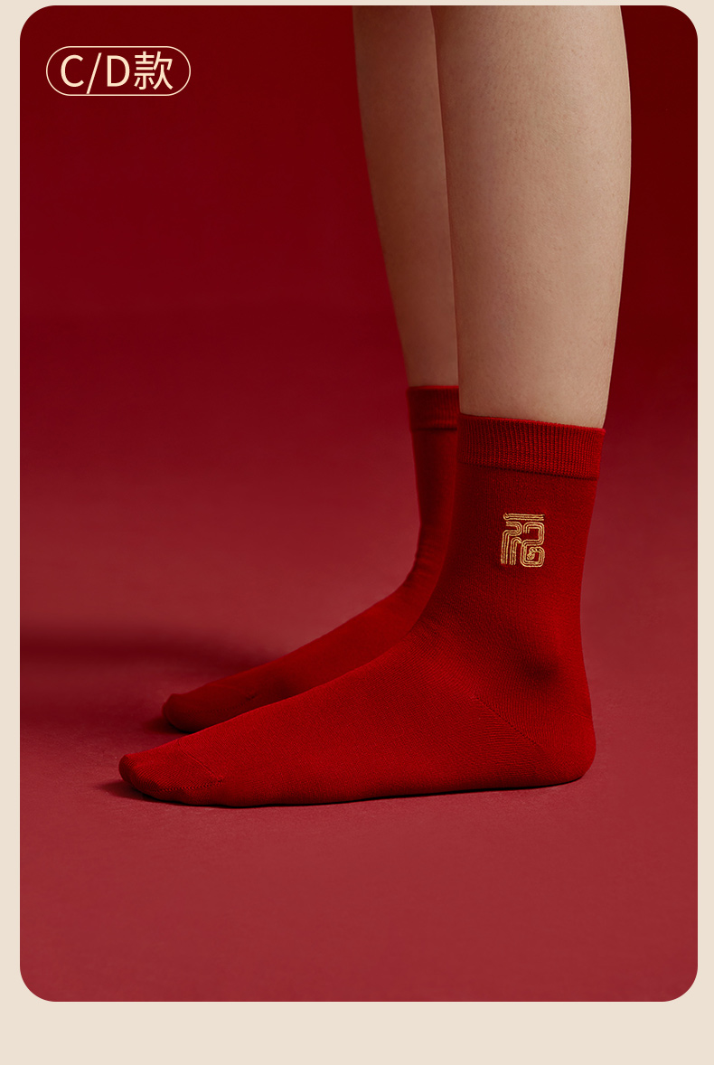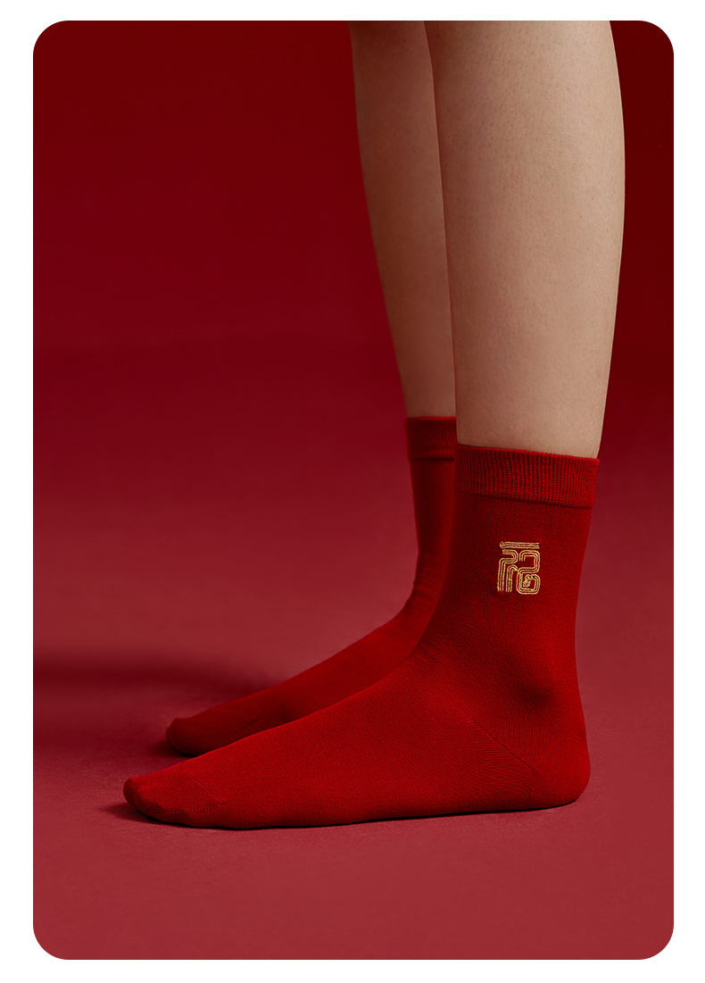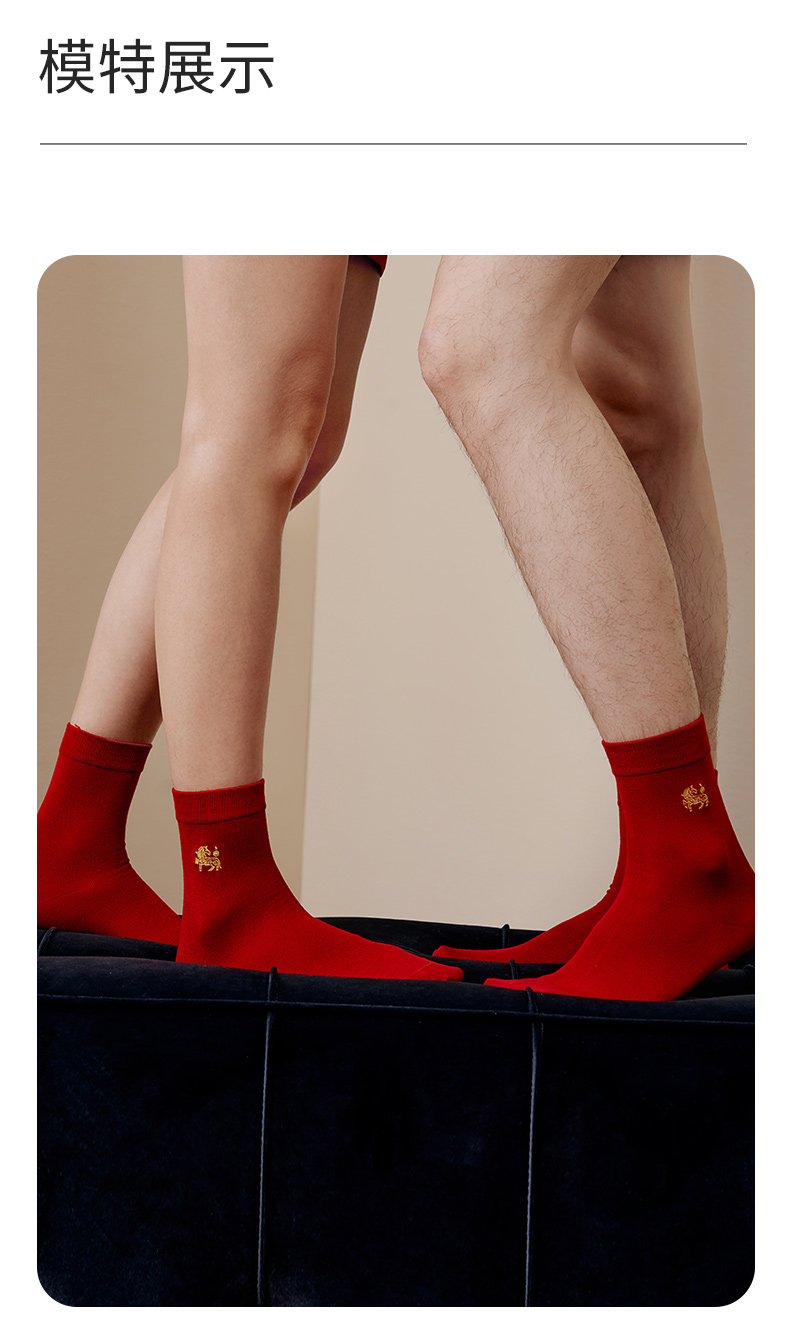 一起红】金三塔本命年红袜子男女情侣桑蚕丝结婚喜庆年中筒袜礼盒 JXQ314+JXQ315