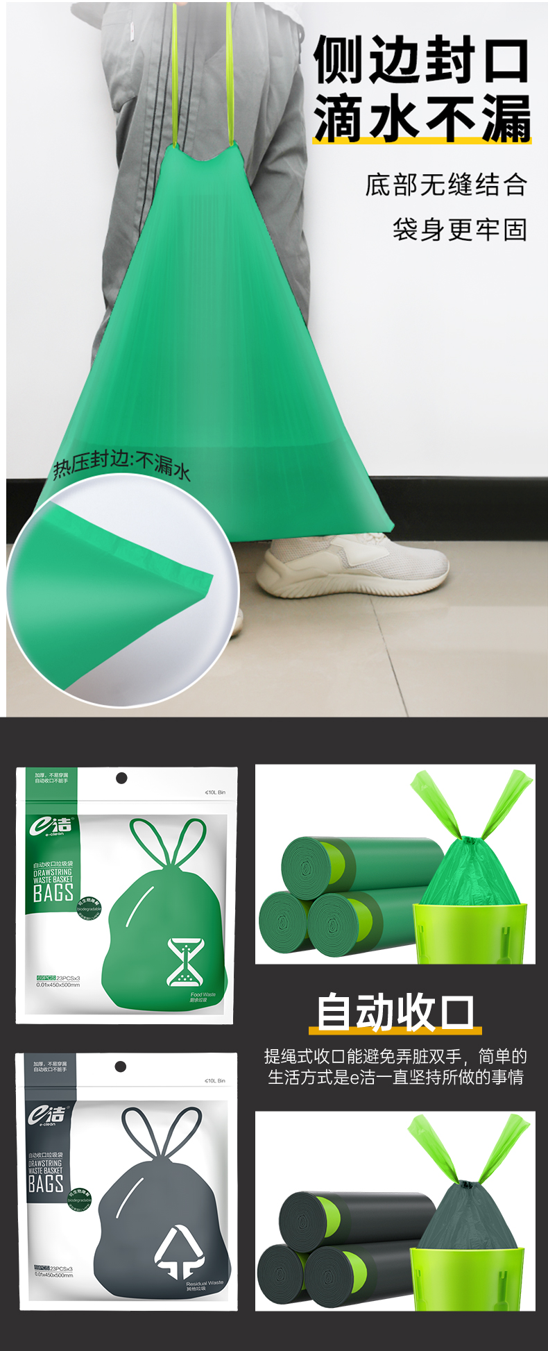 【爆款加厚1.3丝 E洁自动收口垃圾袋家用手提式抽绳黑色塑料袋120只