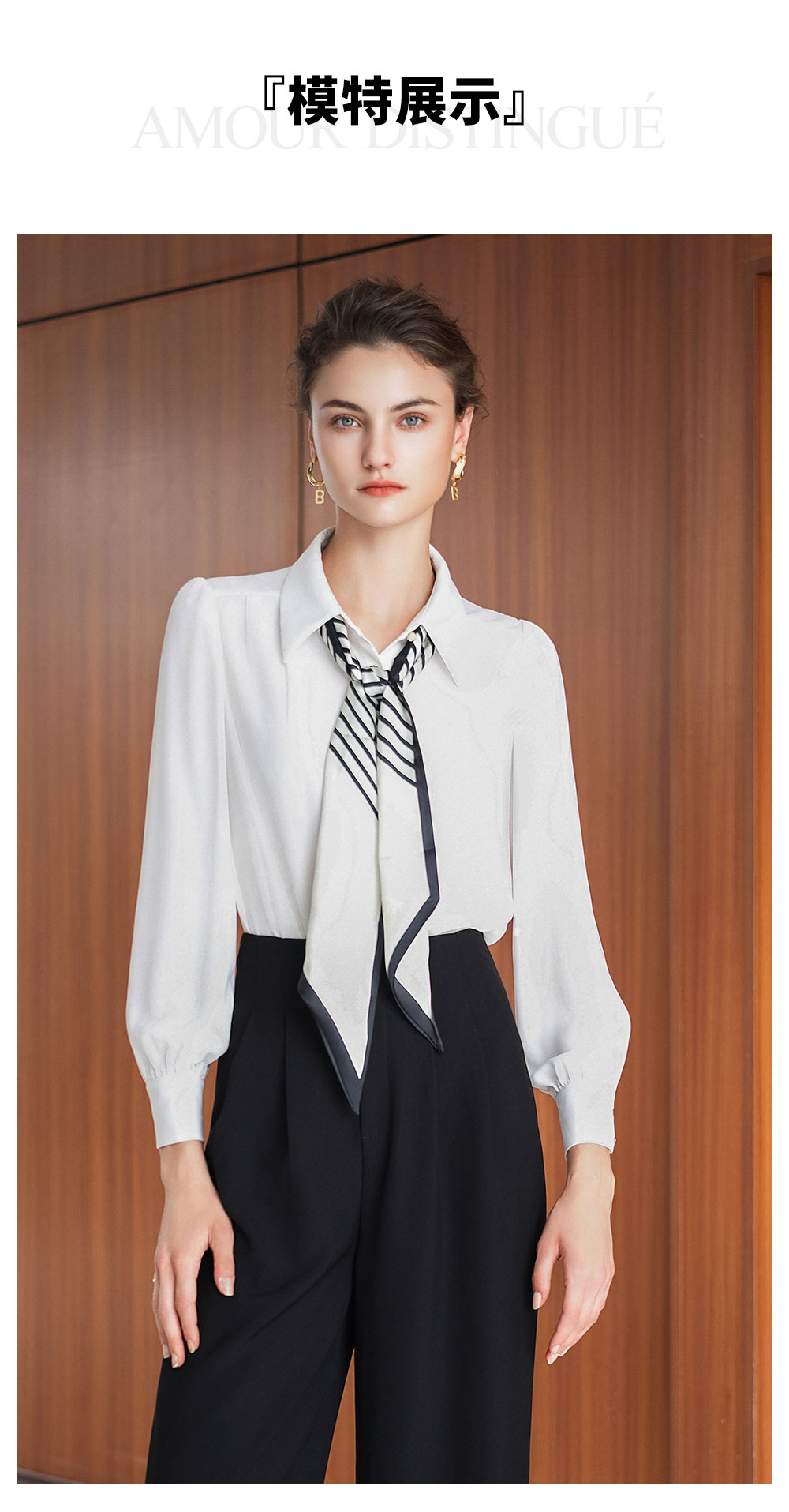AD新款女装2025秋季设计感小众洋气飘带长袖雪纺衬衫上衣翻领百搭