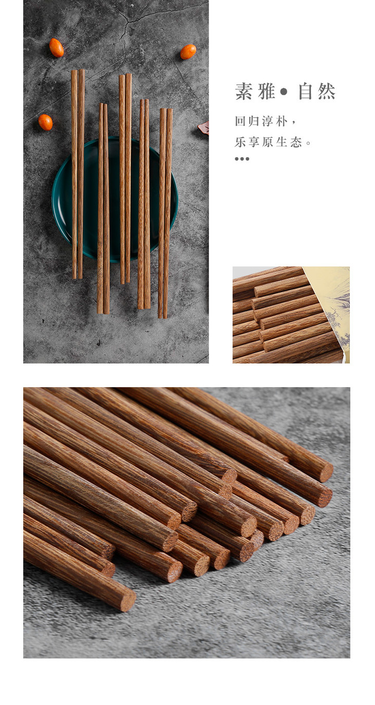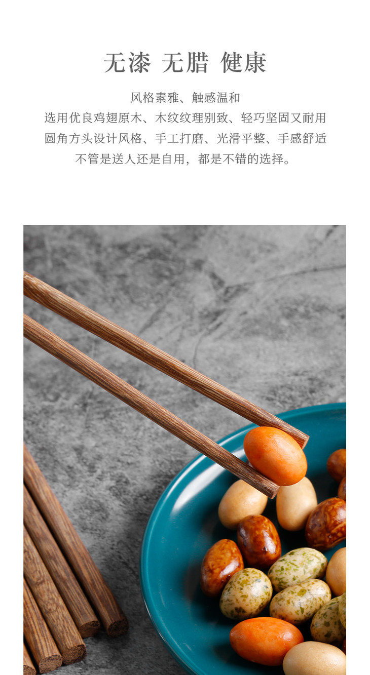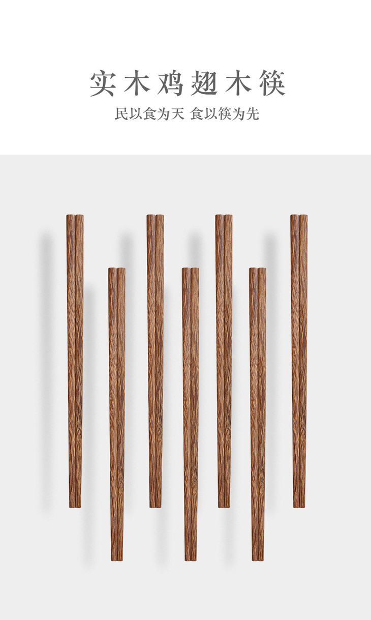 【原木 鸡翅木筷】中式实木家用无漆无蜡鸡翅木中华筷10双装筷子