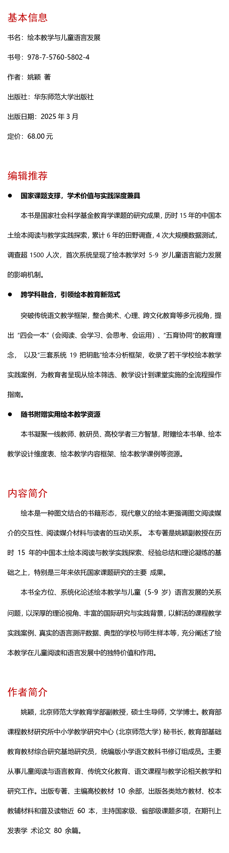绘本教学与儿童语言发展 姚颖 绘本阅读 教学实践
