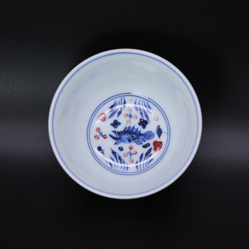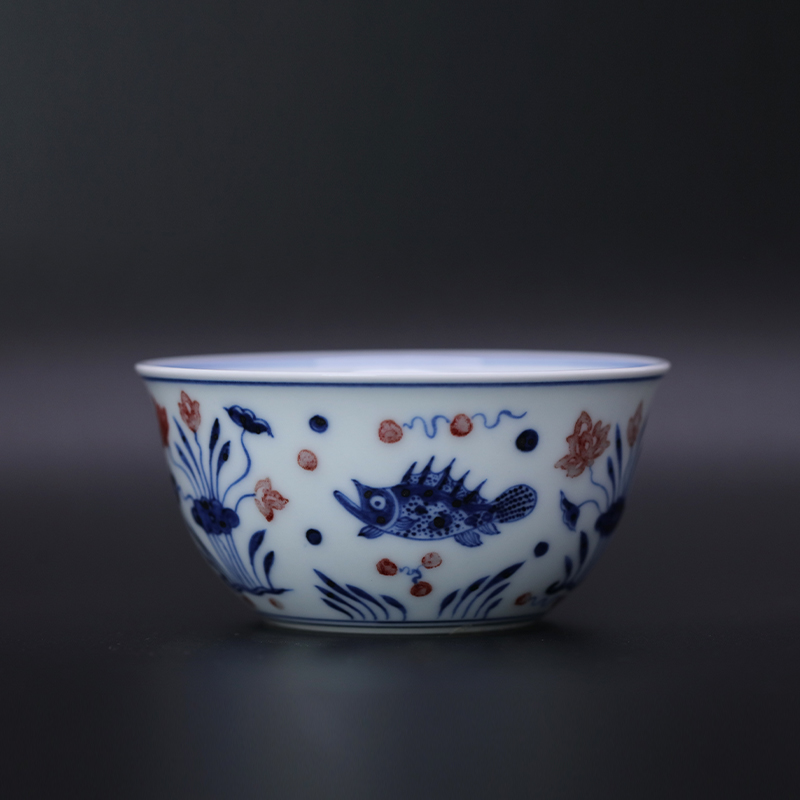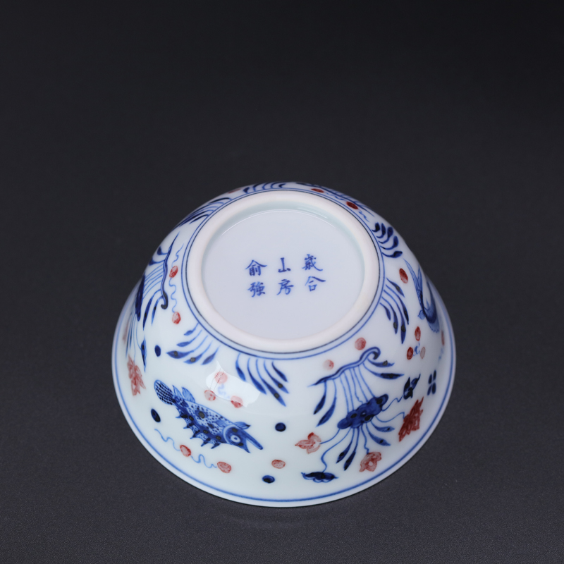 歳合山房俞强款青花釉里红婷婷玉立卧足杯