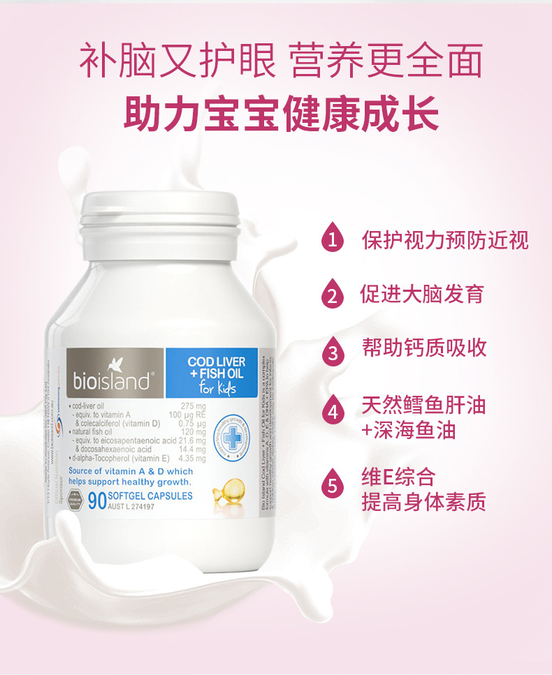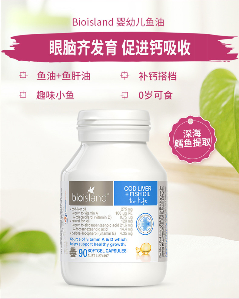 【保税仓/香港直邮】澳洲佰澳朗德Bio Island婴幼儿鳕鱼肝油 90粒