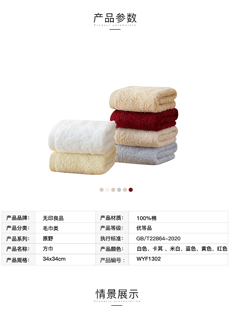 纯棉吸水方巾不易掉毛擦汗擦手小毛巾 多款多色可选 无印良品