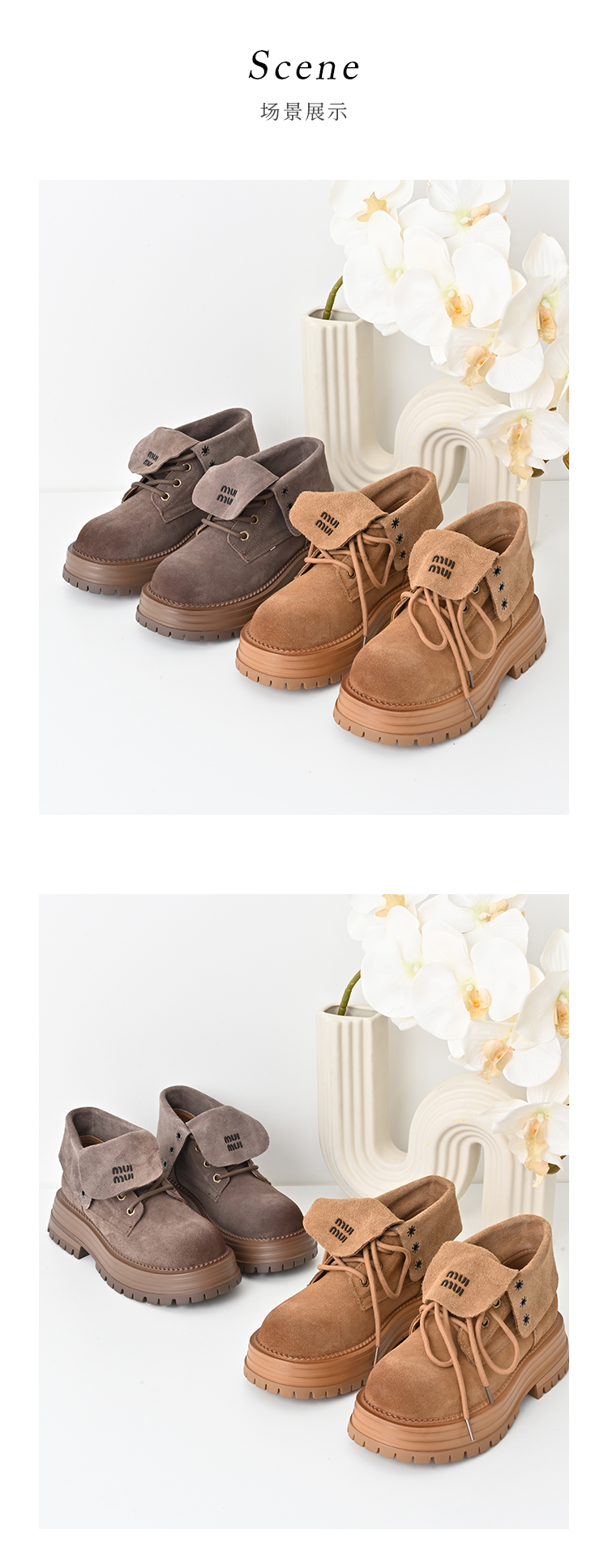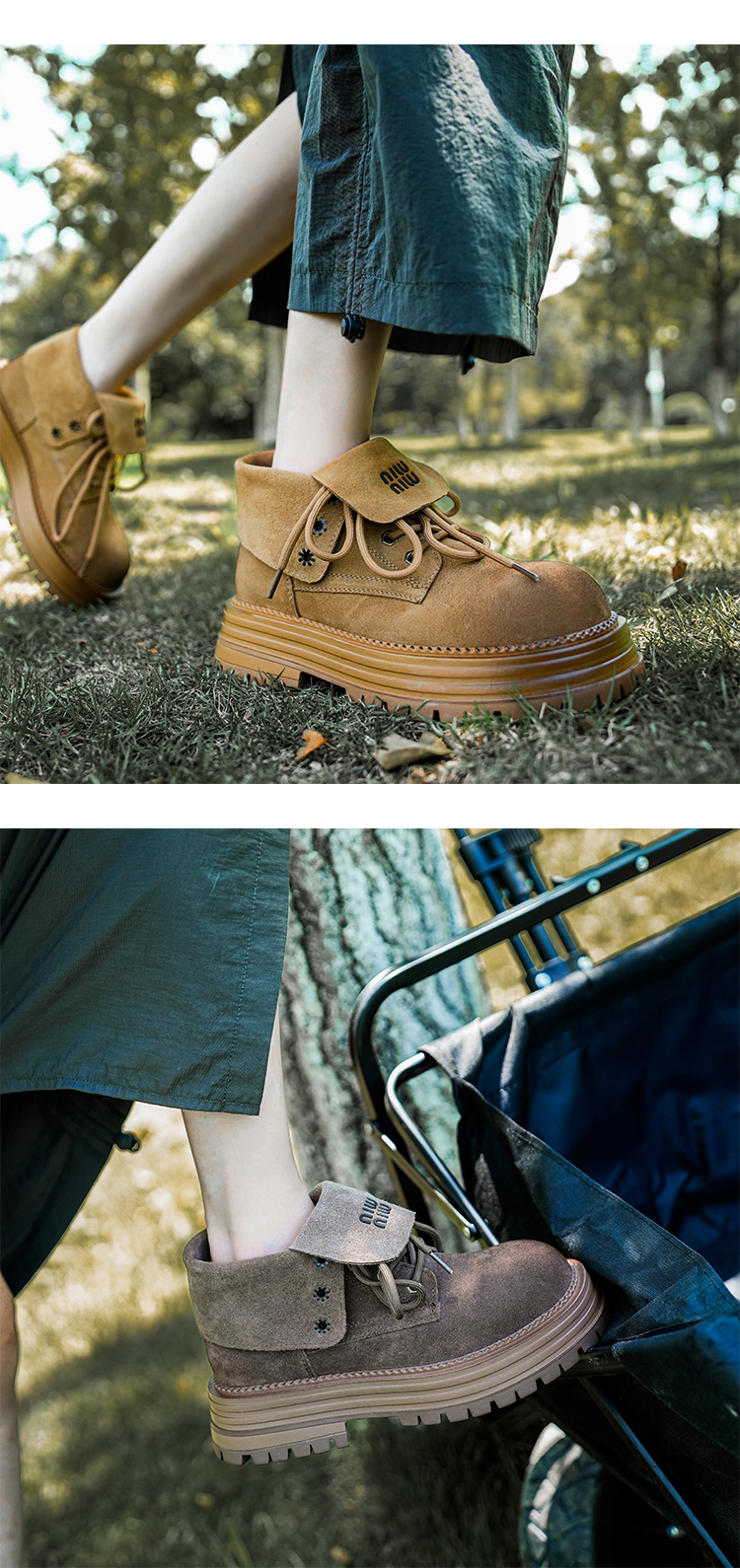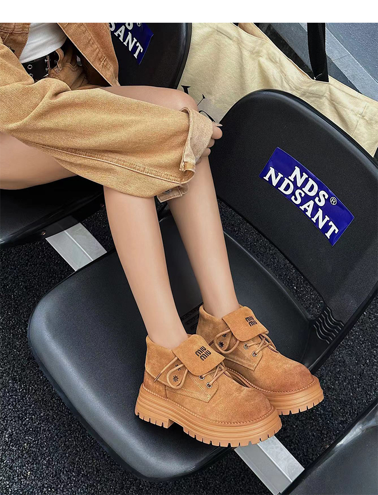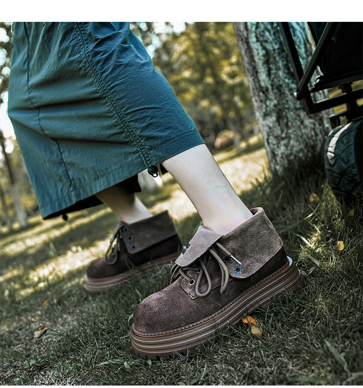 经典鲨2024年冬新款百搭圆头时尚渐变潮流平底两穿马丁靴女KW356-D58011