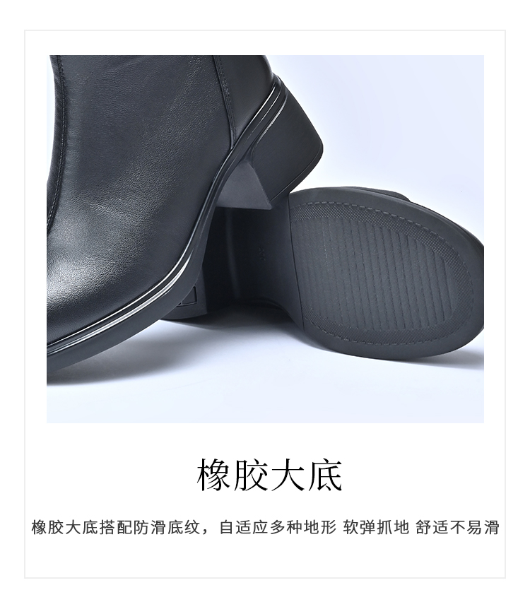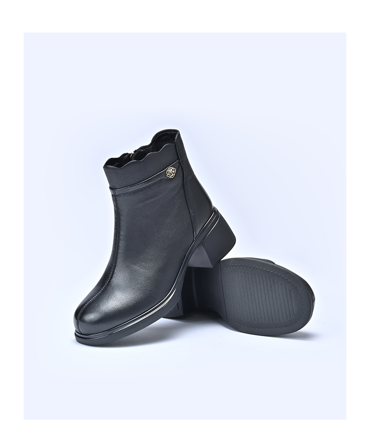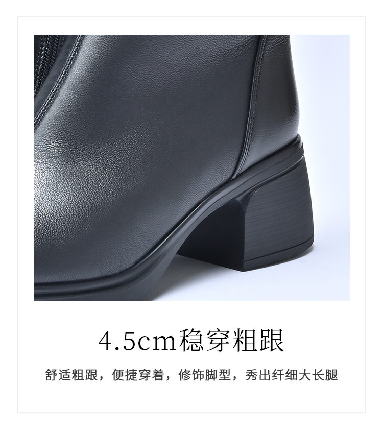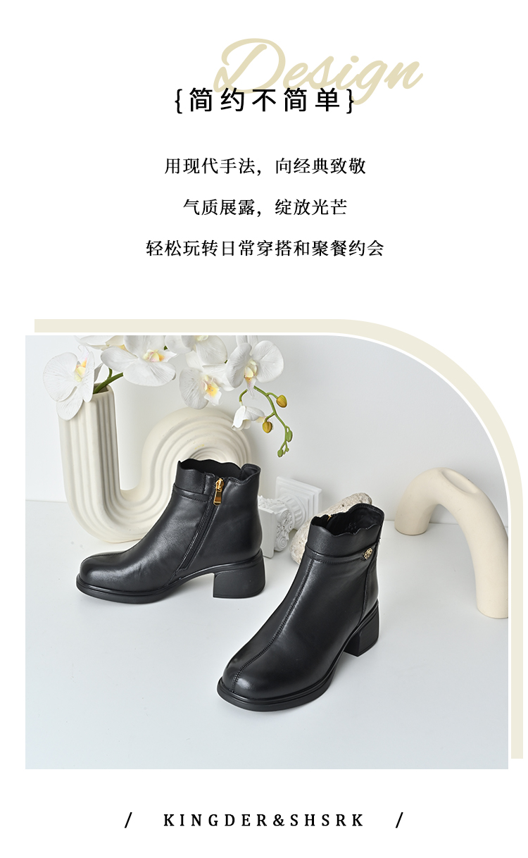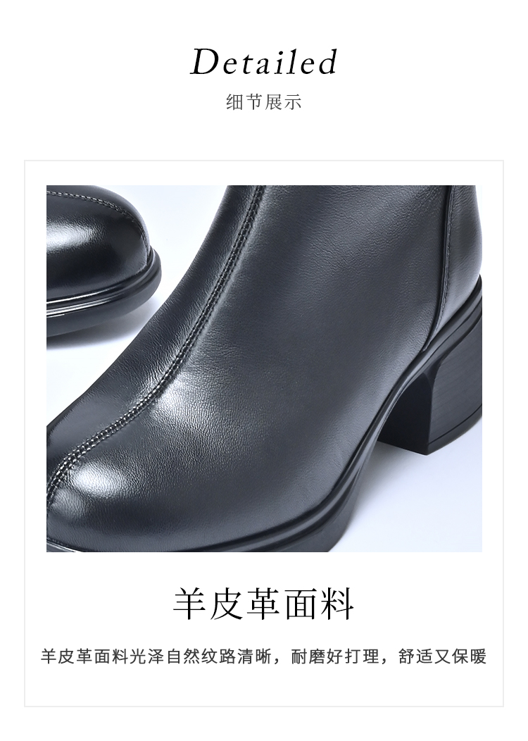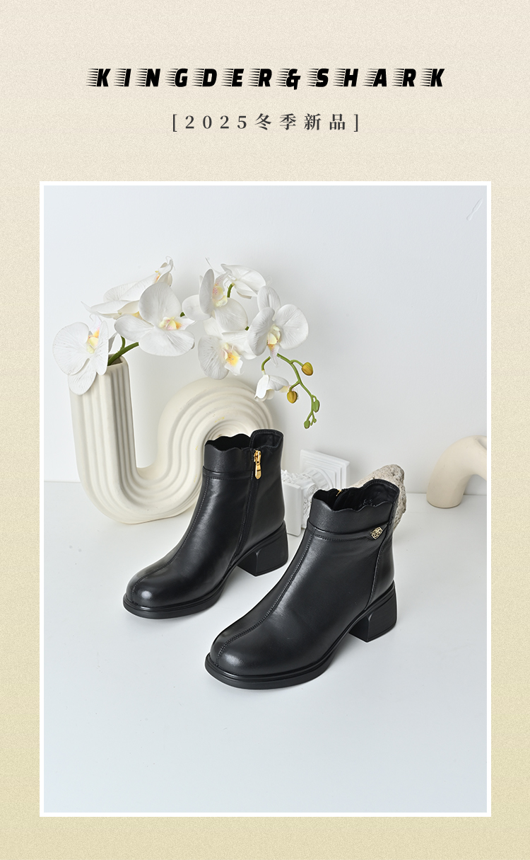 经典鲨2025年冬季专柜新款羊皮革加绒加厚保暖中粗跟短靴女KD29-558071