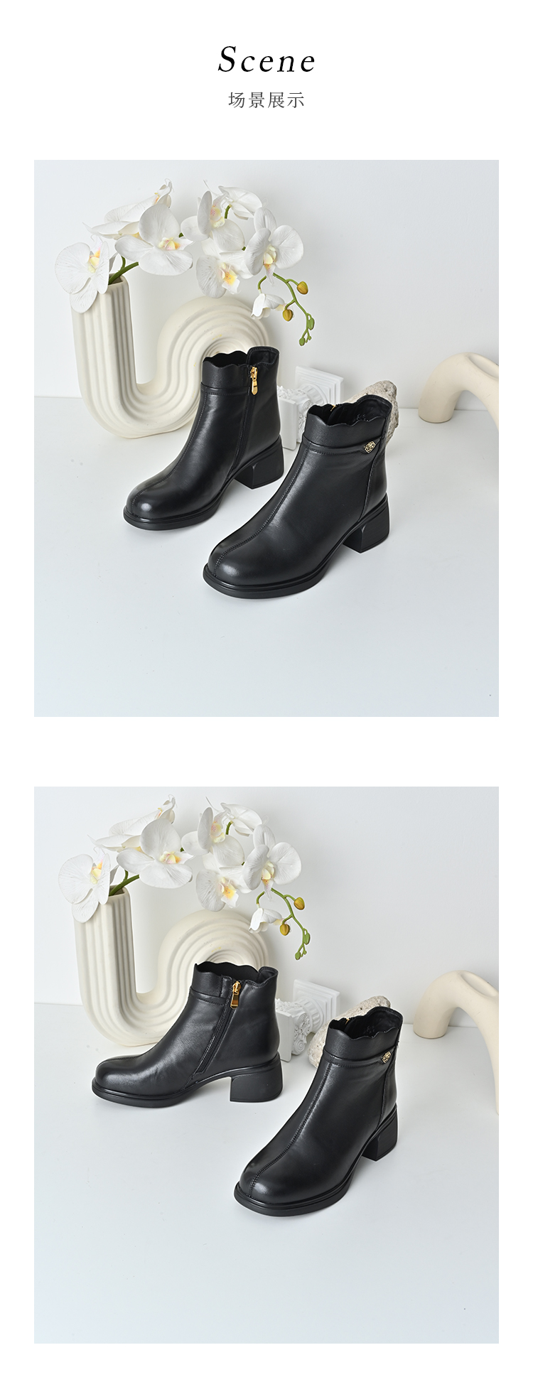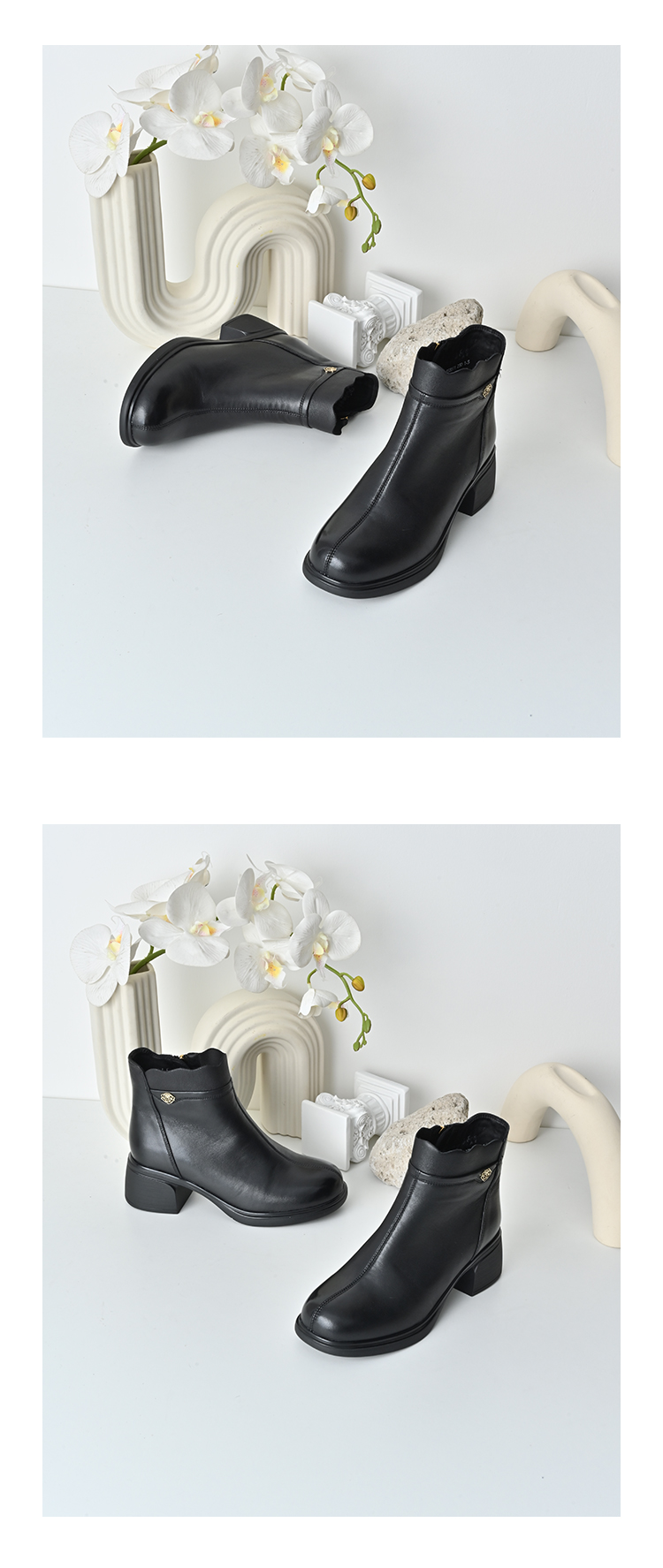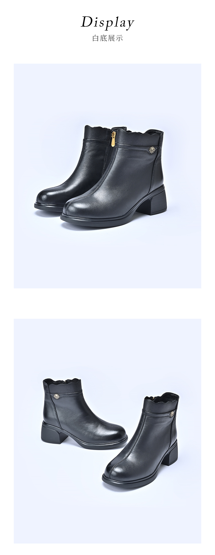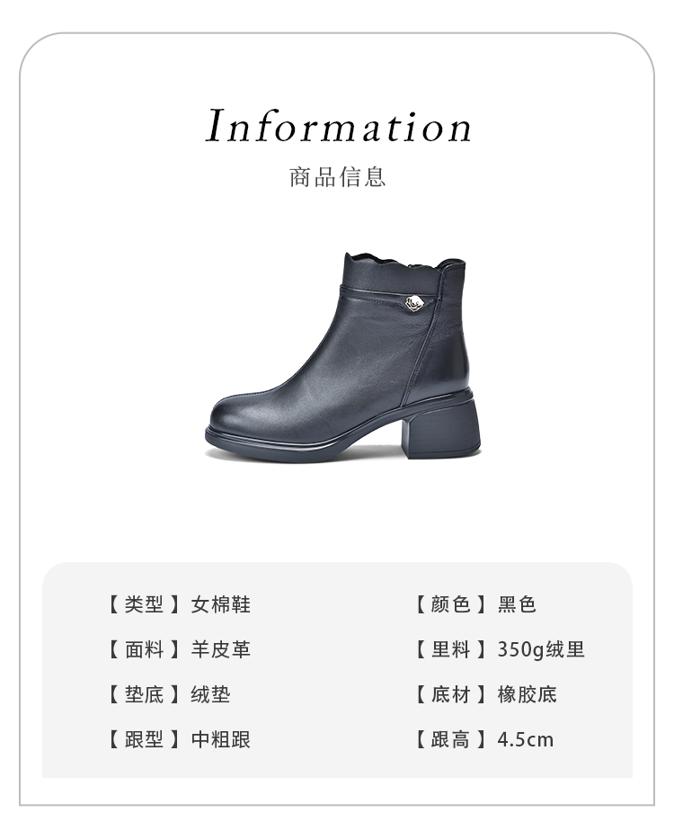 经典鲨2025年冬季专柜新款羊皮革加绒加厚保暖中粗跟短靴女KD29-558071