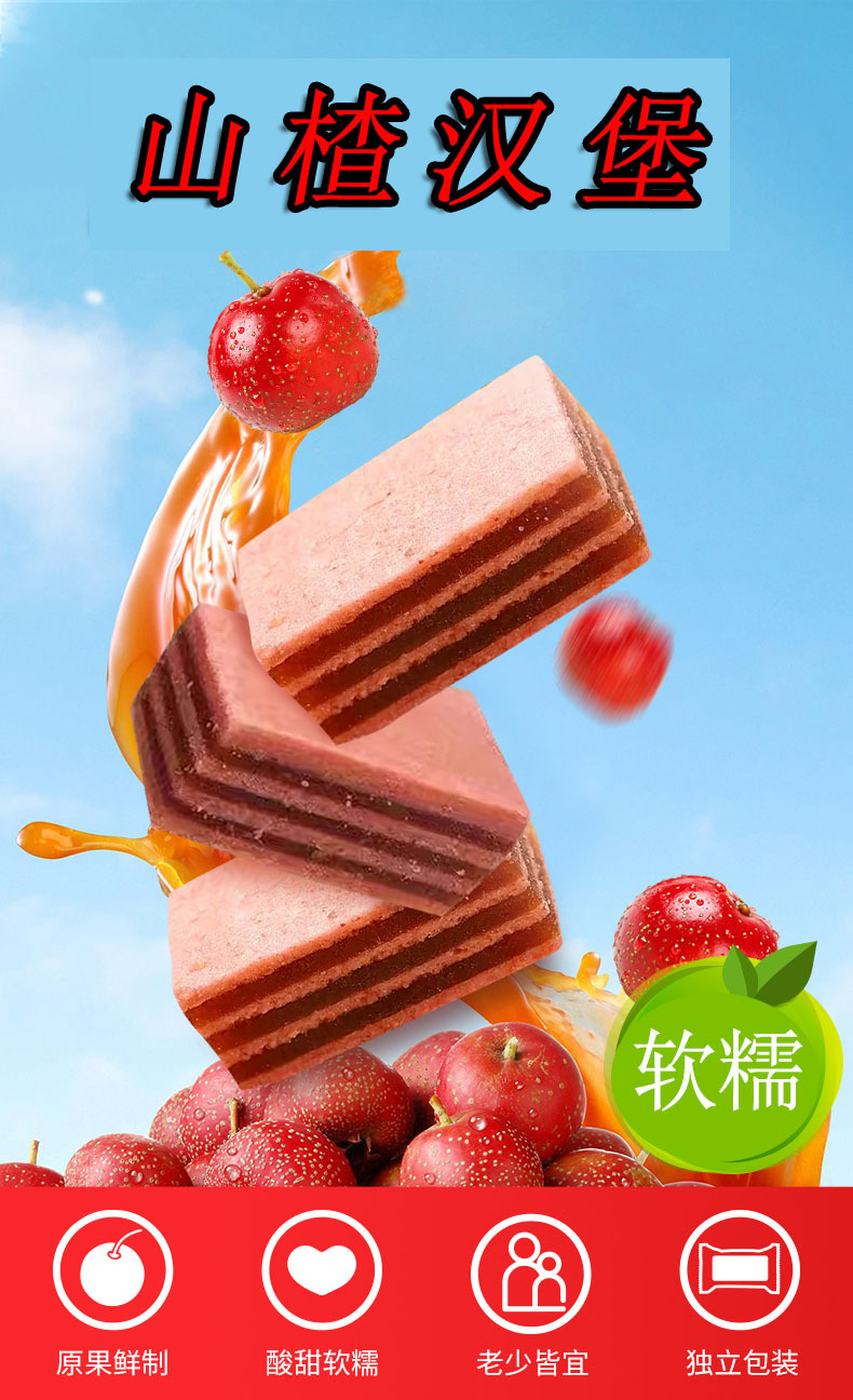 【1000g装】山楂汉堡 原味蓝莓味独立小包装山楂片山楂条零食儿童老人零食1000g