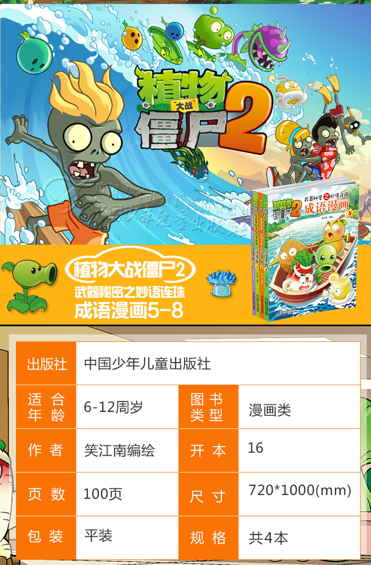 《植物大战僵尸2 武器秘密之妙语连珠成语漫画 第二辑》丨 小学生课外阅读书籍 名师推荐 共4册 6-12岁适读