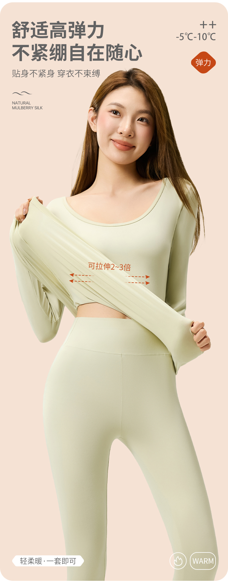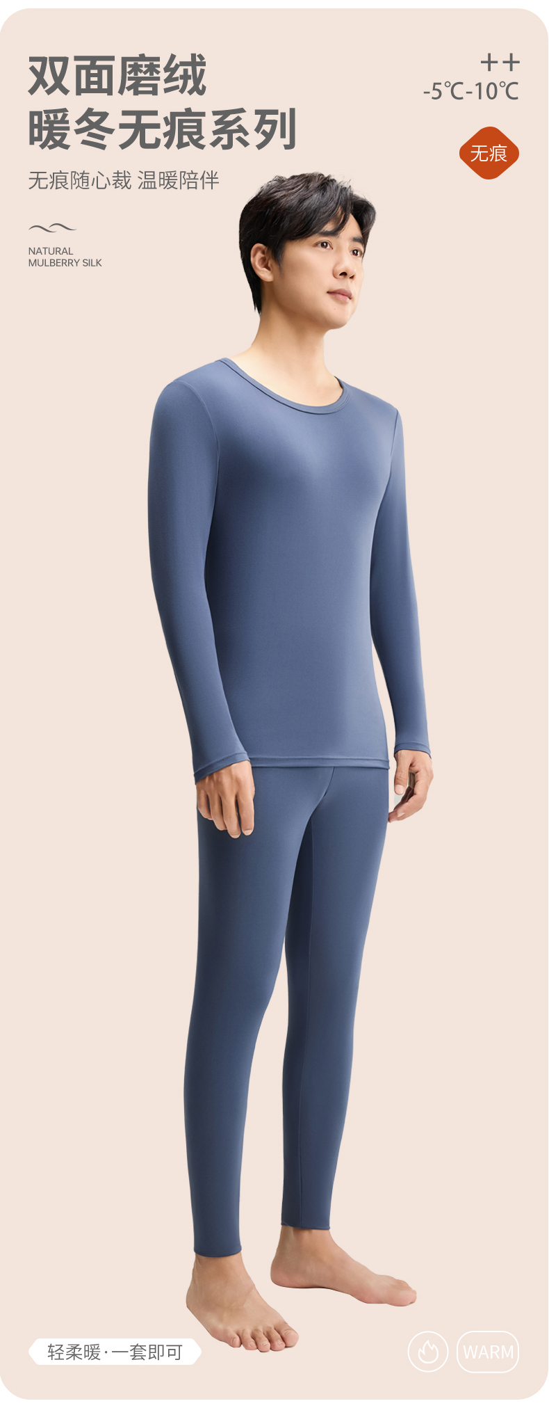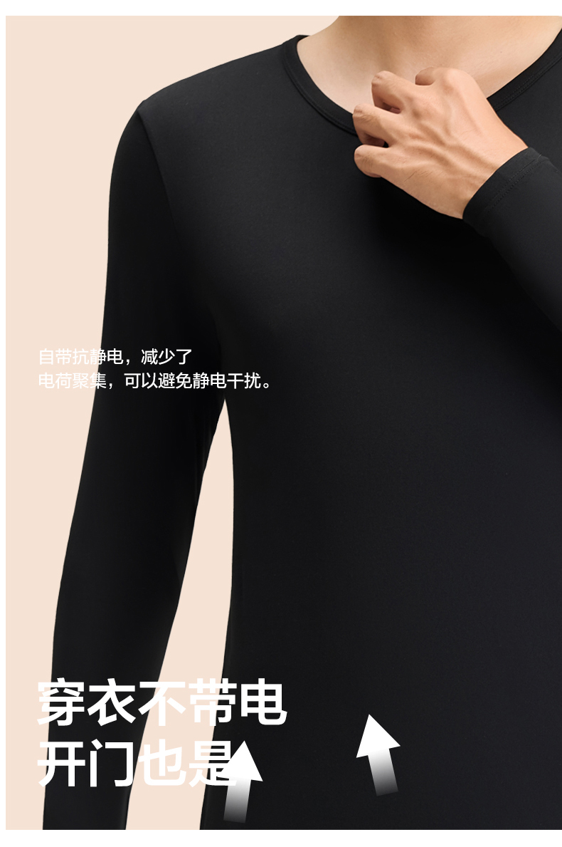 岸纾 10A抗菌技术优质羊绒蛋白热能保暖圆领套装 男女秋冬必备