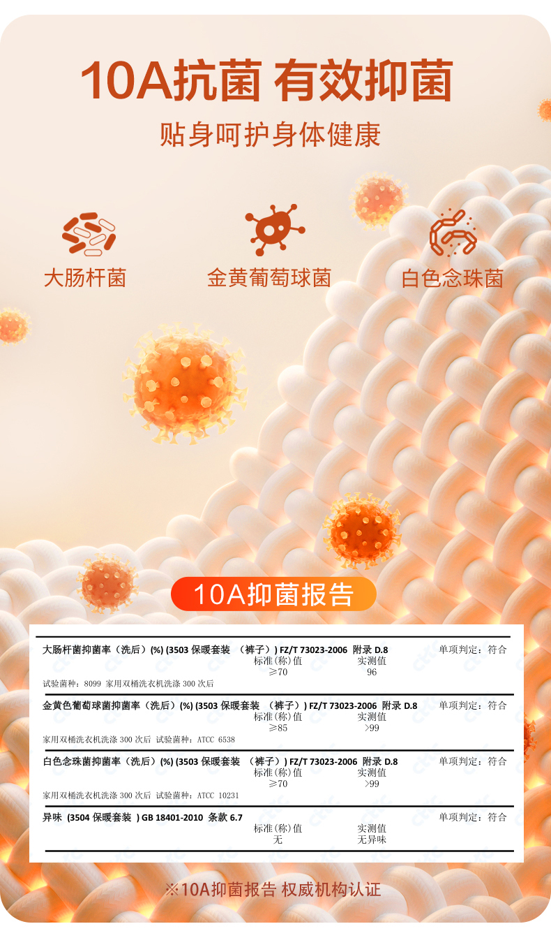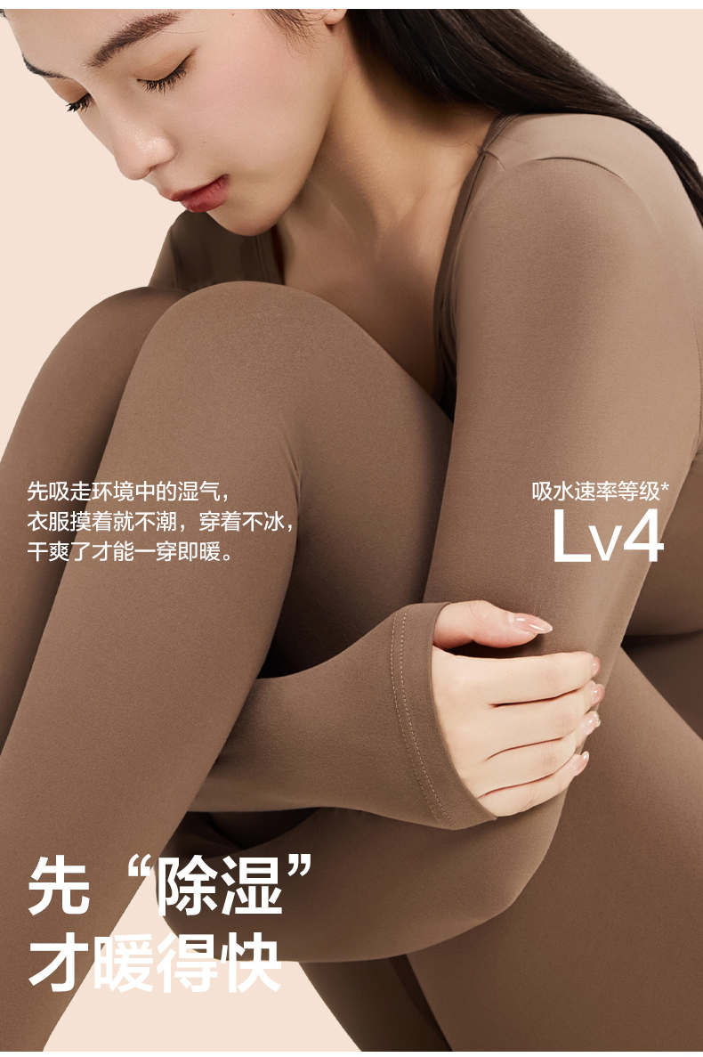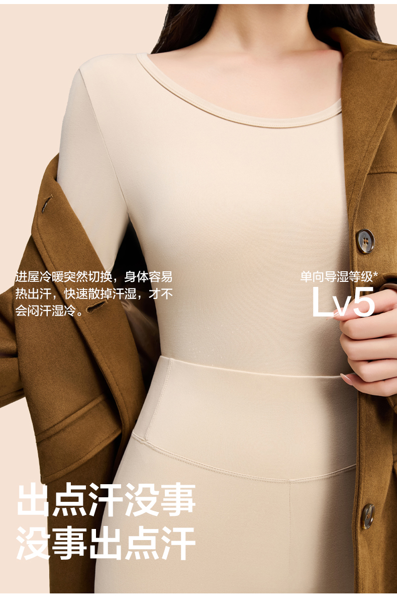 岸纾 10A抗菌技术优质羊绒蛋白热能保暖圆领套装 男女秋冬必备