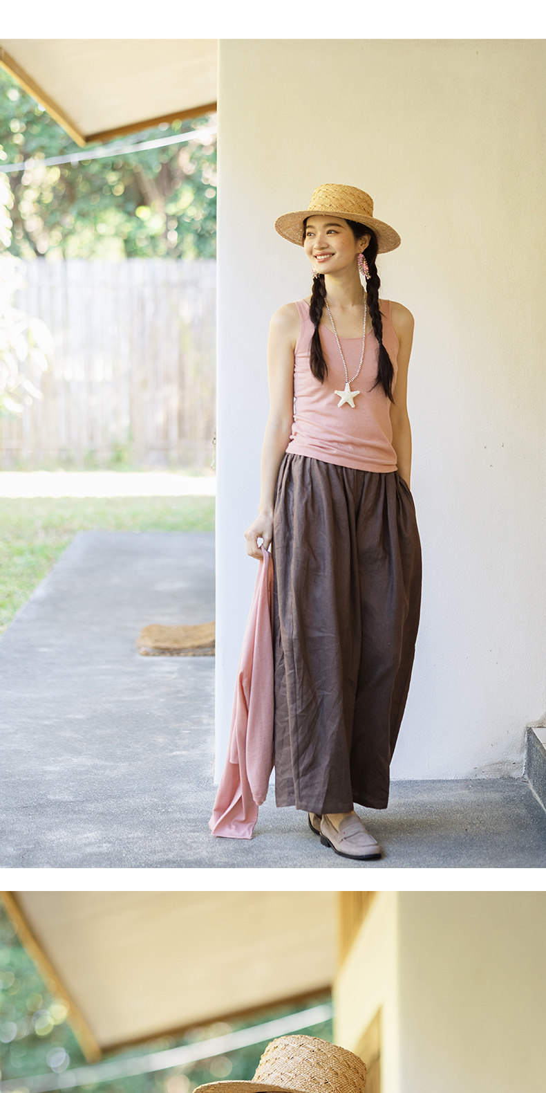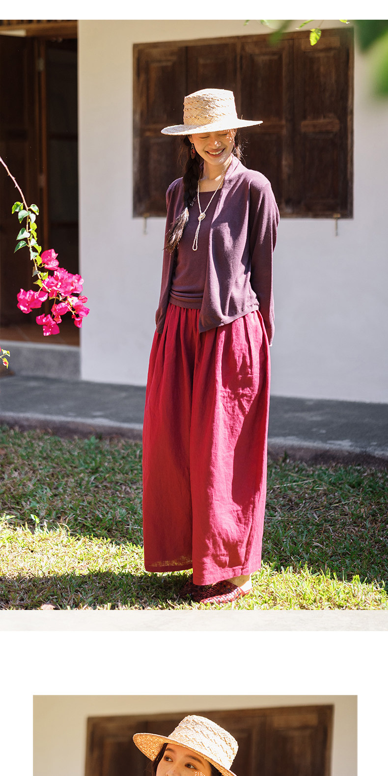 以天然亚麻为载体,融合热烈色彩与自在剪裁为身在城市、心怀远方的女性提供兼具美学与舒适的旅行着装