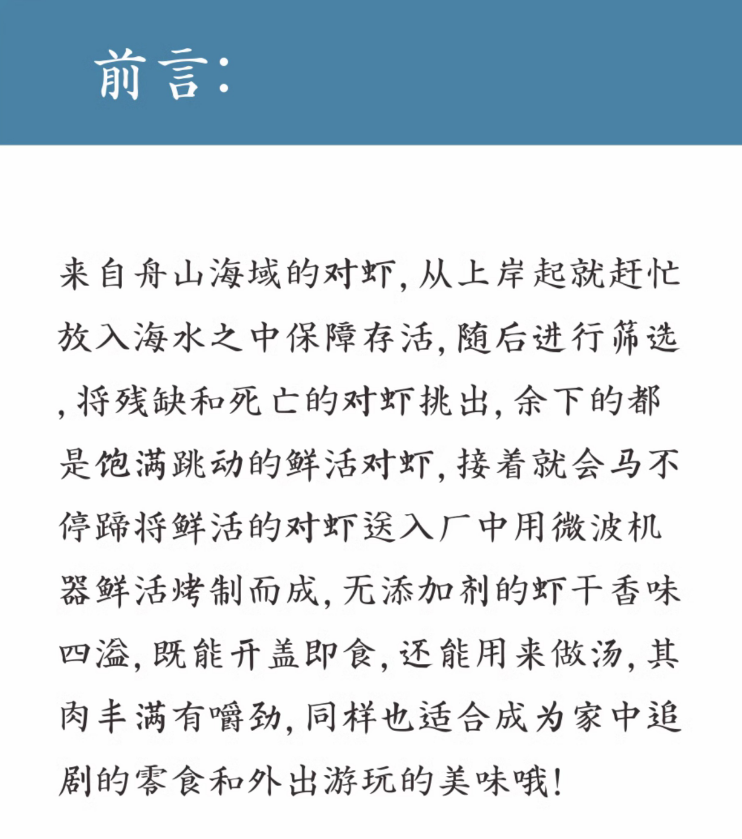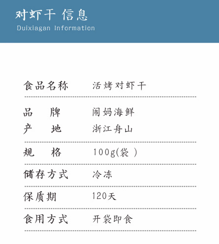 【闹妈】舟山活烤海水对虾干微微鲜转口甜4斤烤1斤 100g/包