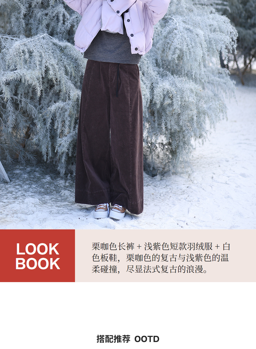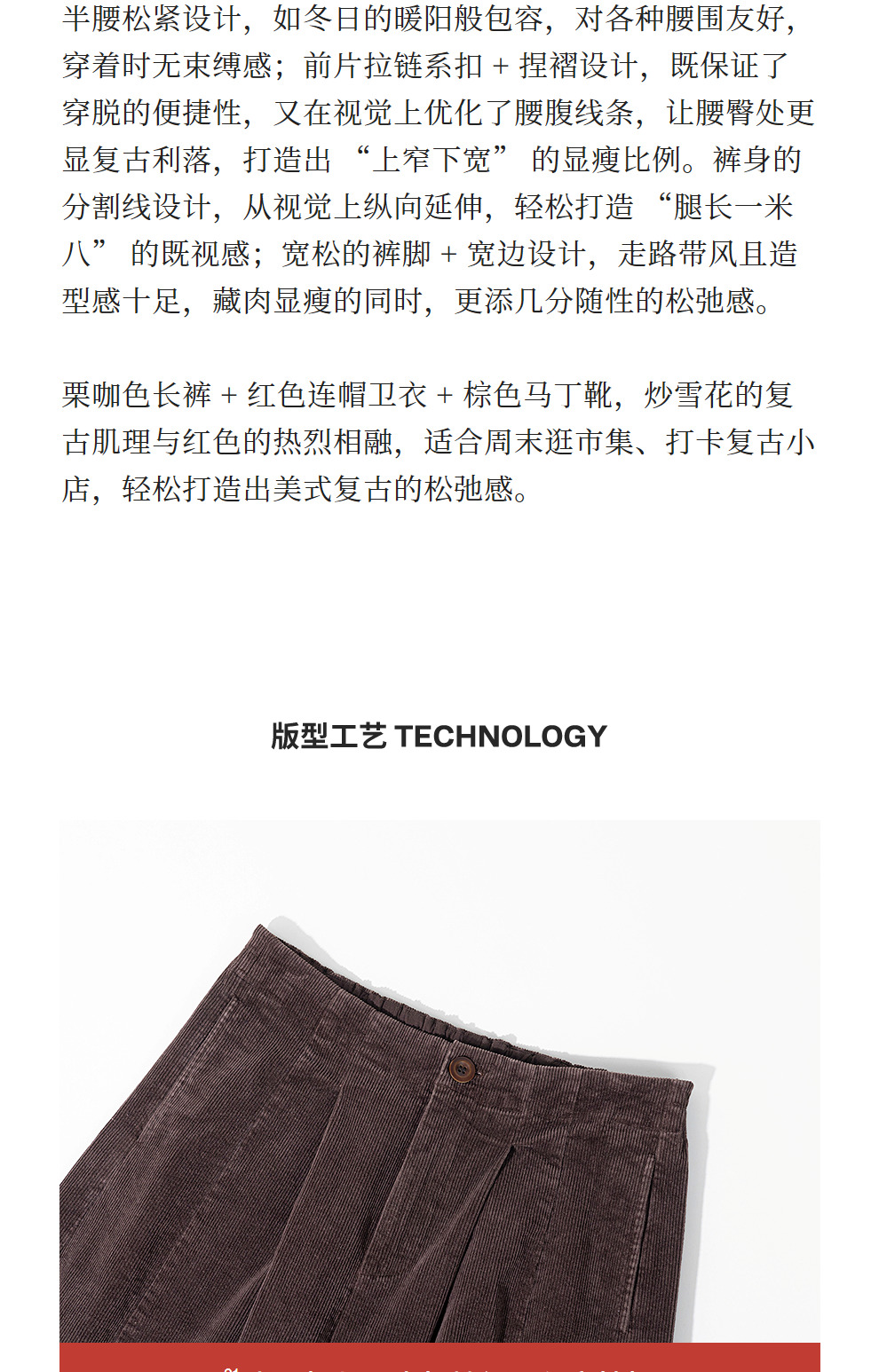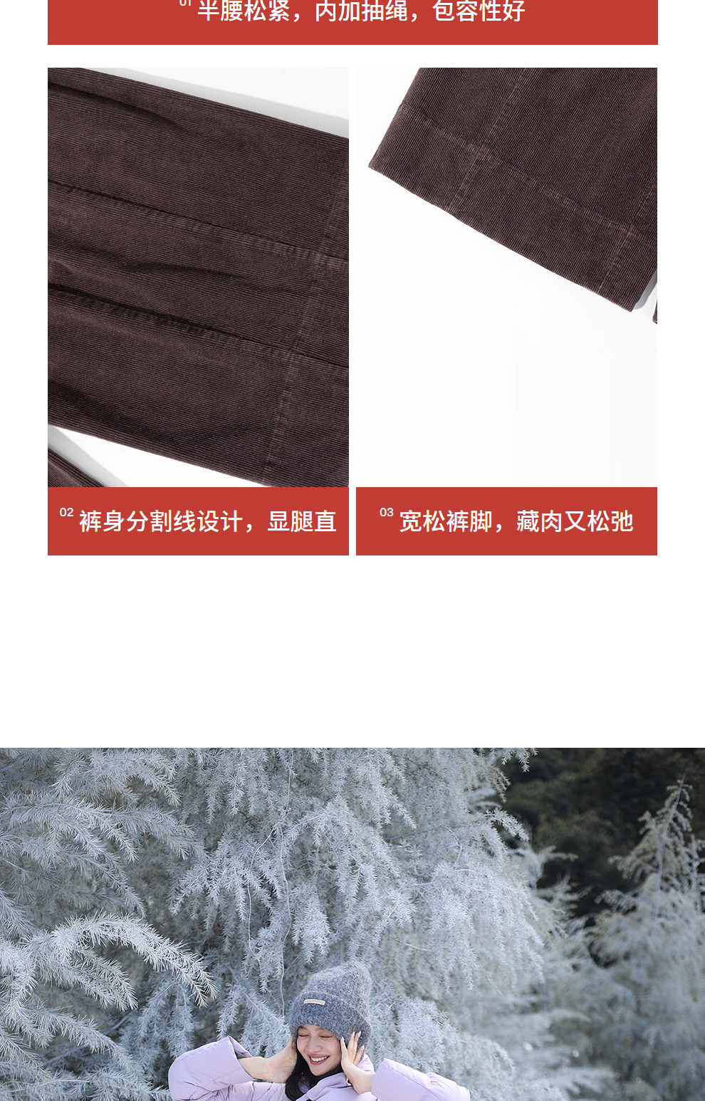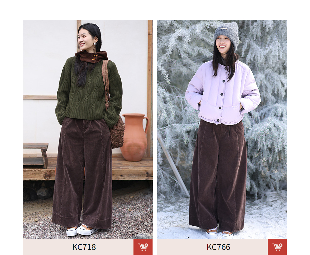 绽放657朵/栗绒·灯芯绒炒雪花工艺半腰松紧阔腿裤女休闲长裤新款
