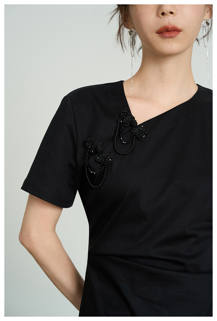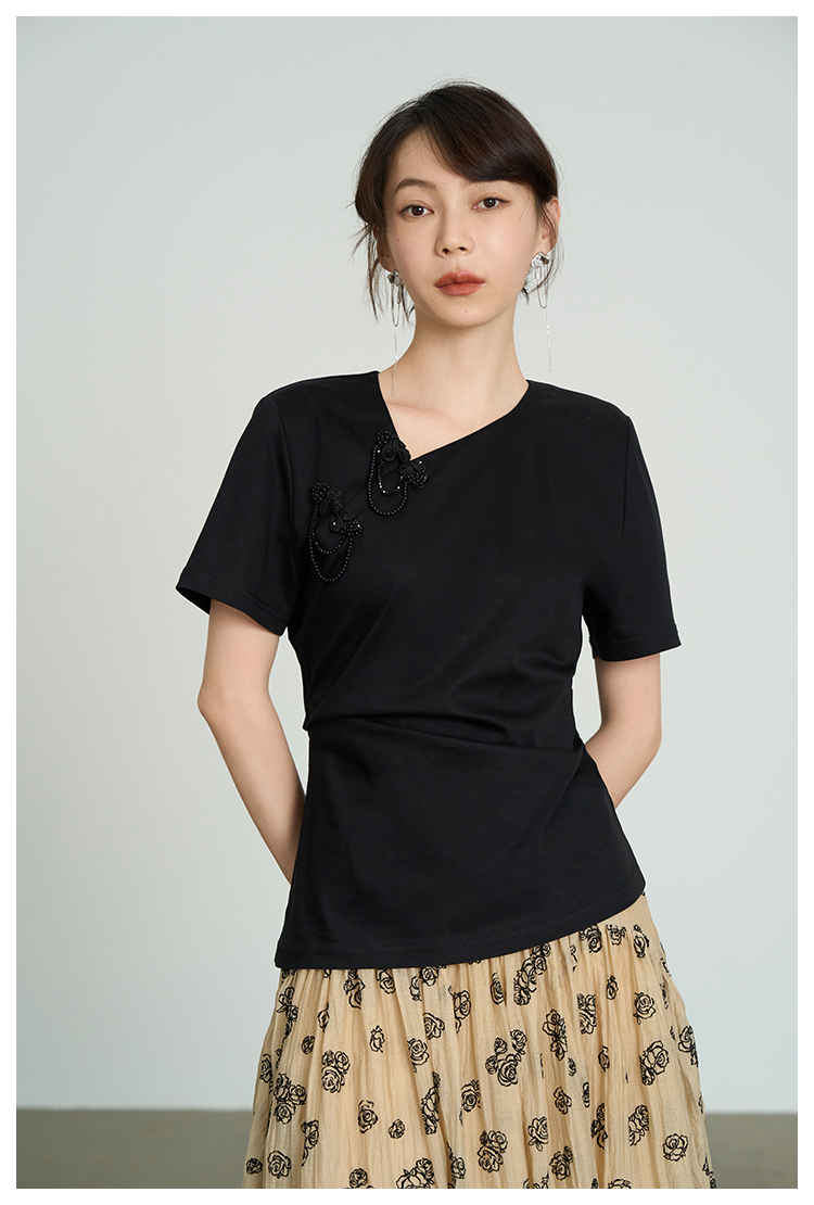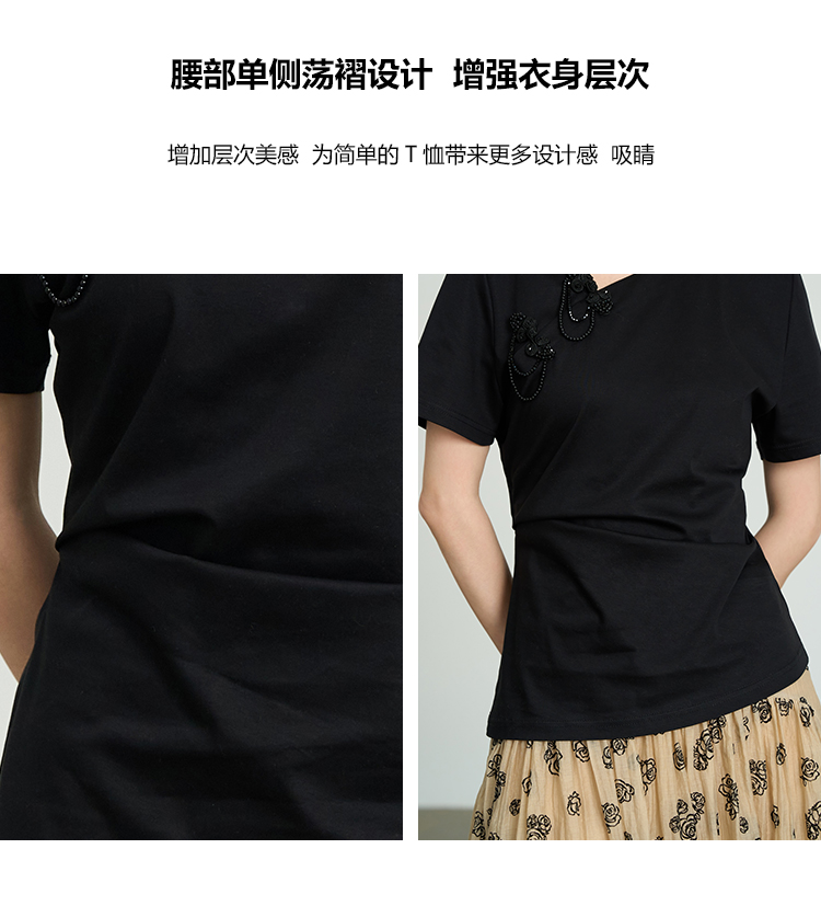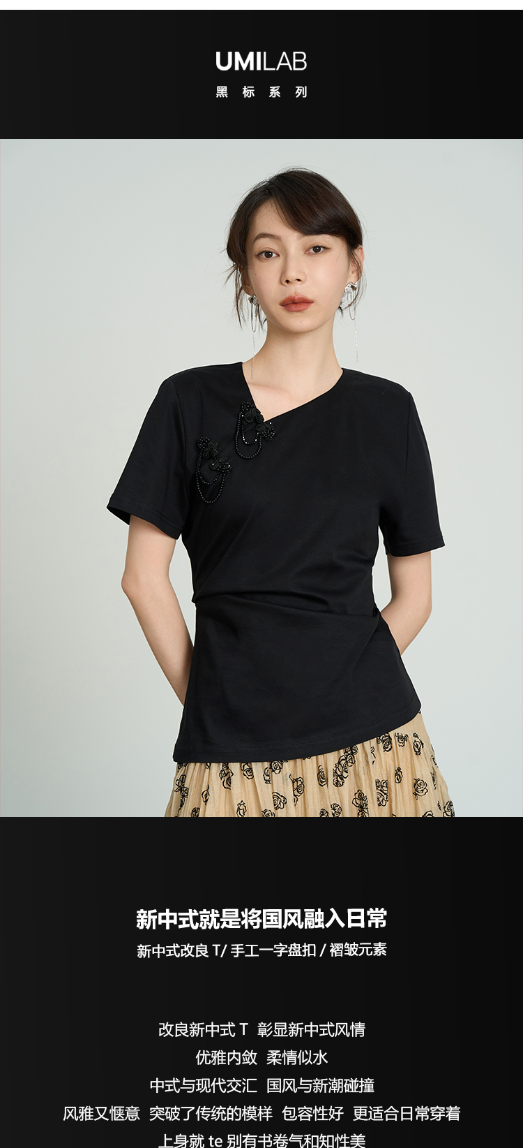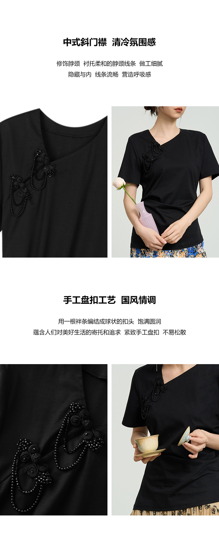 【99元/2件任选|不退换】T575H国风情调中式改良手工一字盘扣T恤上衣黑色短袖