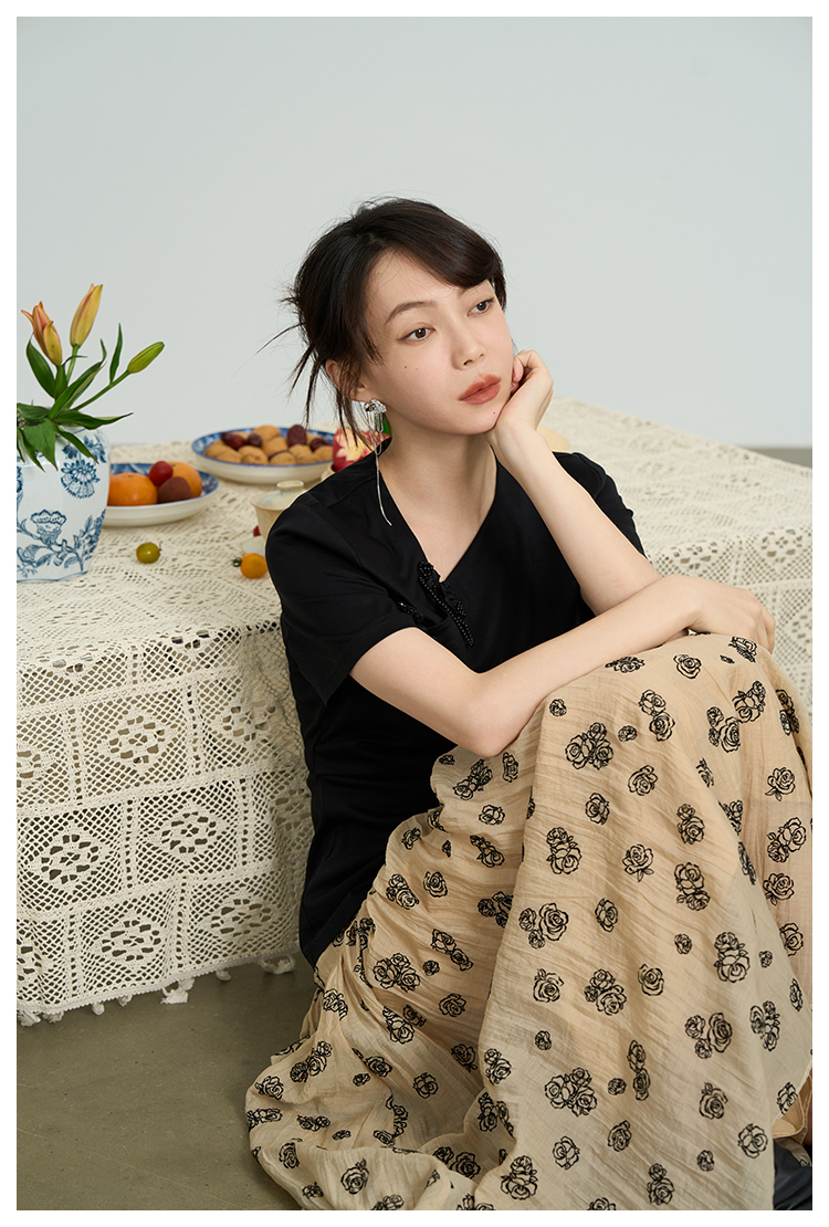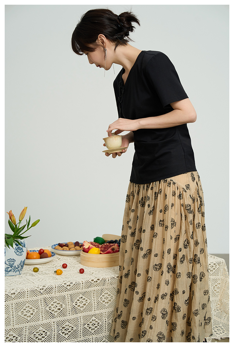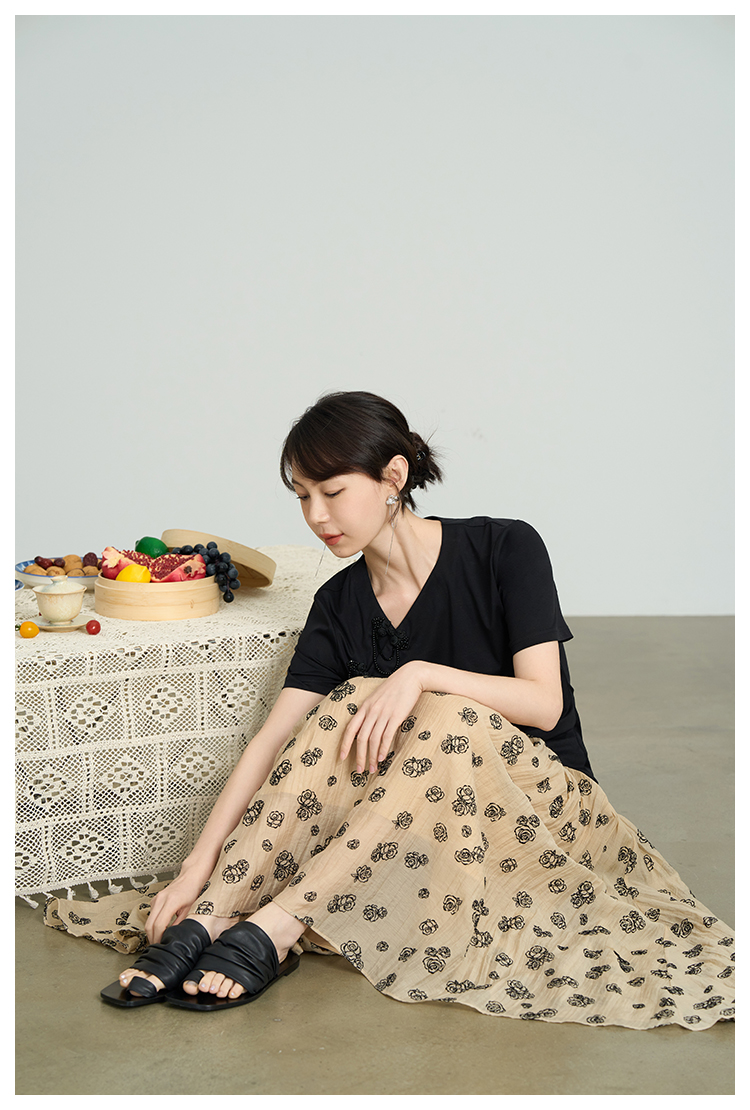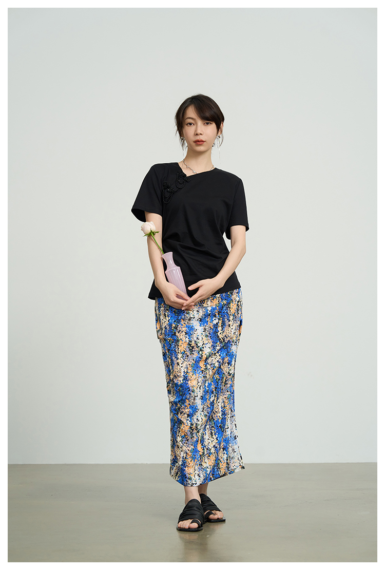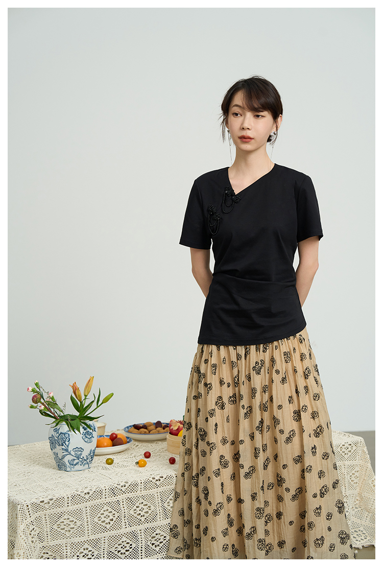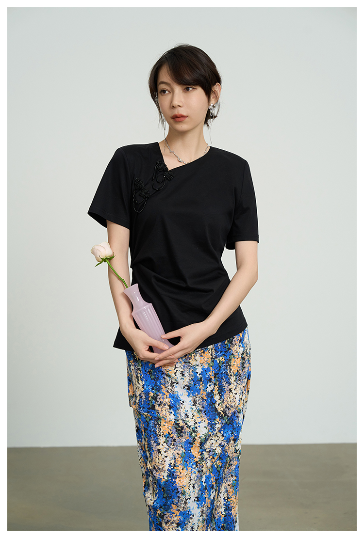 【99元/2件任选|不退换】T575H国风情调中式改良手工一字盘扣T恤上衣黑色短袖